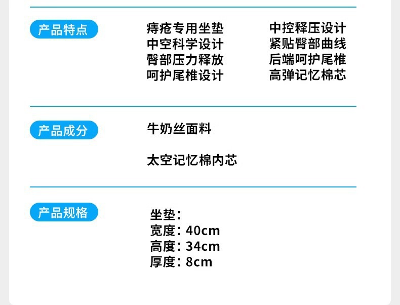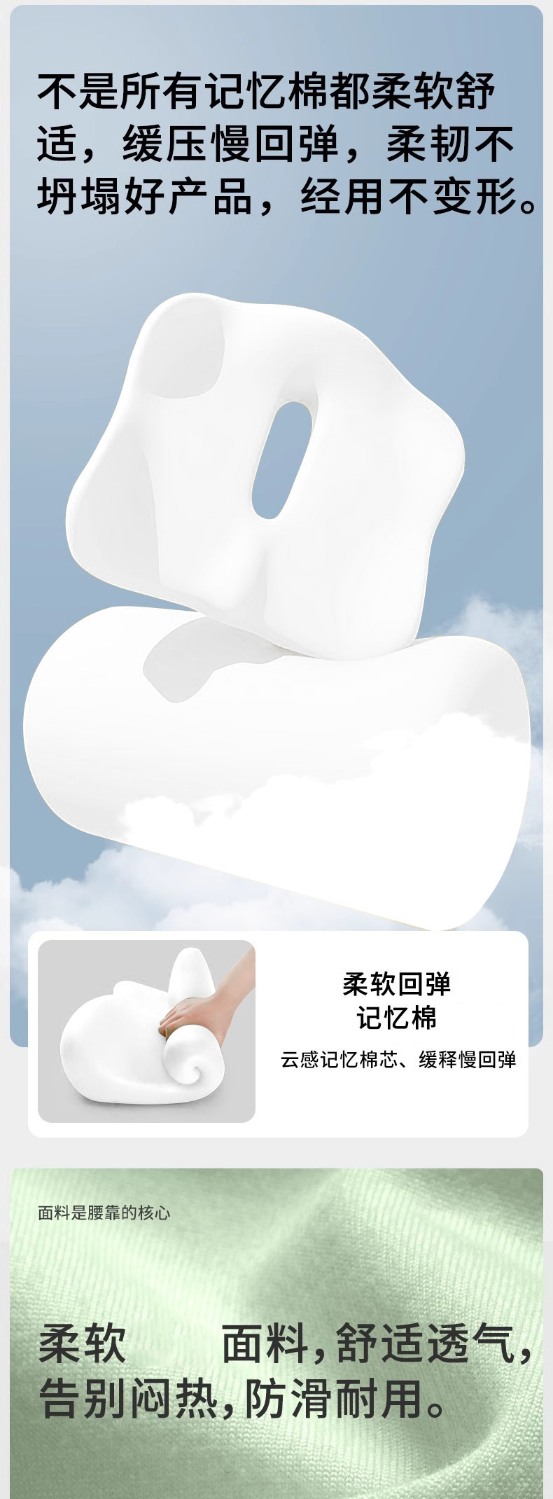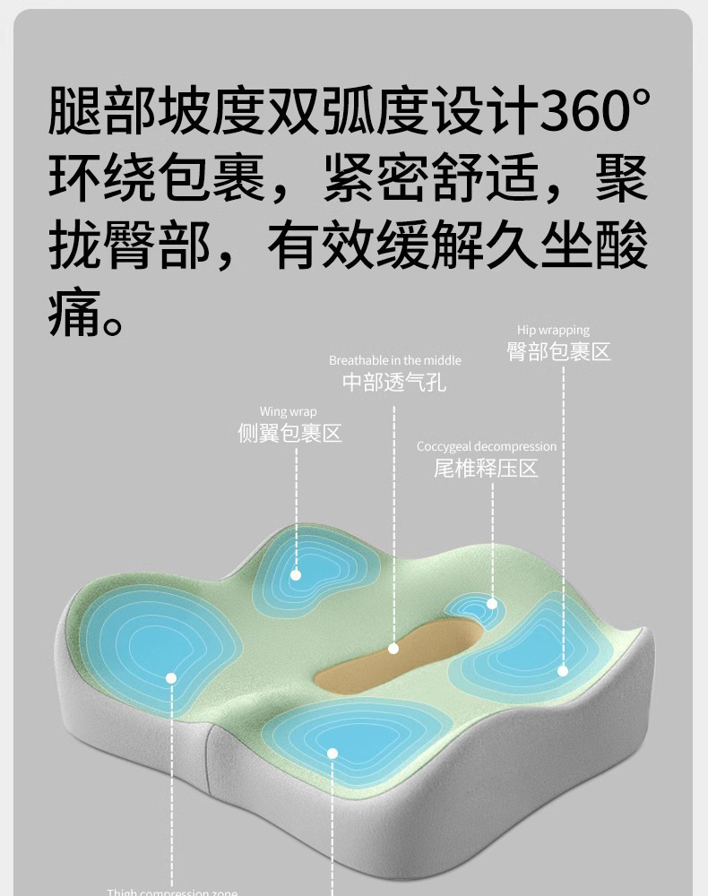 记忆棉坐垫 【久坐族必备🔥】透气记忆棉坐垫,尾椎减压+护腰护臀,久坐不累就是这么舒服!