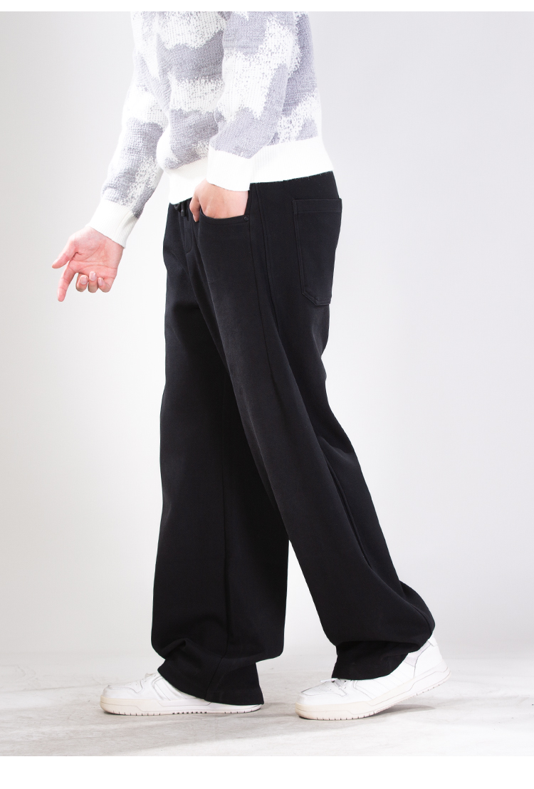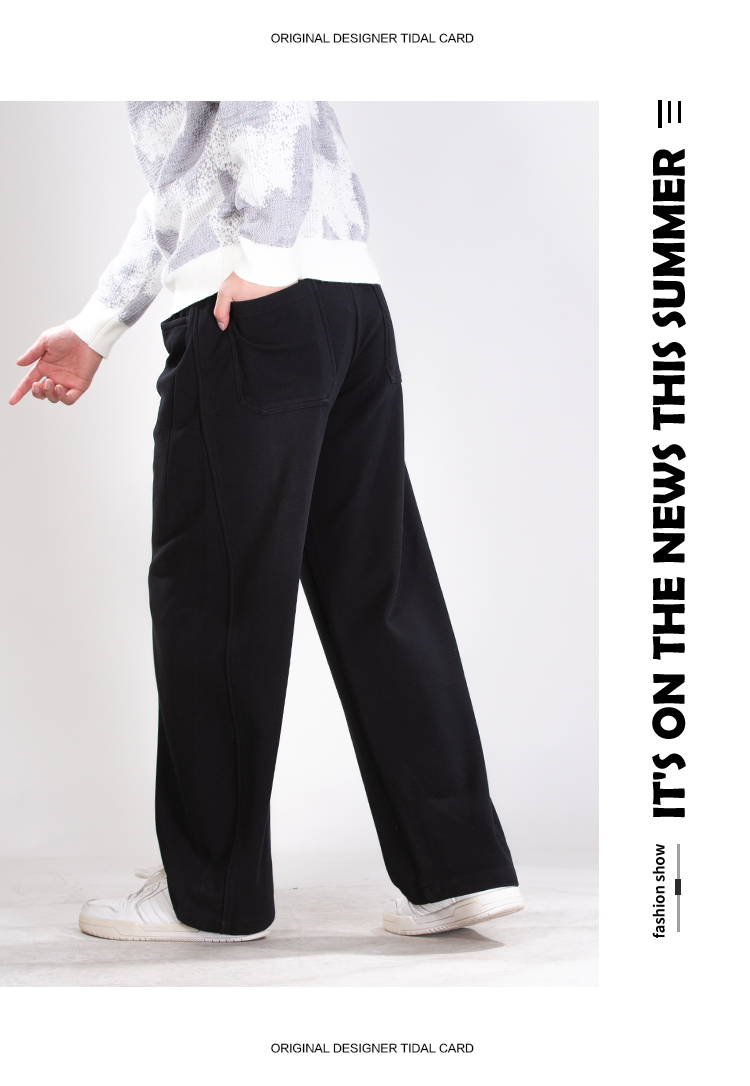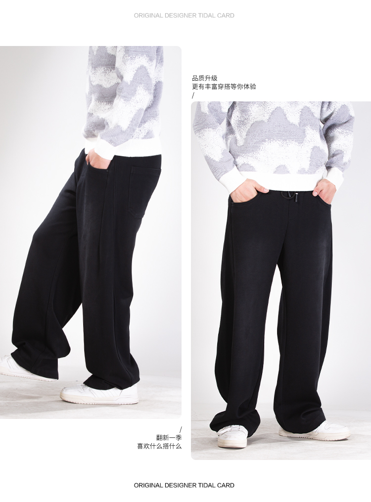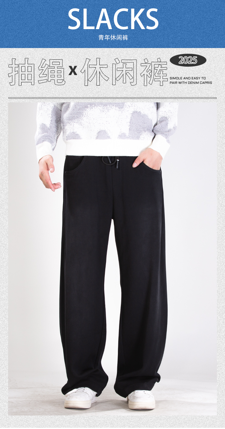 DRONKOO 2025 抽绳后斜破缝口袋同色钉扣喷色做旧复合厚长卫裤