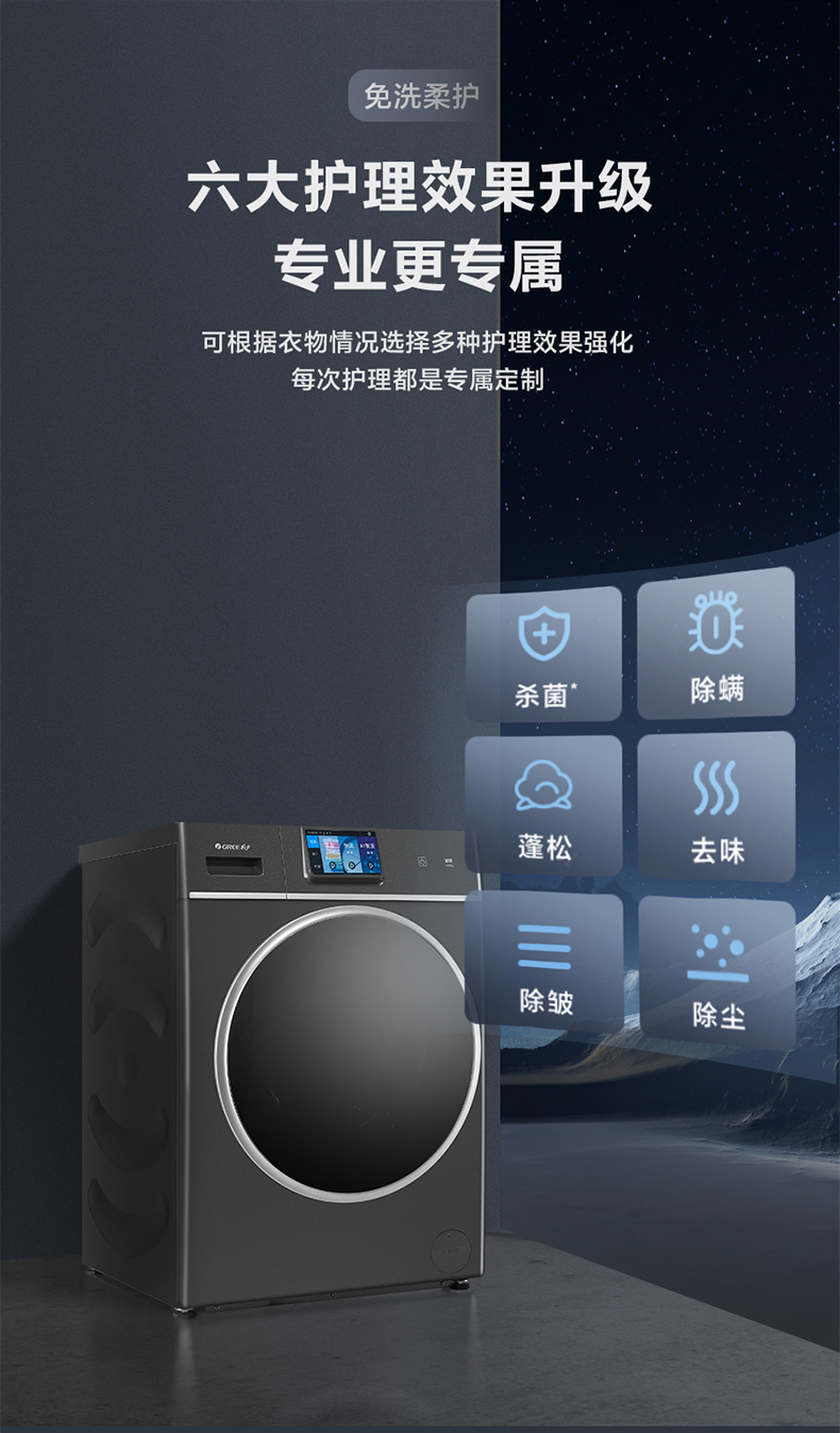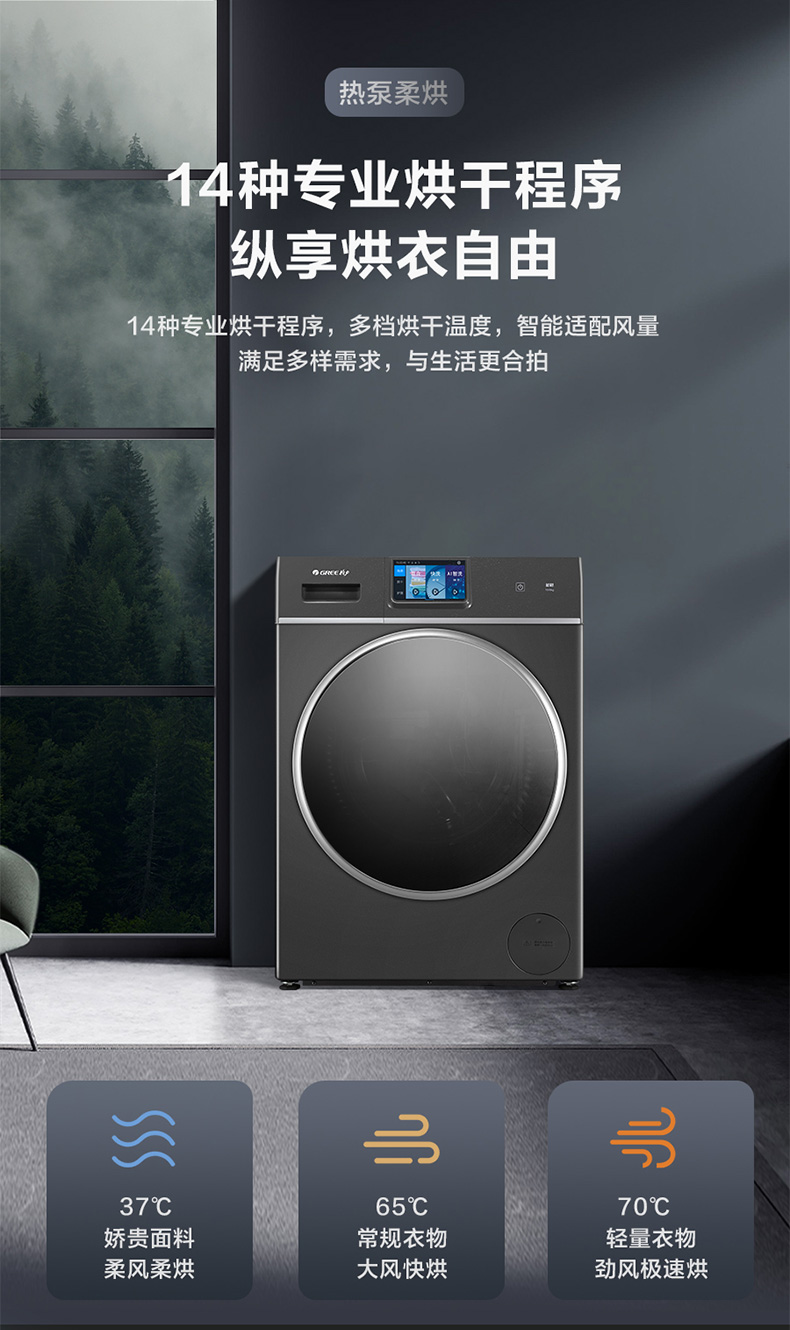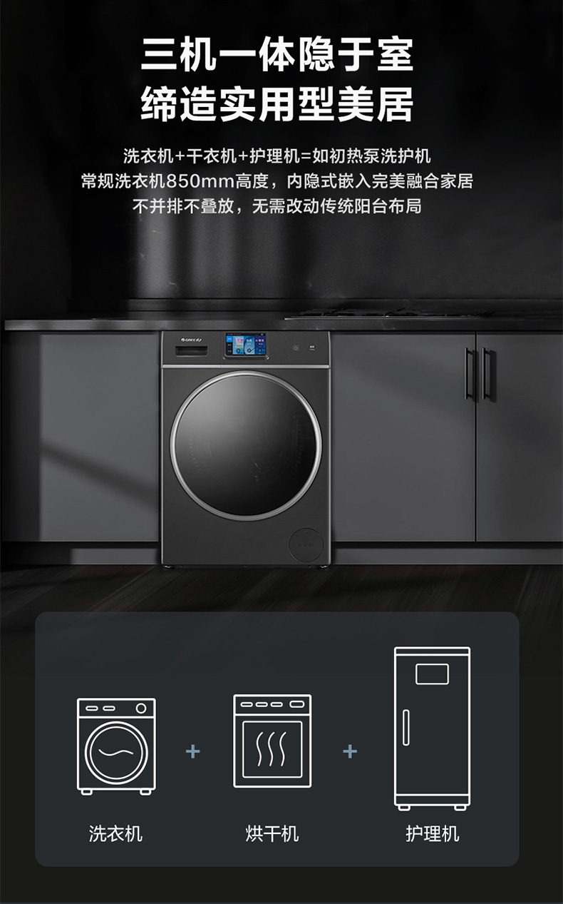 格力如初热泵洗护机 10kg 核心三擎变频 37℃体感柔烘 XQG100-RBKD1401Aa1 (珍珠黑)