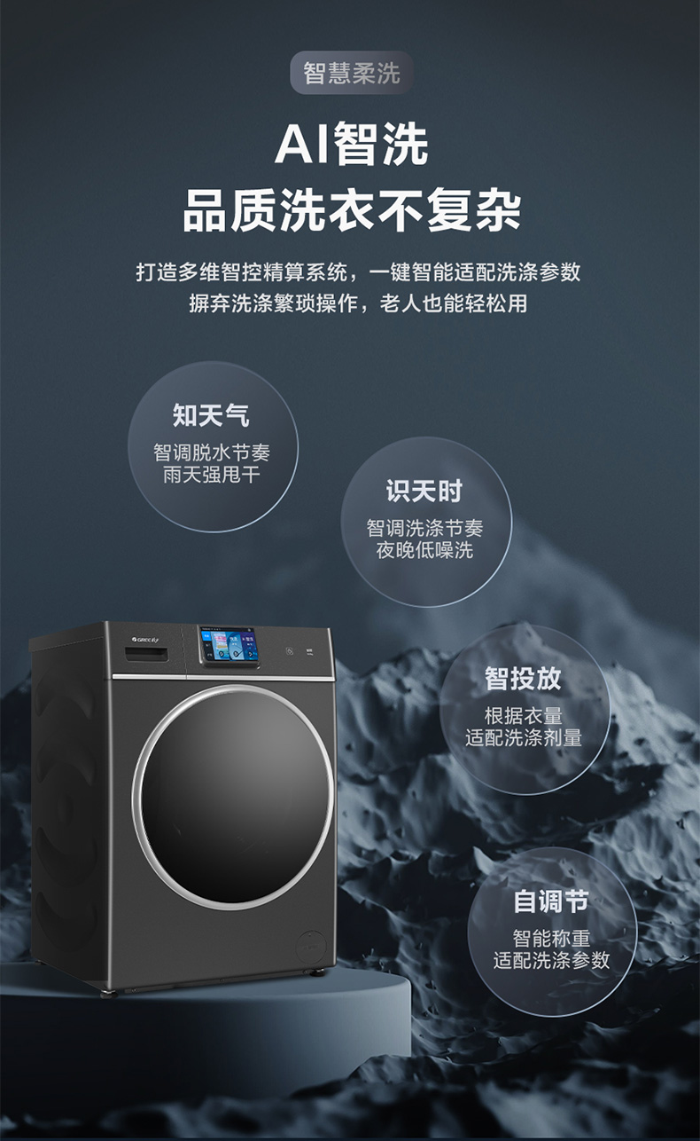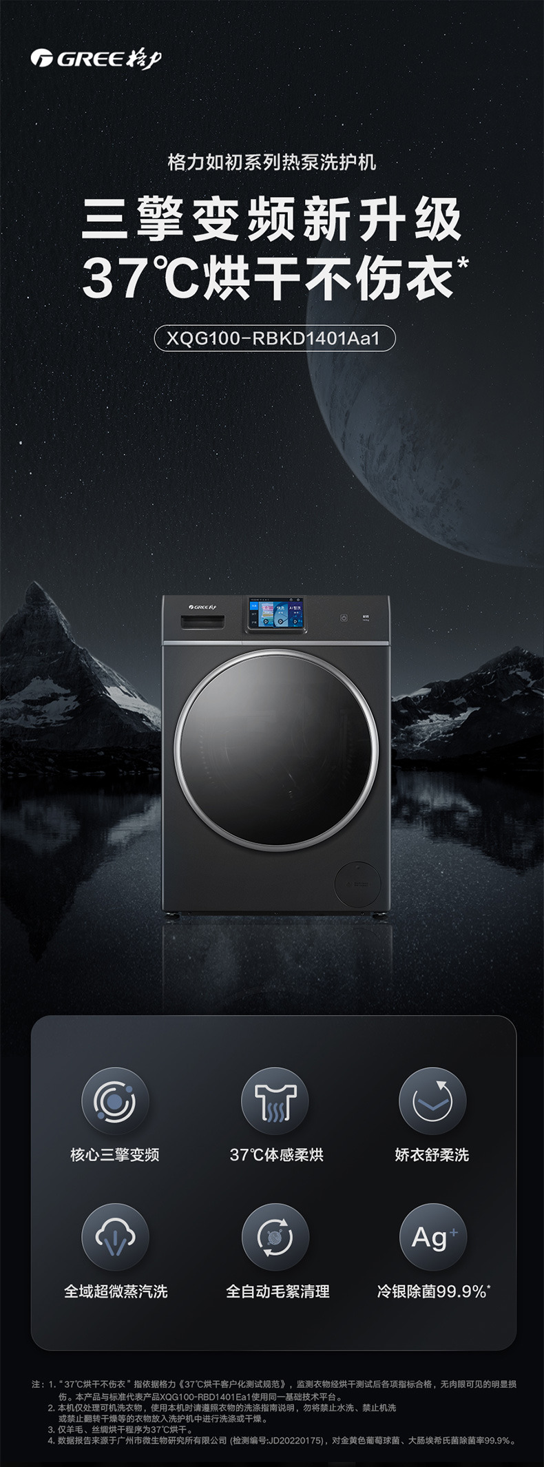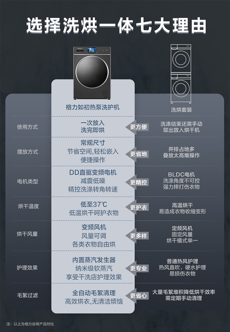 格力如初热泵洗护机 10kg 核心三擎变频 37℃体感柔烘 XQG100-RBKD1401Aa1 (珍珠黑)