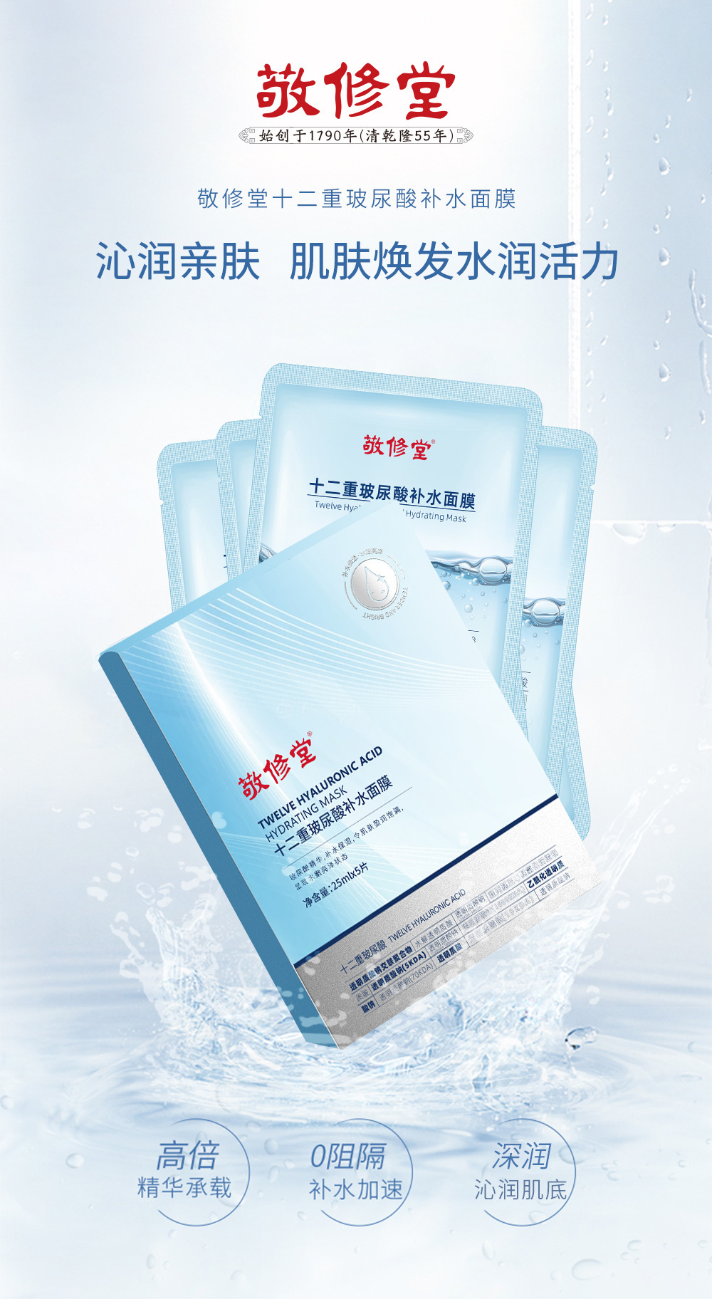 【新品上线】敬修堂十二重氨基酸补水面膜 25ml*5片/盒