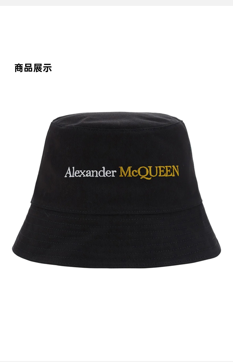 ALEXANDER MCQUEEN 亚历山大.麦昆 男士字母徽标刺绣棉质渔夫帽 黑色 782063 4105Q 1080
