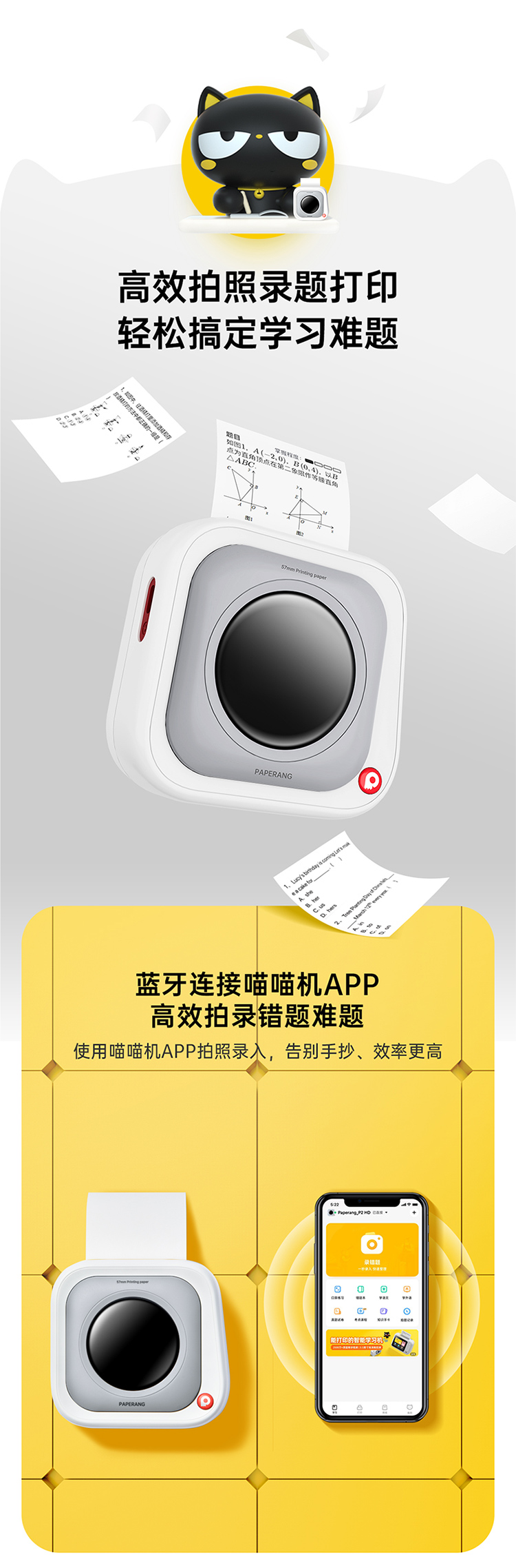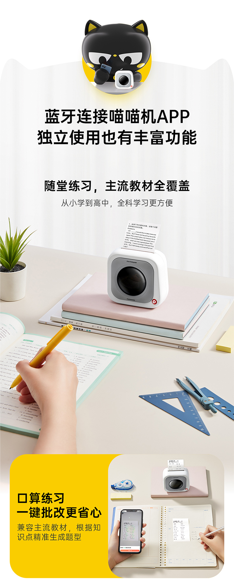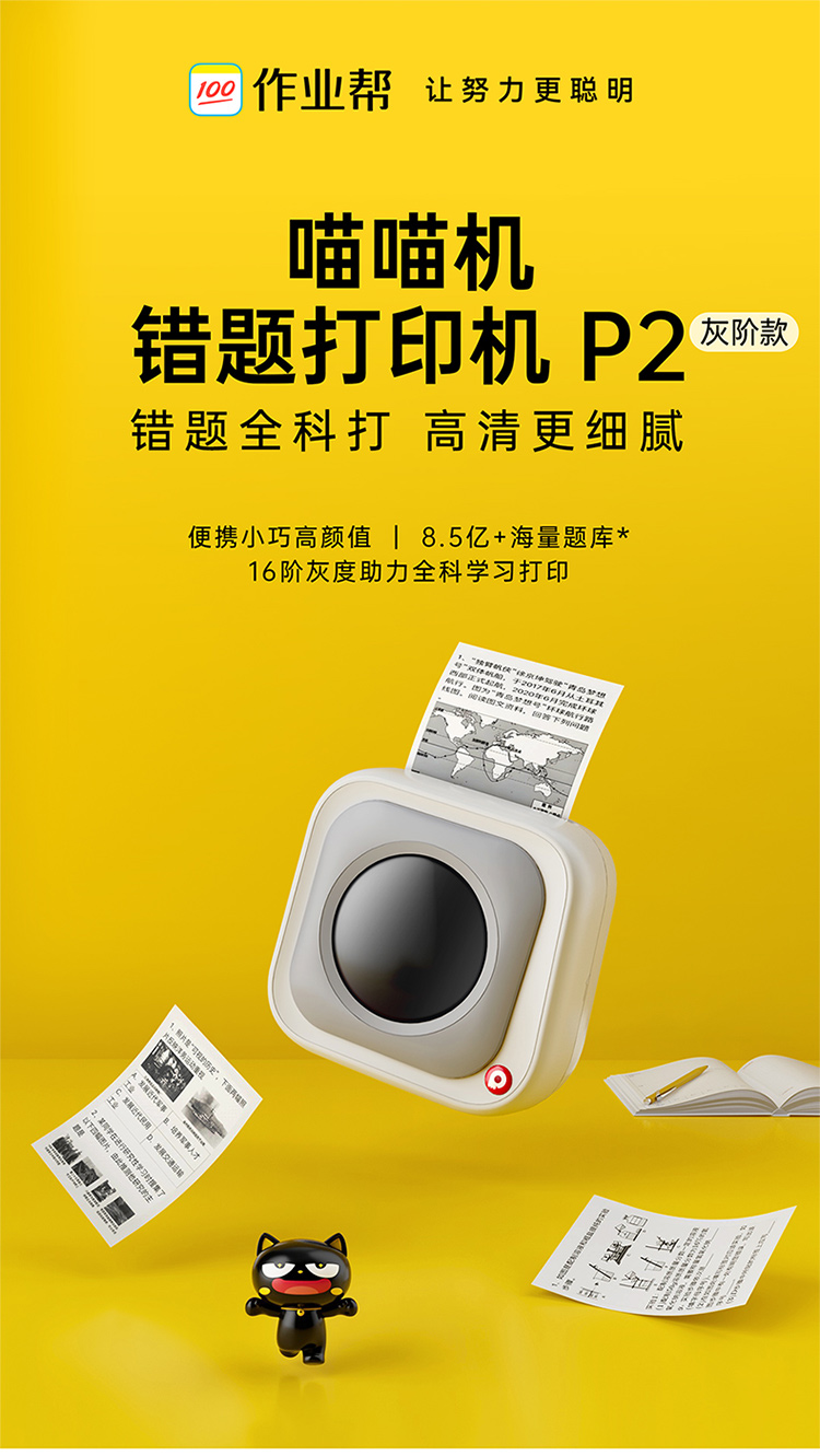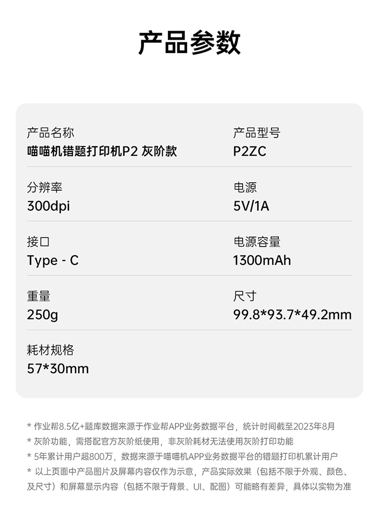 喵喵机P2灰阶款 8.5亿+真题题库 300dpi高清灰阶 2英寸错题整理
