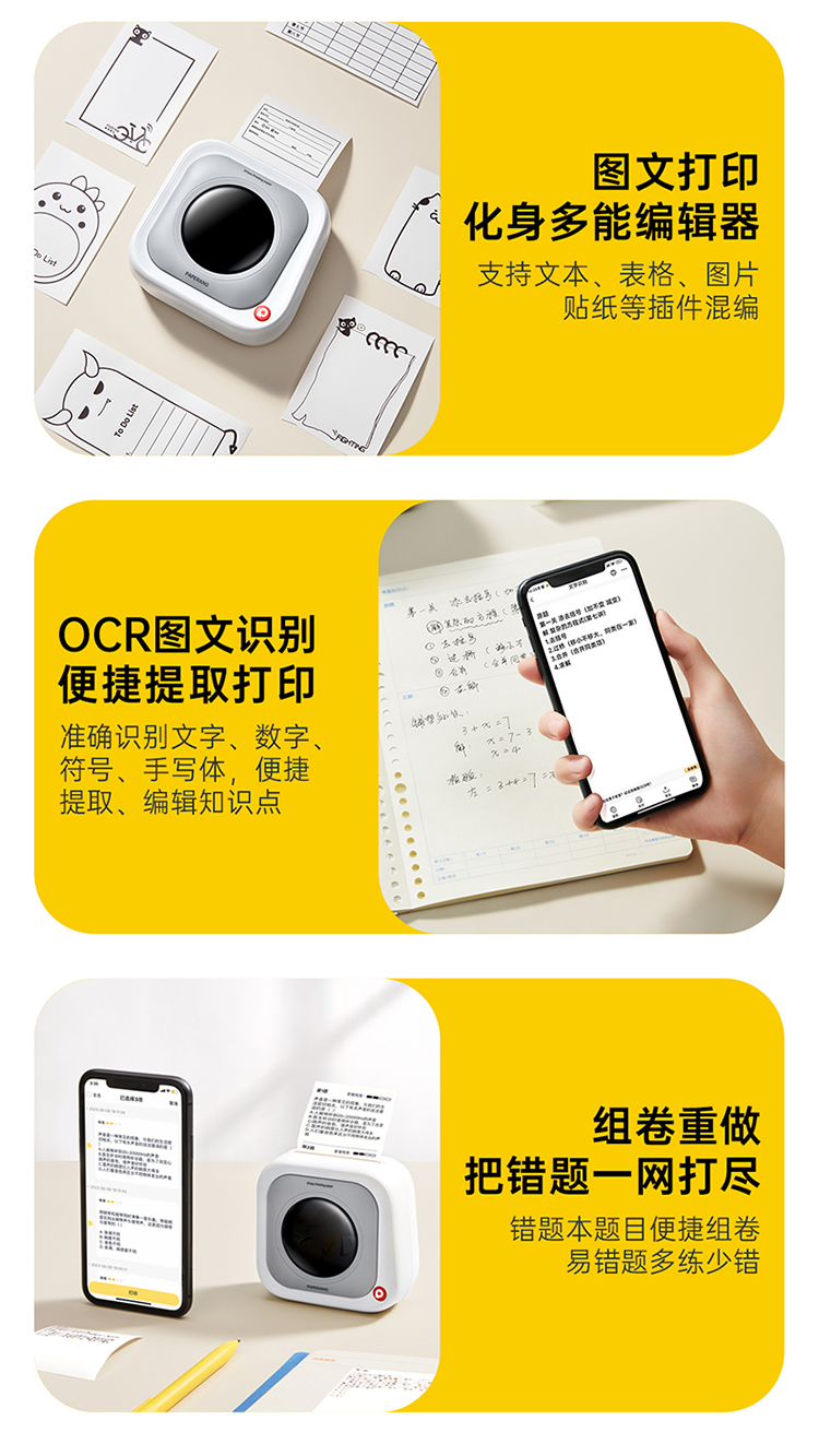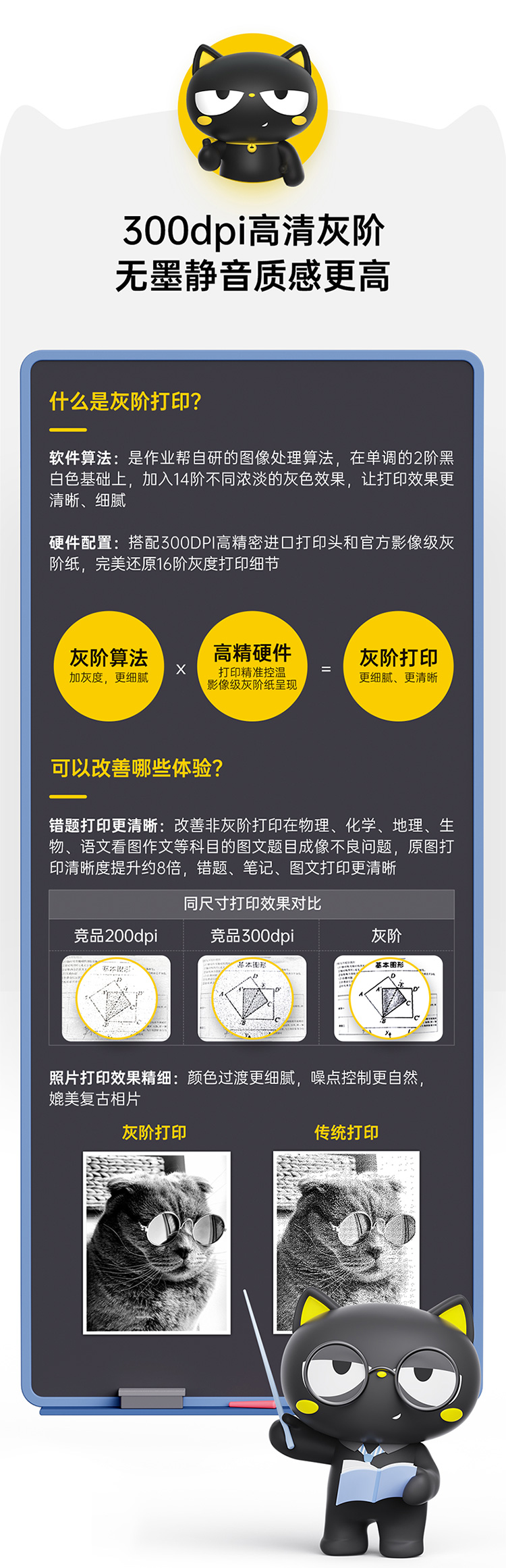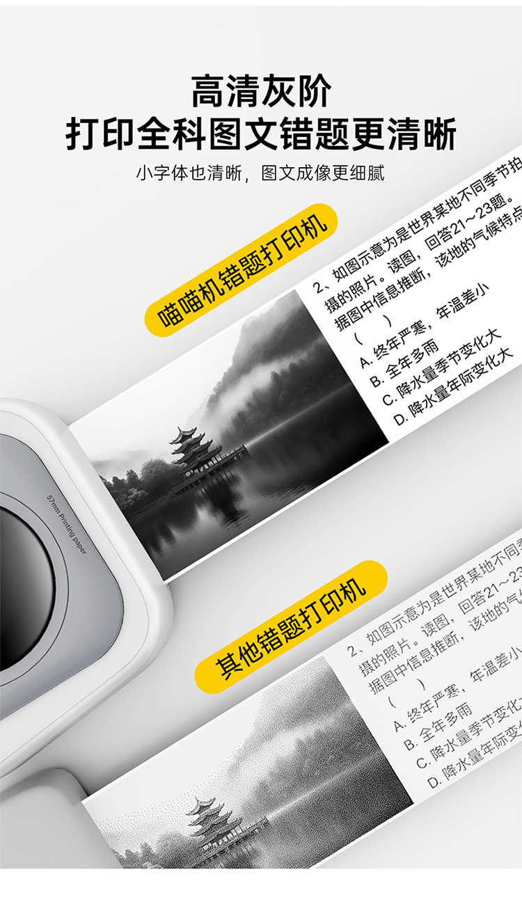 喵喵机P2灰阶款 8.5亿+真题题库 300dpi高清灰阶 2英寸错题整理