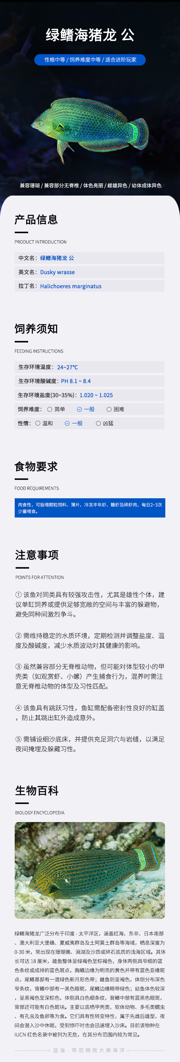 绿鳍海猪龙 公 (除蚓螺)