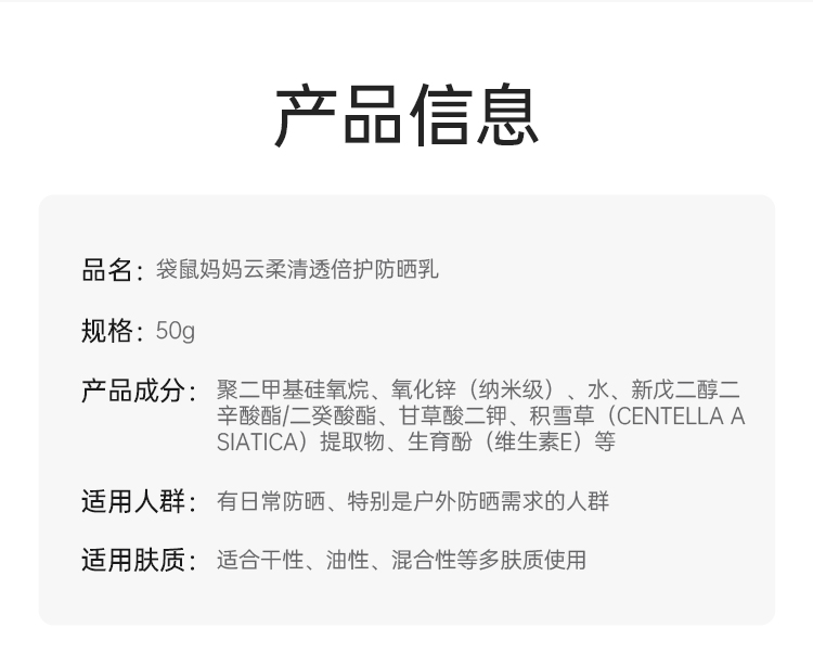 【防晒乳SPF50+】第二件半价 安心防护 纯物理面部隔离 户外防晒 长效防晒 云柔清透倍护防晒乳-50g