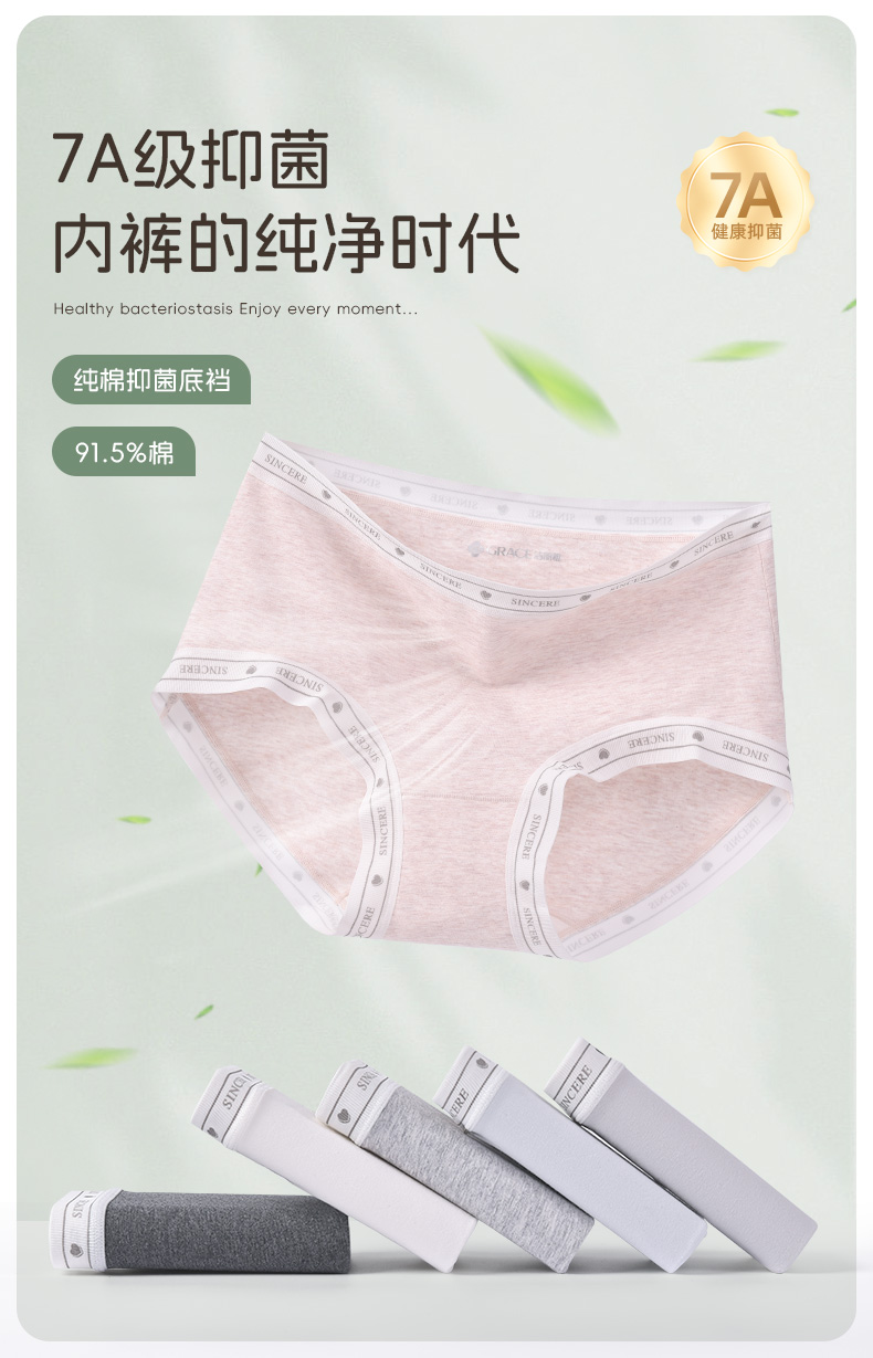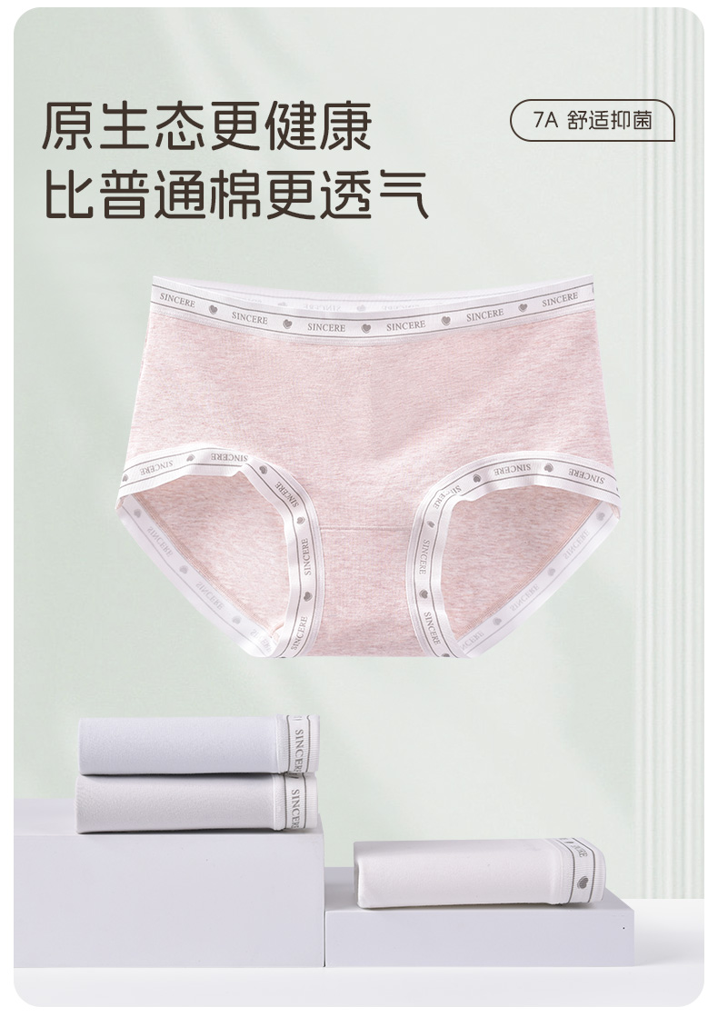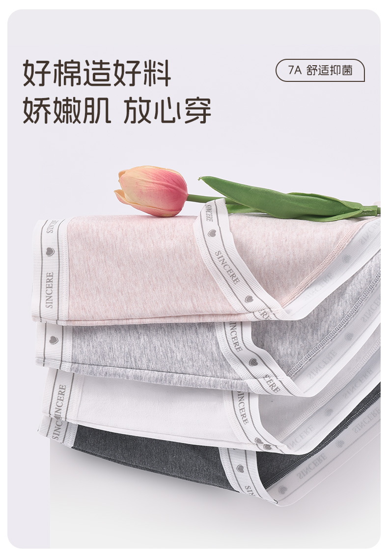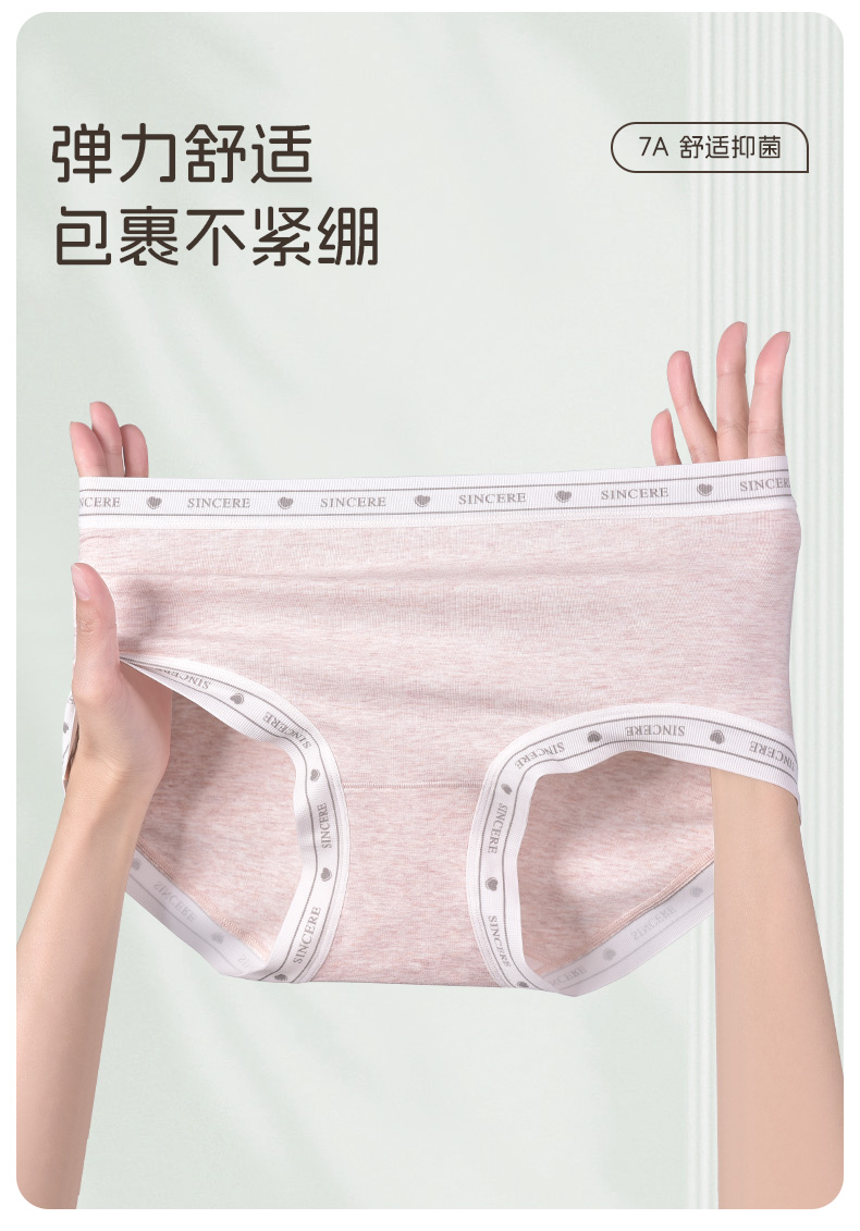 【7A抗菌】洁丽雅4条装中腰纯棉女士内裤双层纯棉裆舒适透气三角裤
