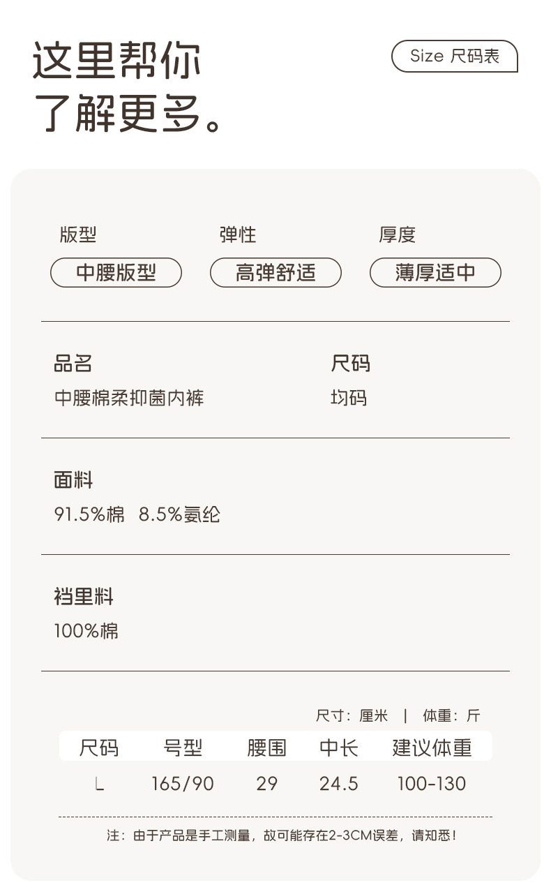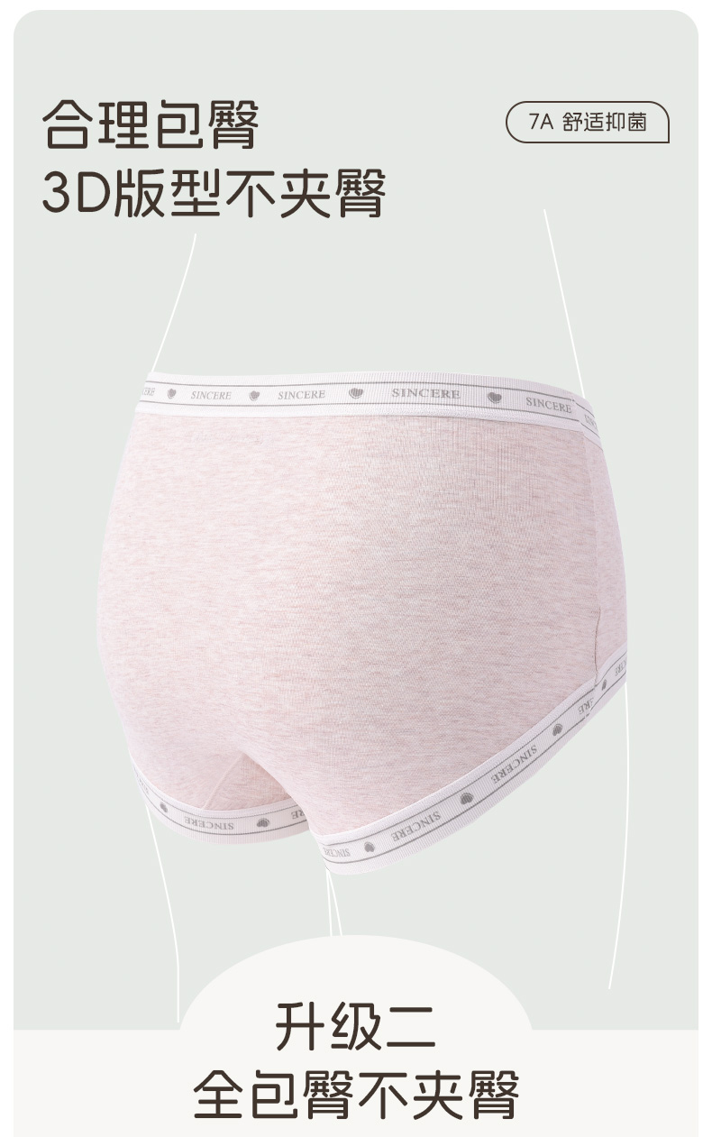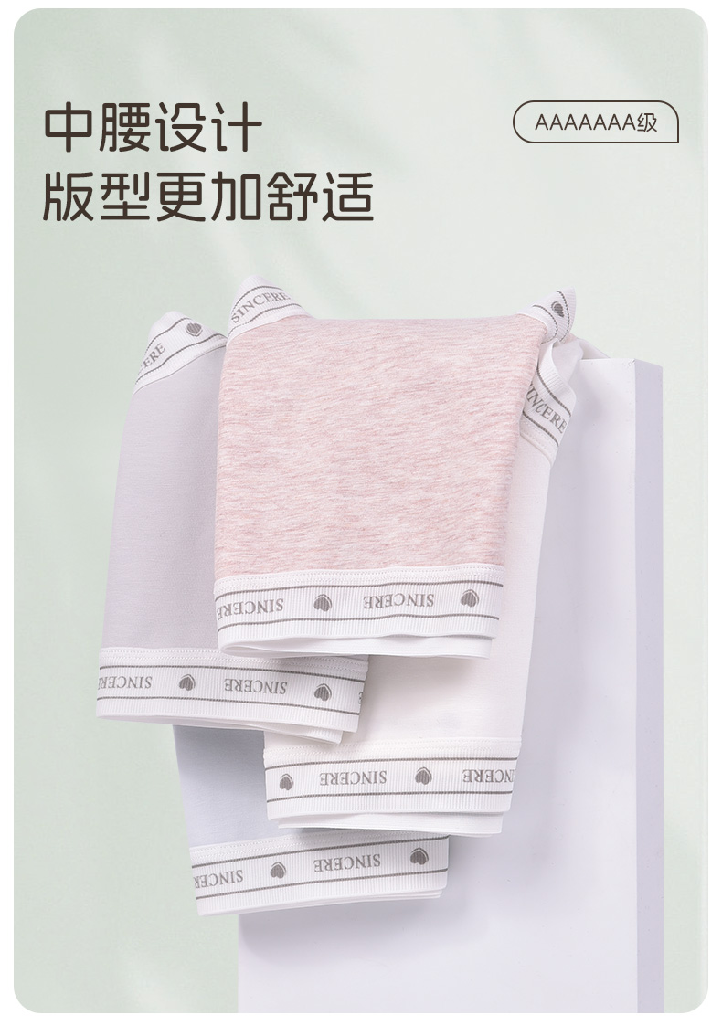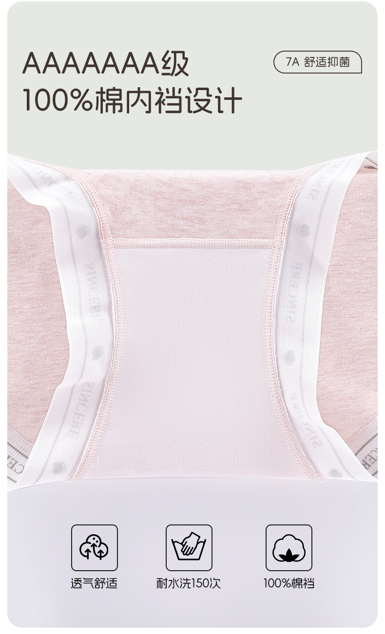 【7A抗菌】洁丽雅4条装中腰纯棉女士内裤双层纯棉裆舒适透气三角裤