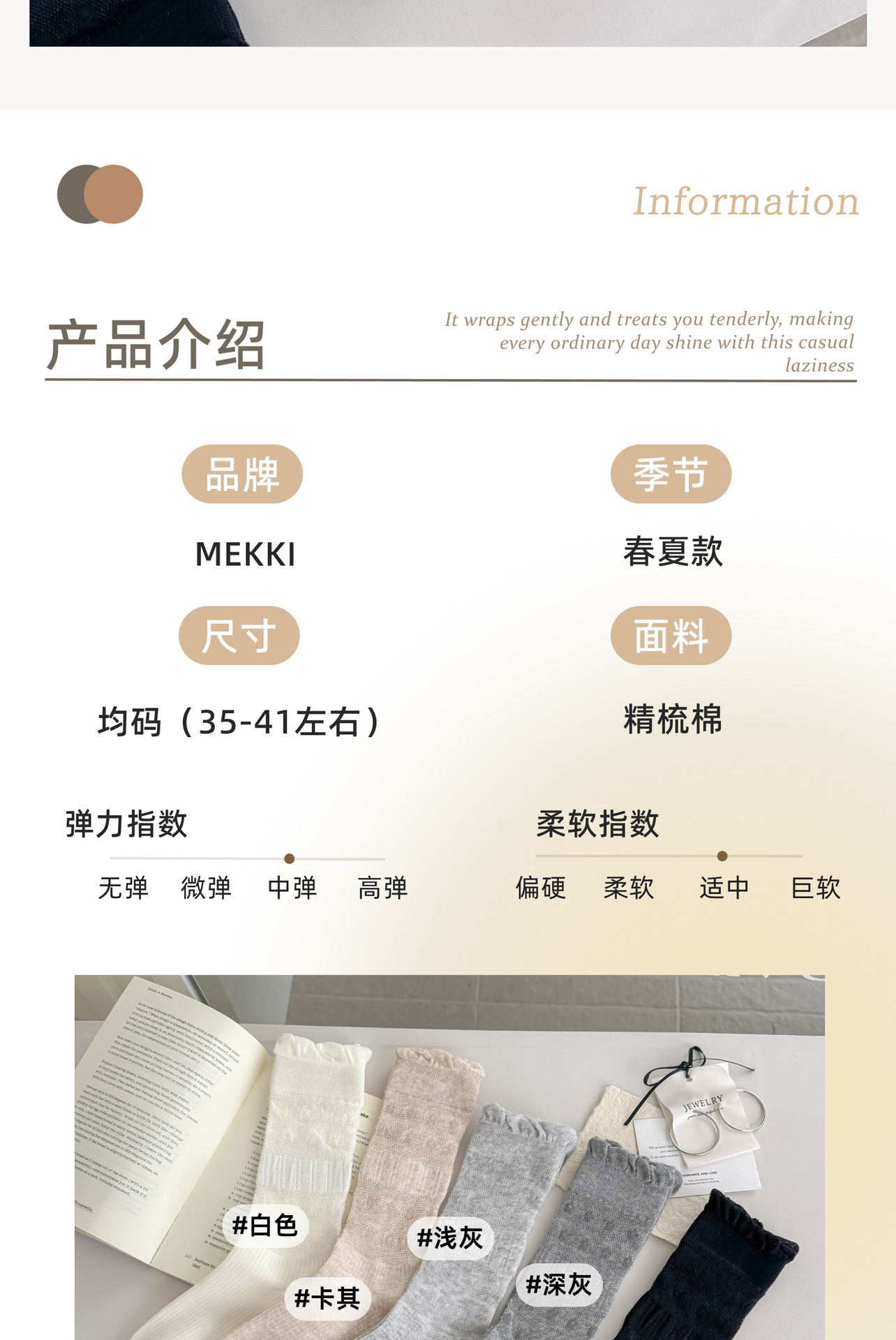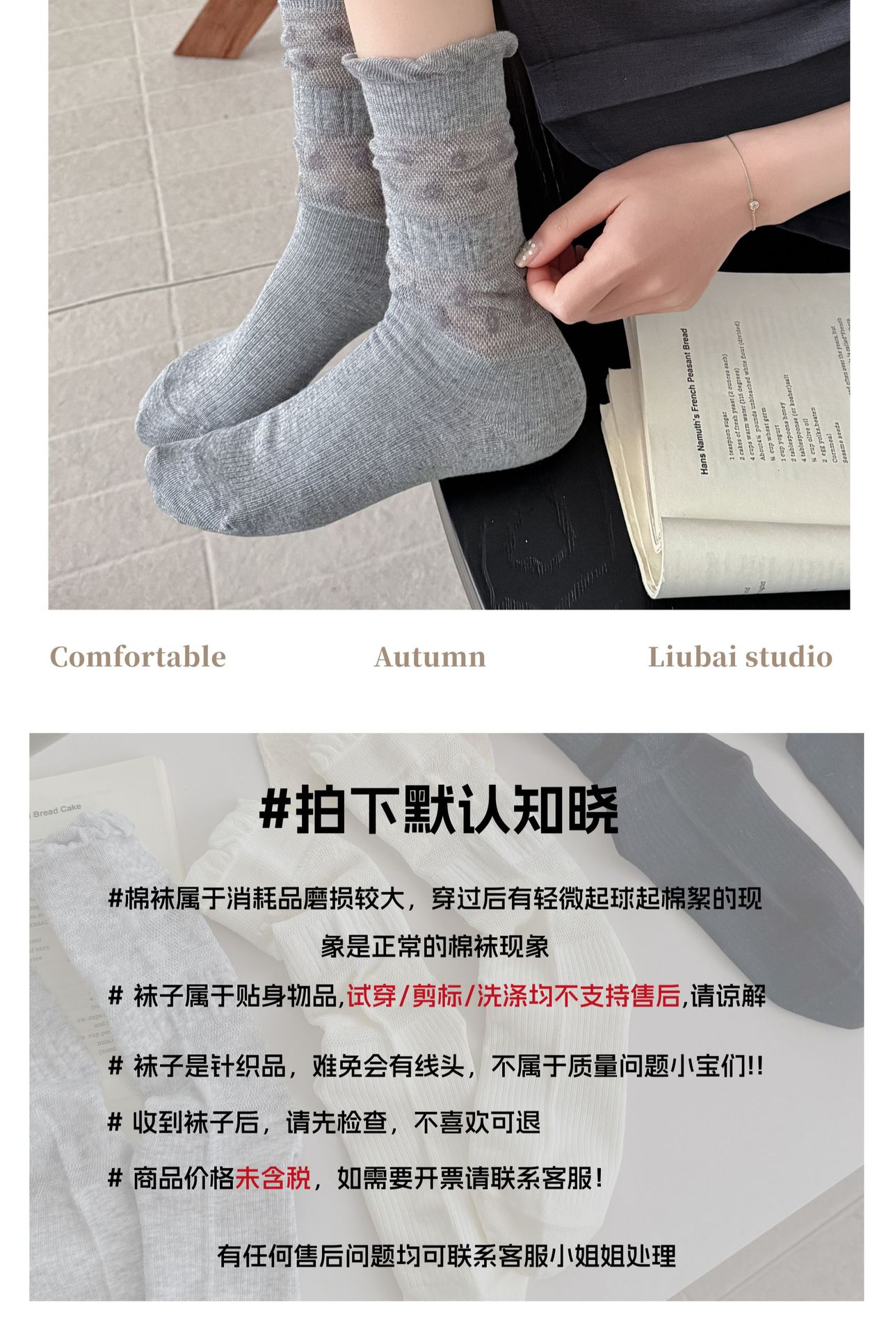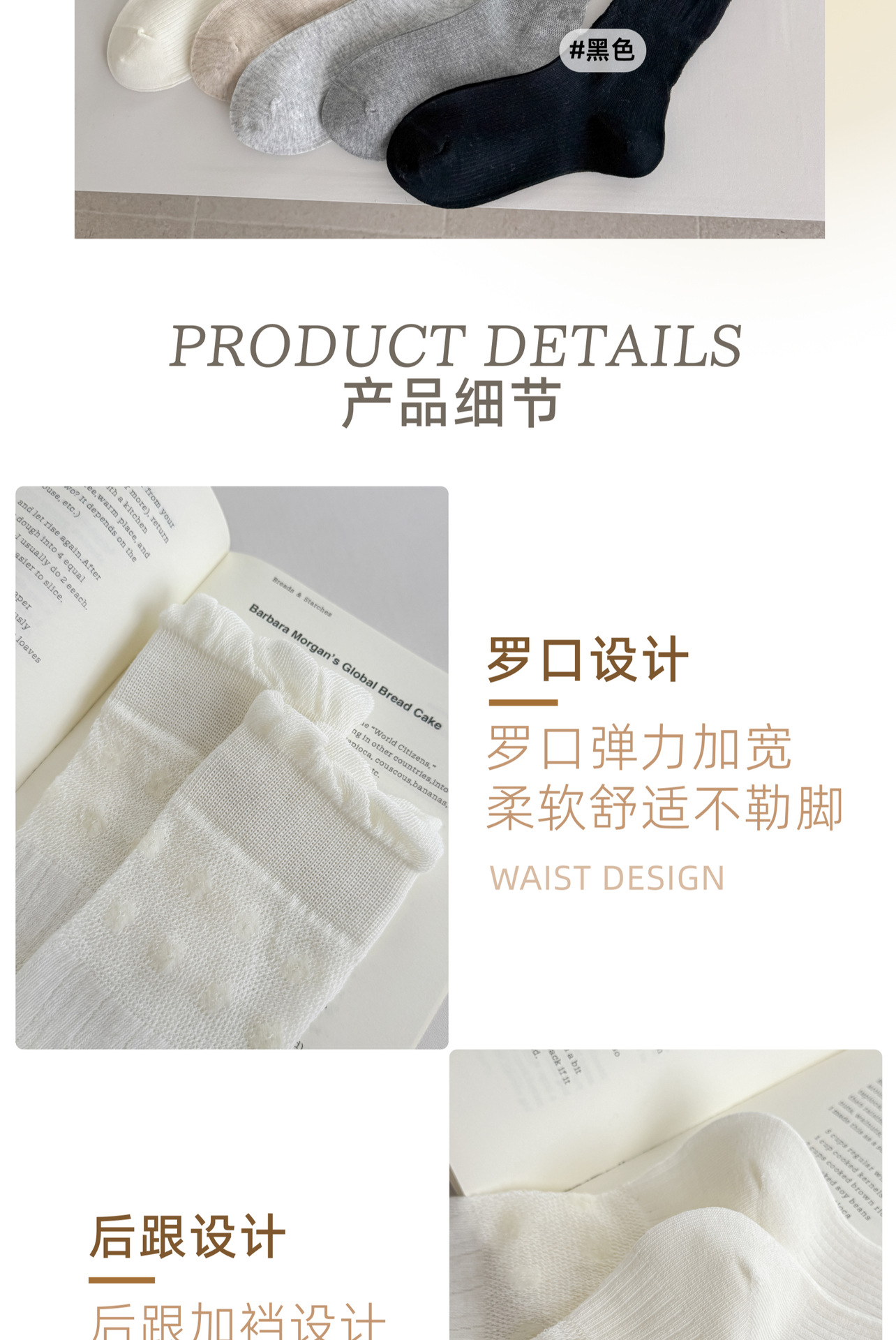 【39元5双,下单拍5】2026春夏款女袜泡泡口网眼堆堆袜休闲透气中筒袜新款纯色袜子女ZXFX2026