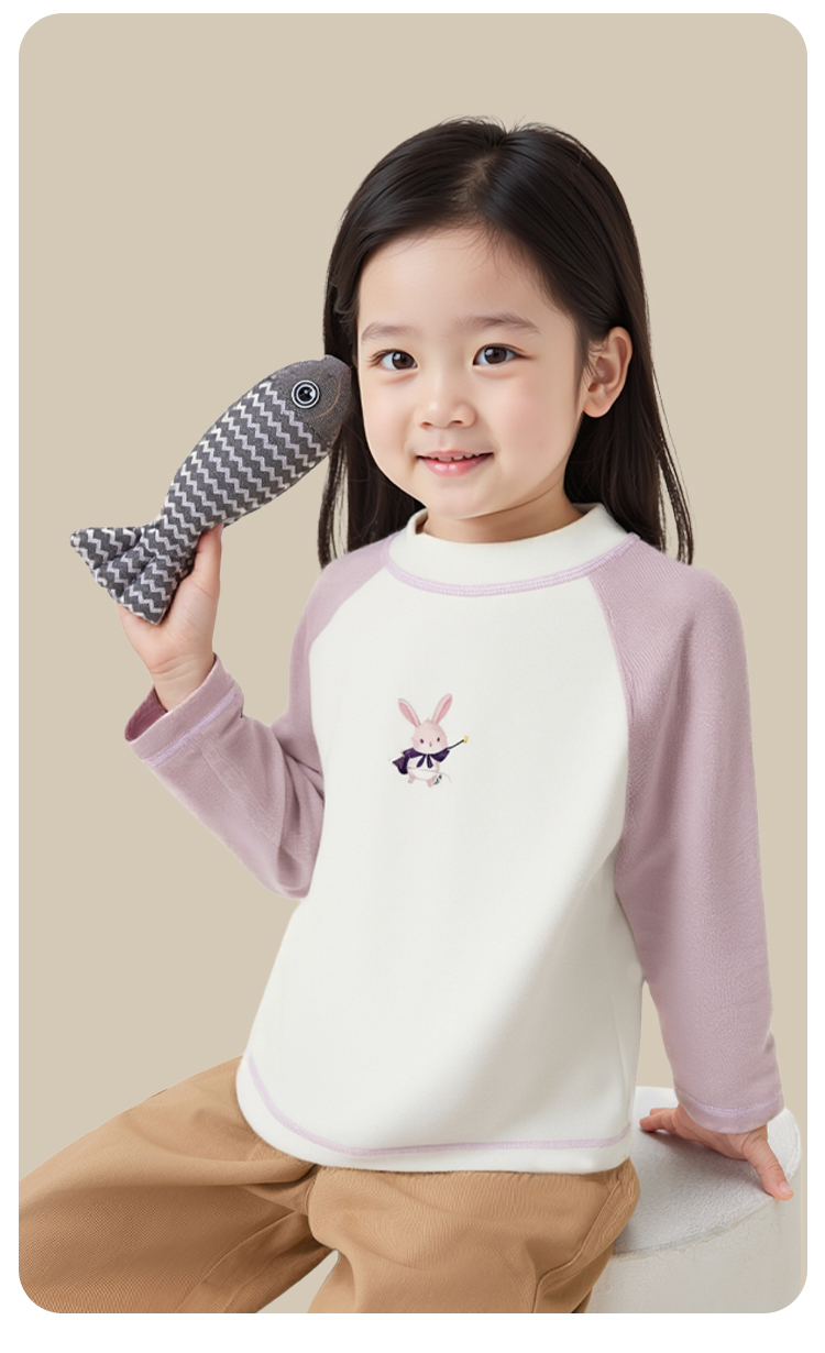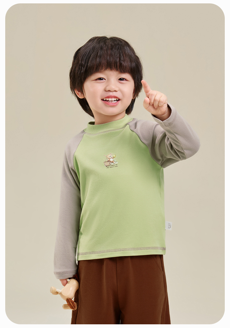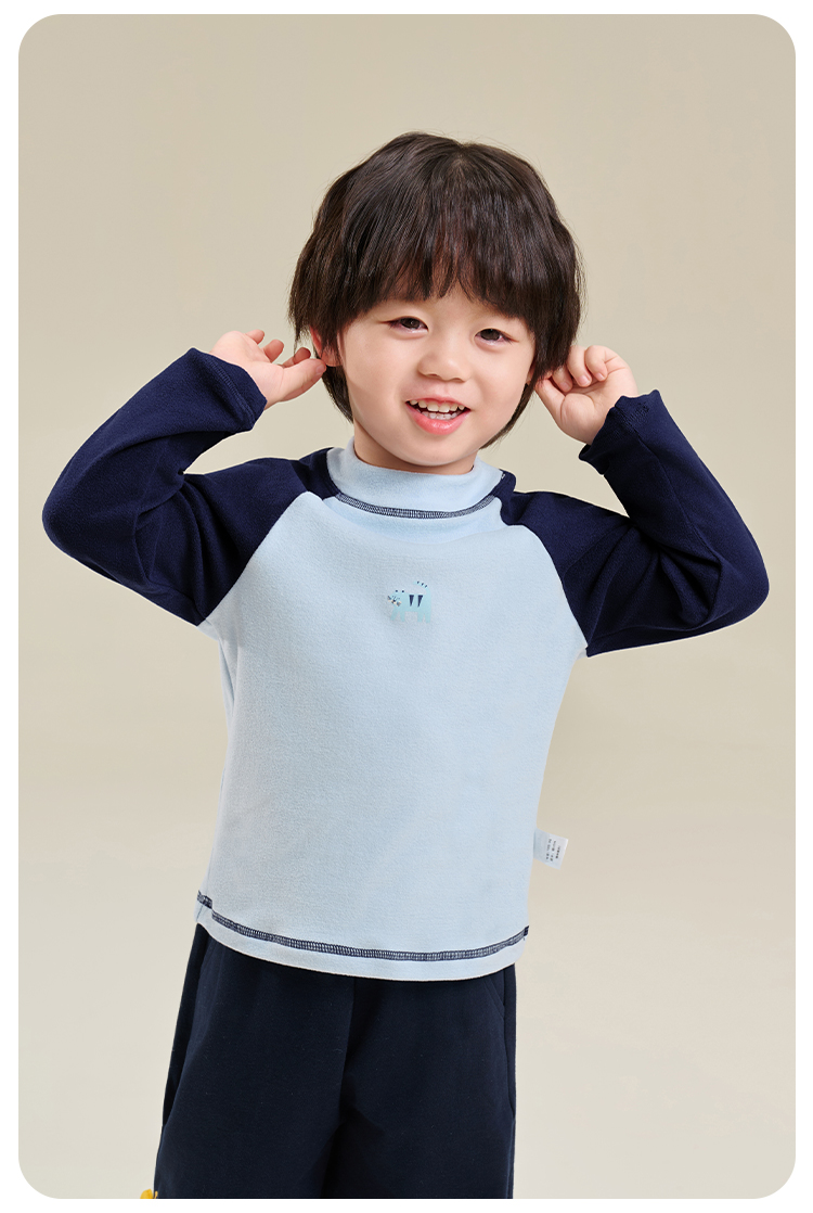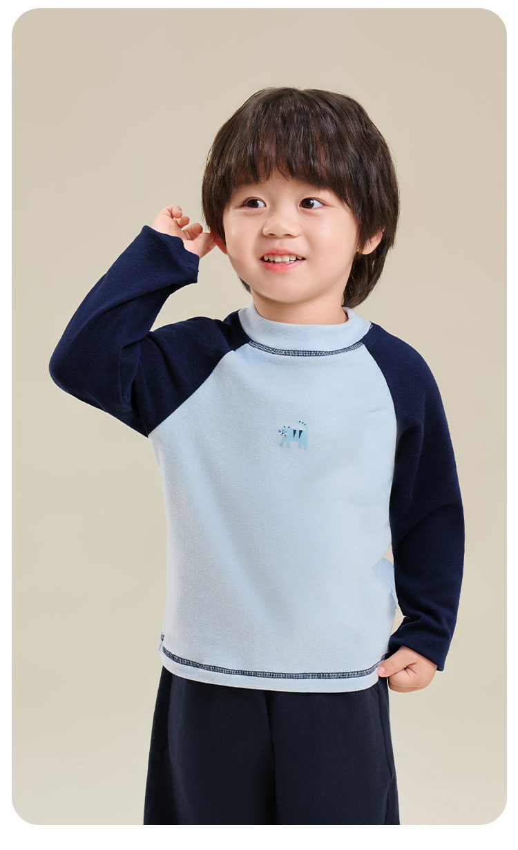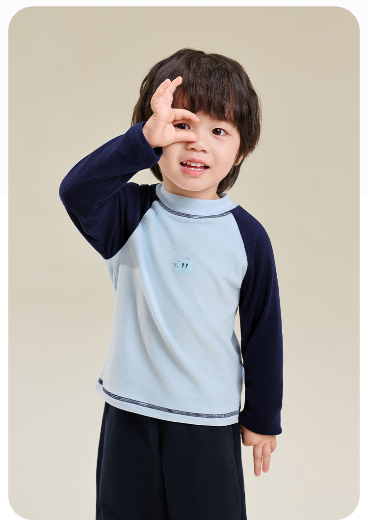 【双面磨毛】【80-130】俞兆林男女童冬款撞色打底衫长袖T恤