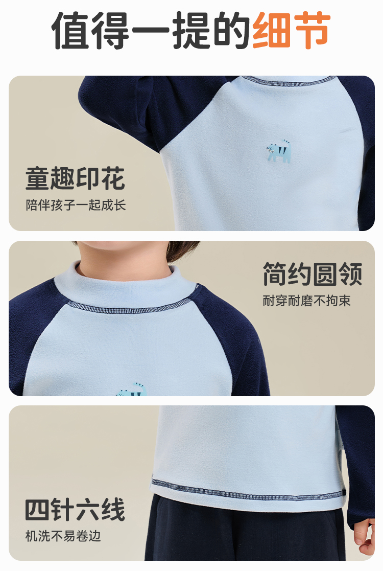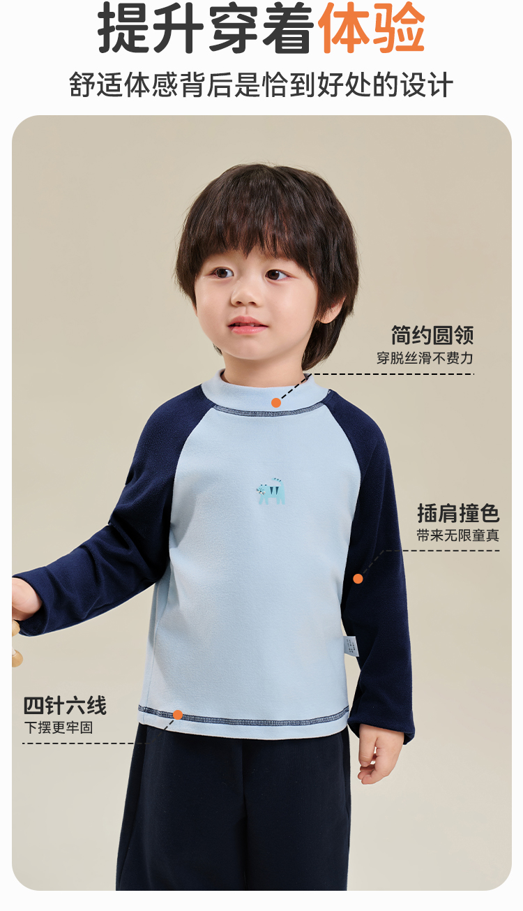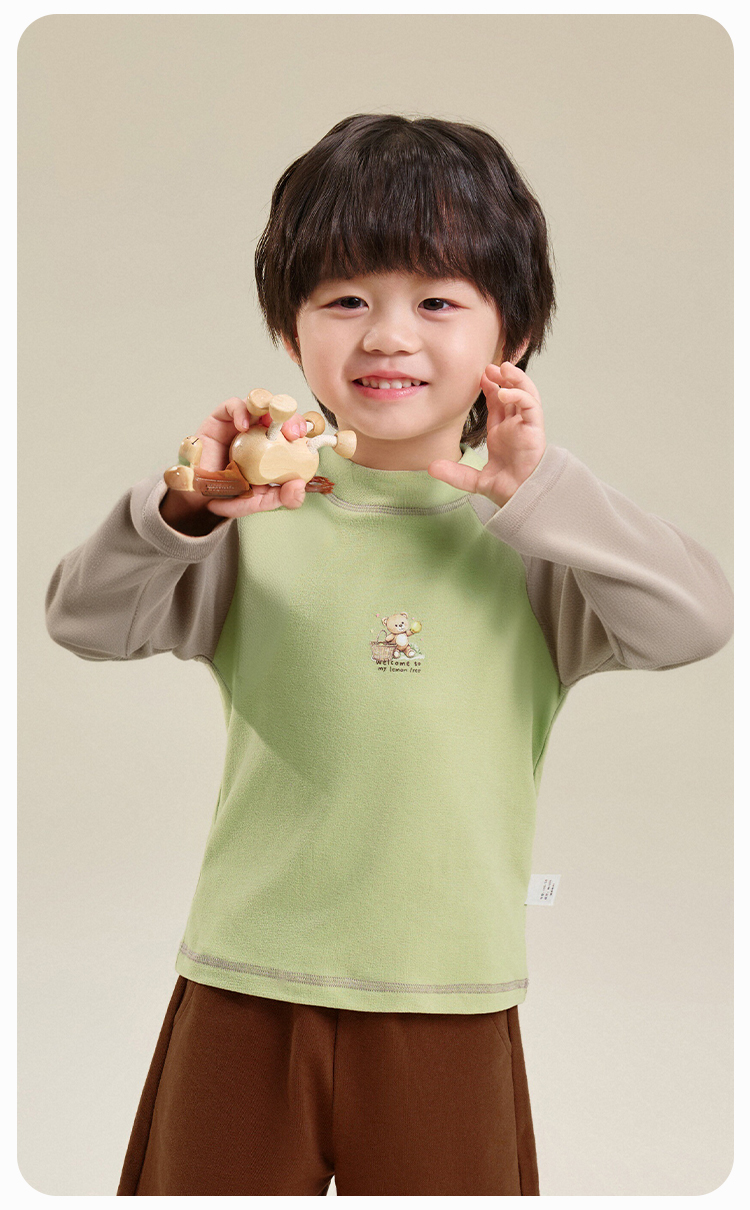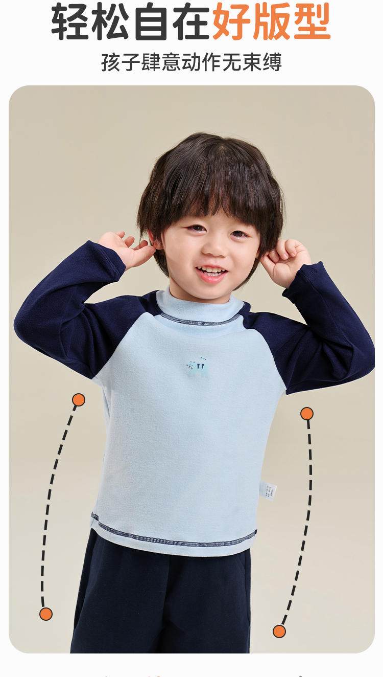 【双面磨毛】【80-130】俞兆林男女童冬款撞色打底衫长袖T恤