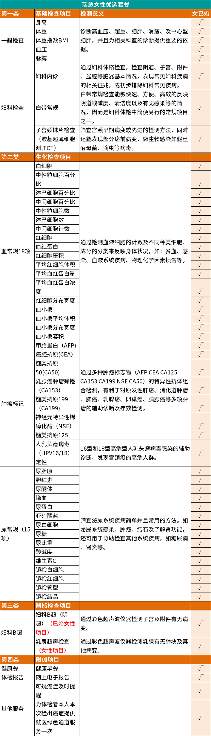 瑞慈体检女性优选体检套餐