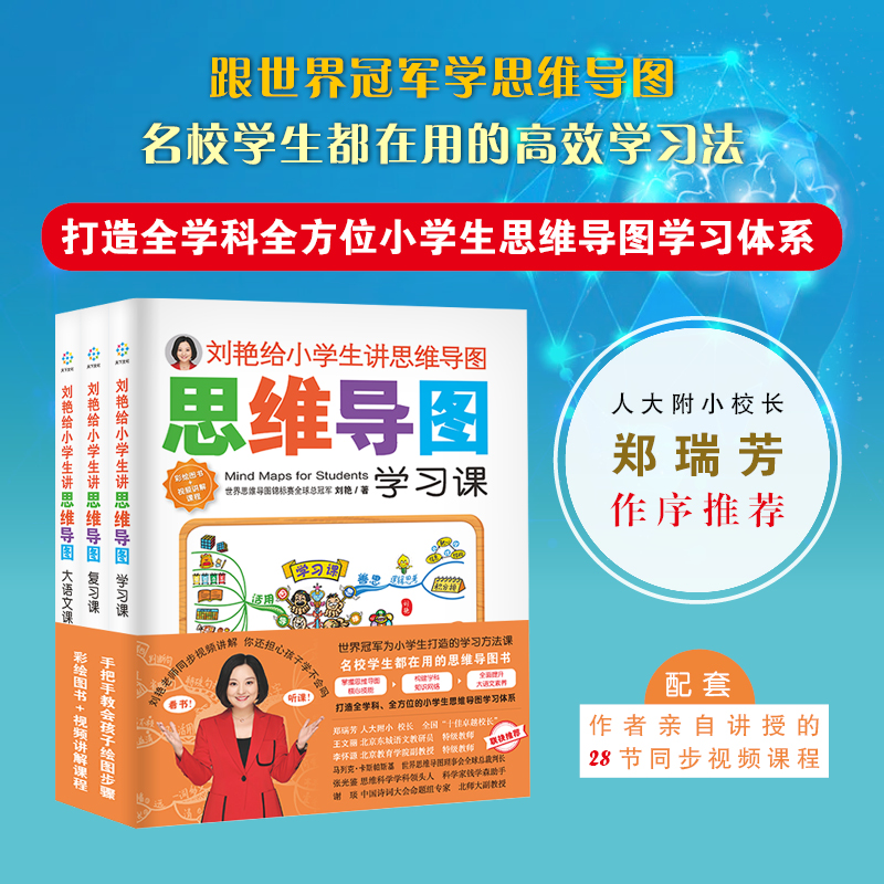 「7-12岁」人大附小校长倾情推荐《刘艳给小学生讲思维导图》全3册 加送28节配套视频讲解课程 名校学生都在用的有效学习法 附赠思维导图学习模板