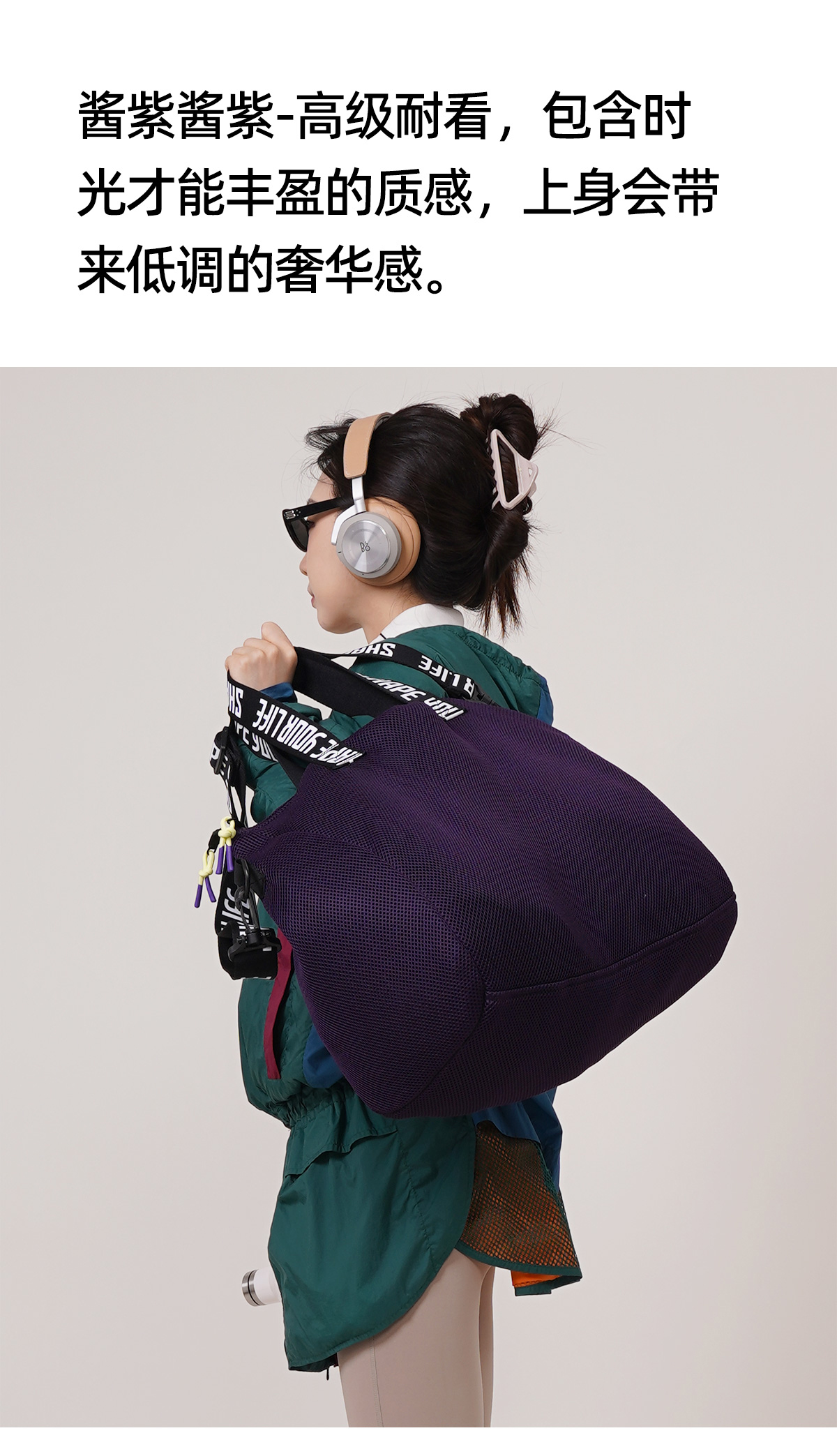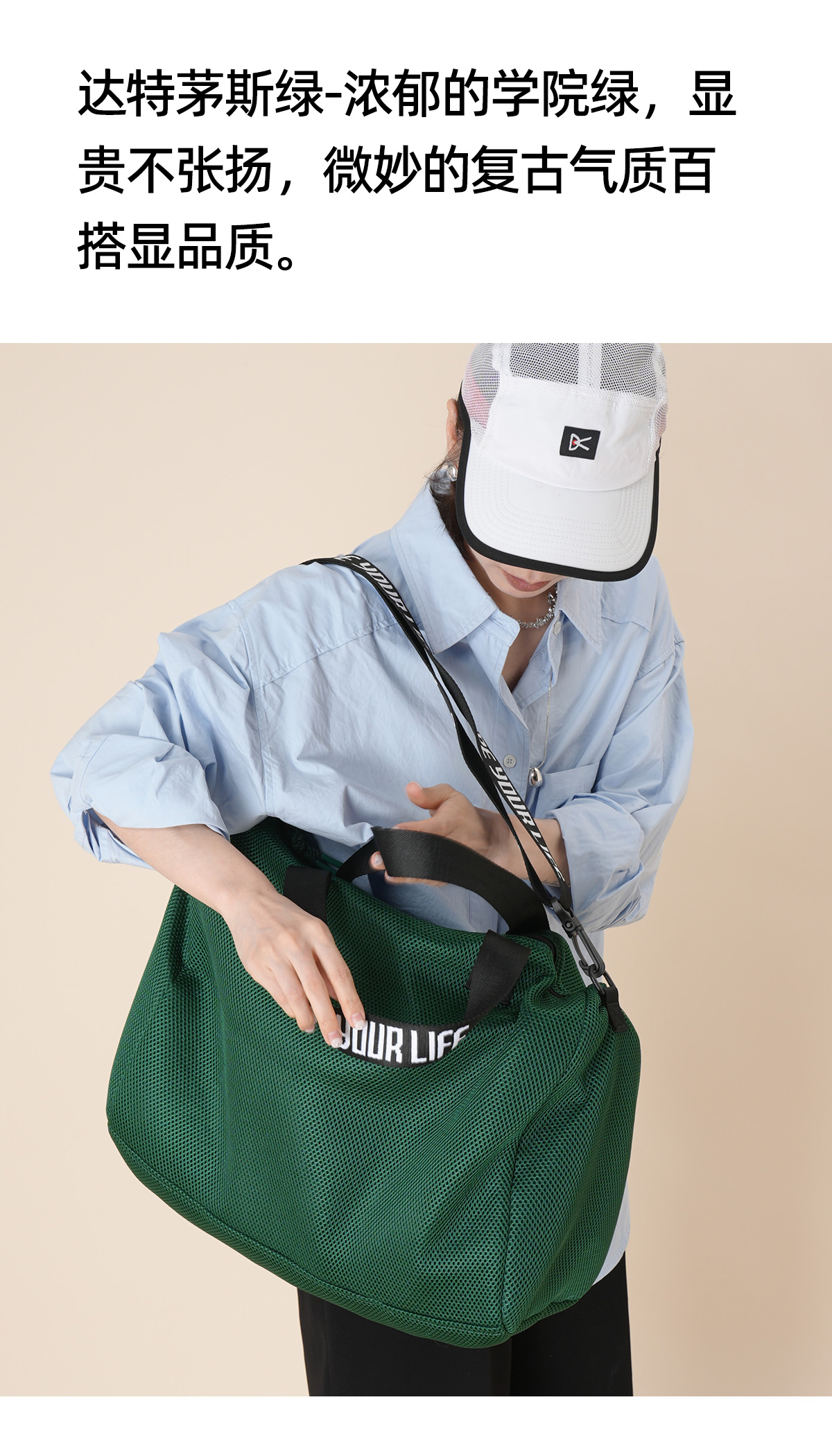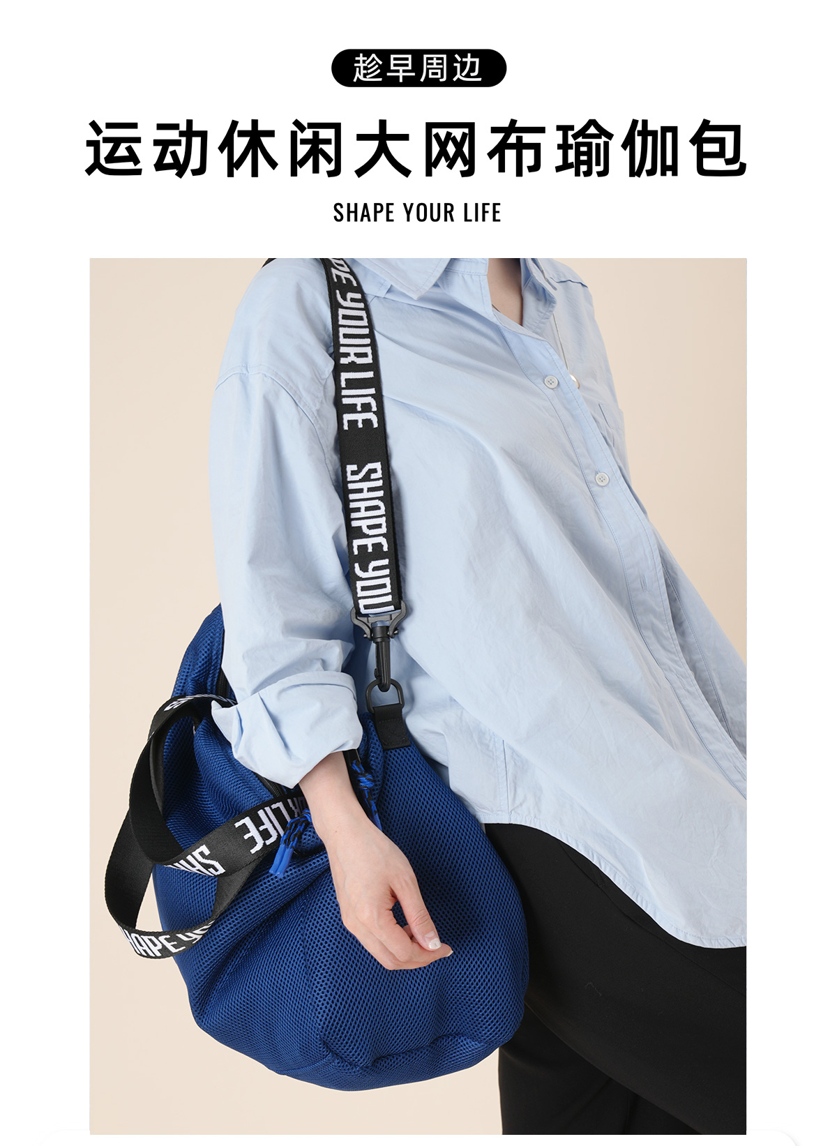 【趁早文创】趁早经典超能耐用单肩大网布包大容量训练健身瑜伽包独立收纳内袋