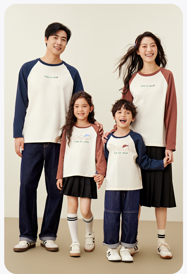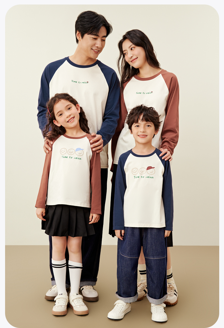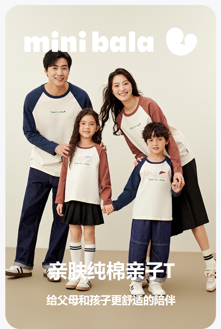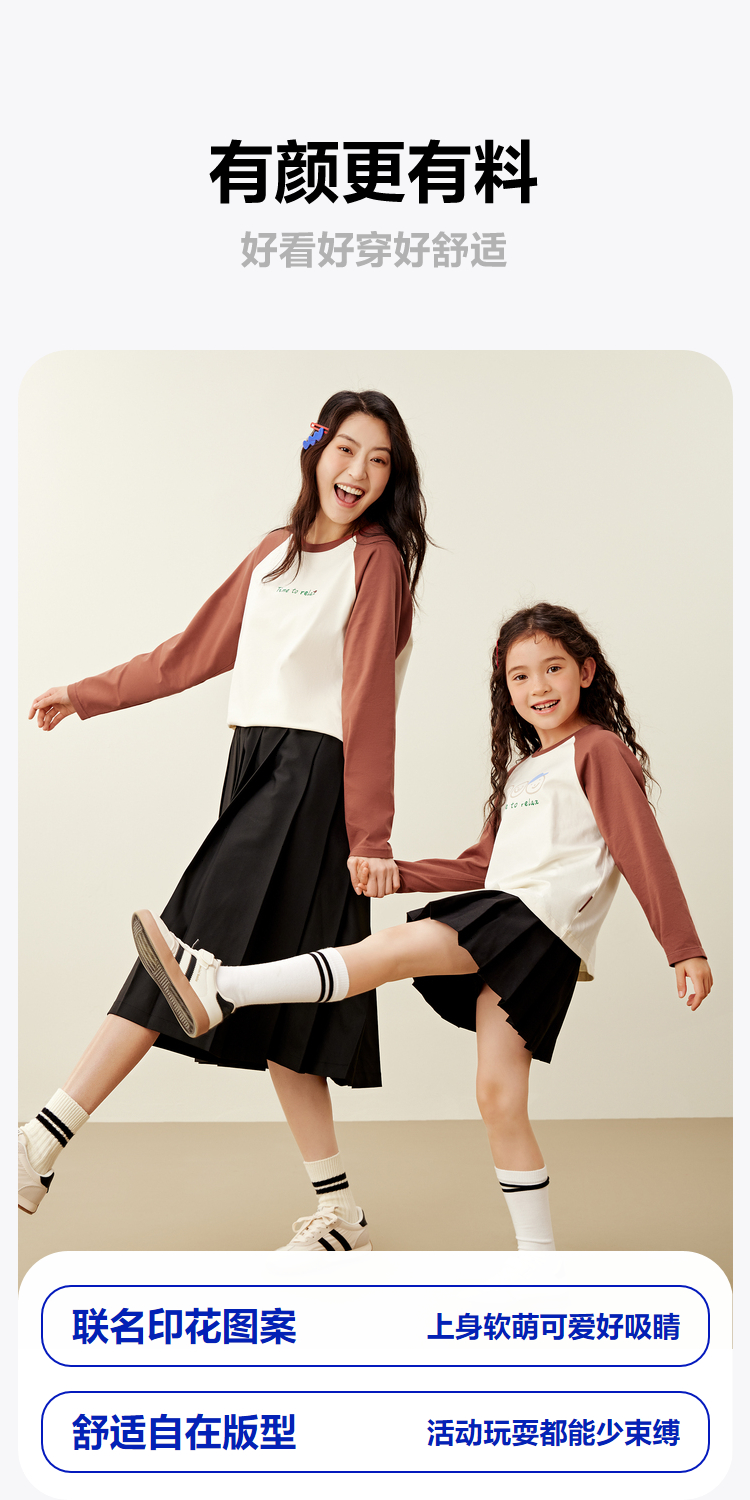 【mini亲子】迷你巴拉男女童纯棉插肩袖T恤一家三口上衣