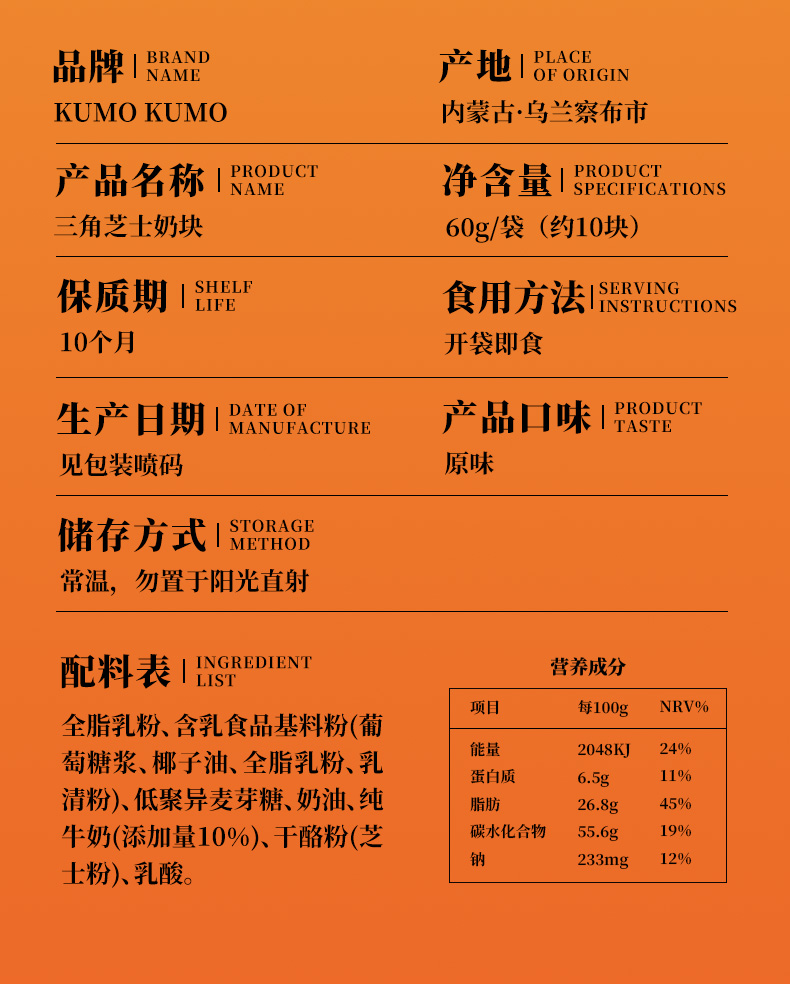 KUMO KUMO 三角芝士奶块 5袋装 60g*5