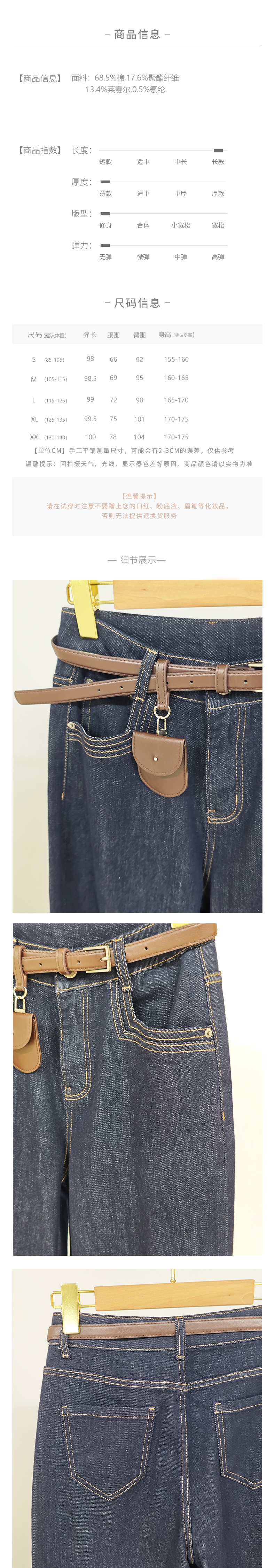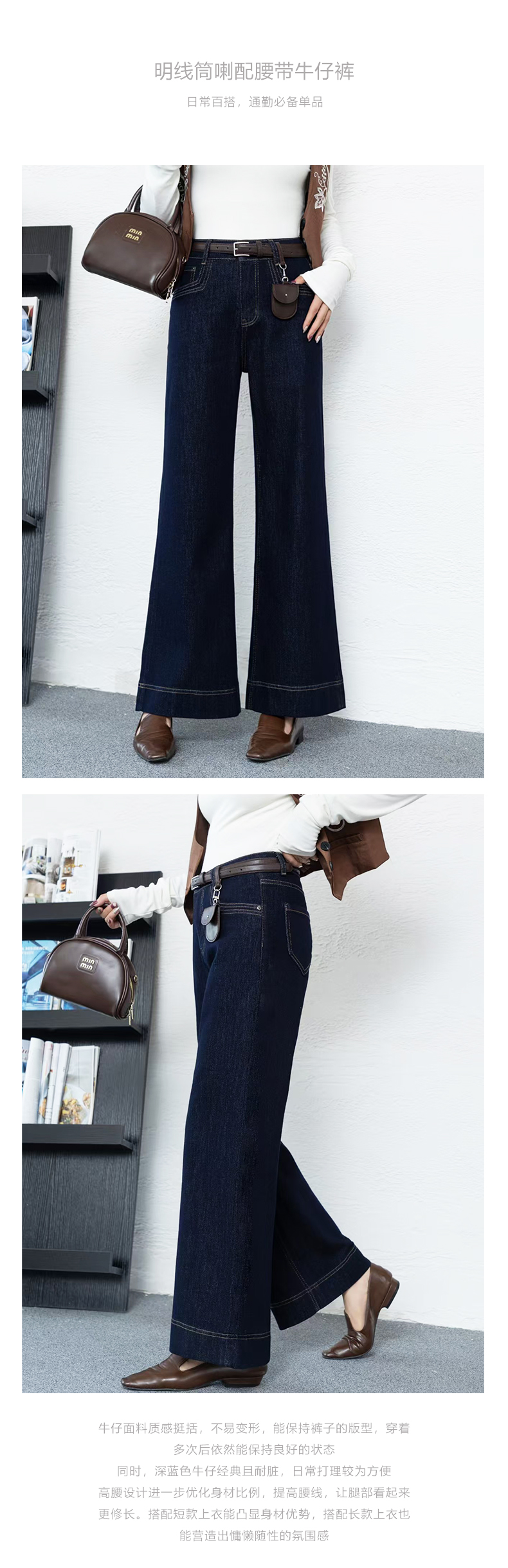 Y5Q08N1963 明线筒喇配腰带牛仔裤