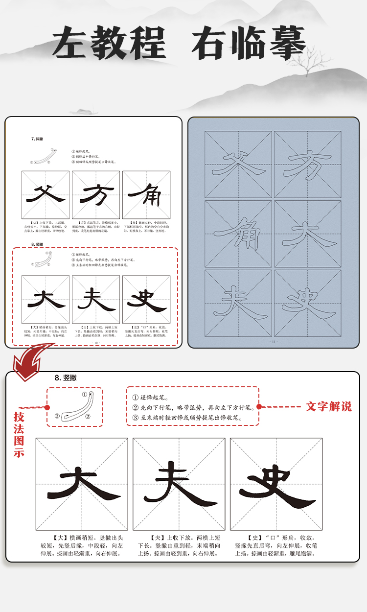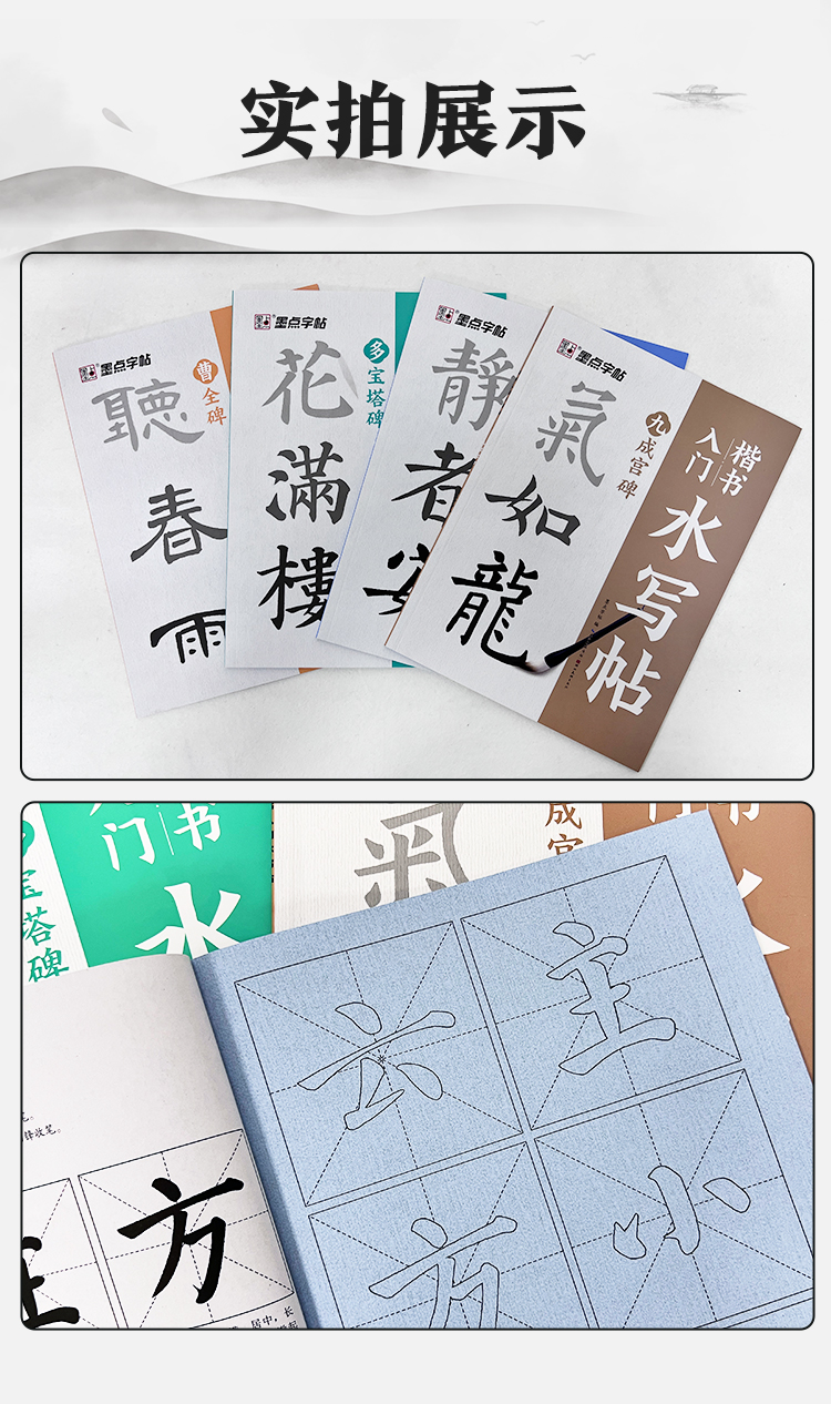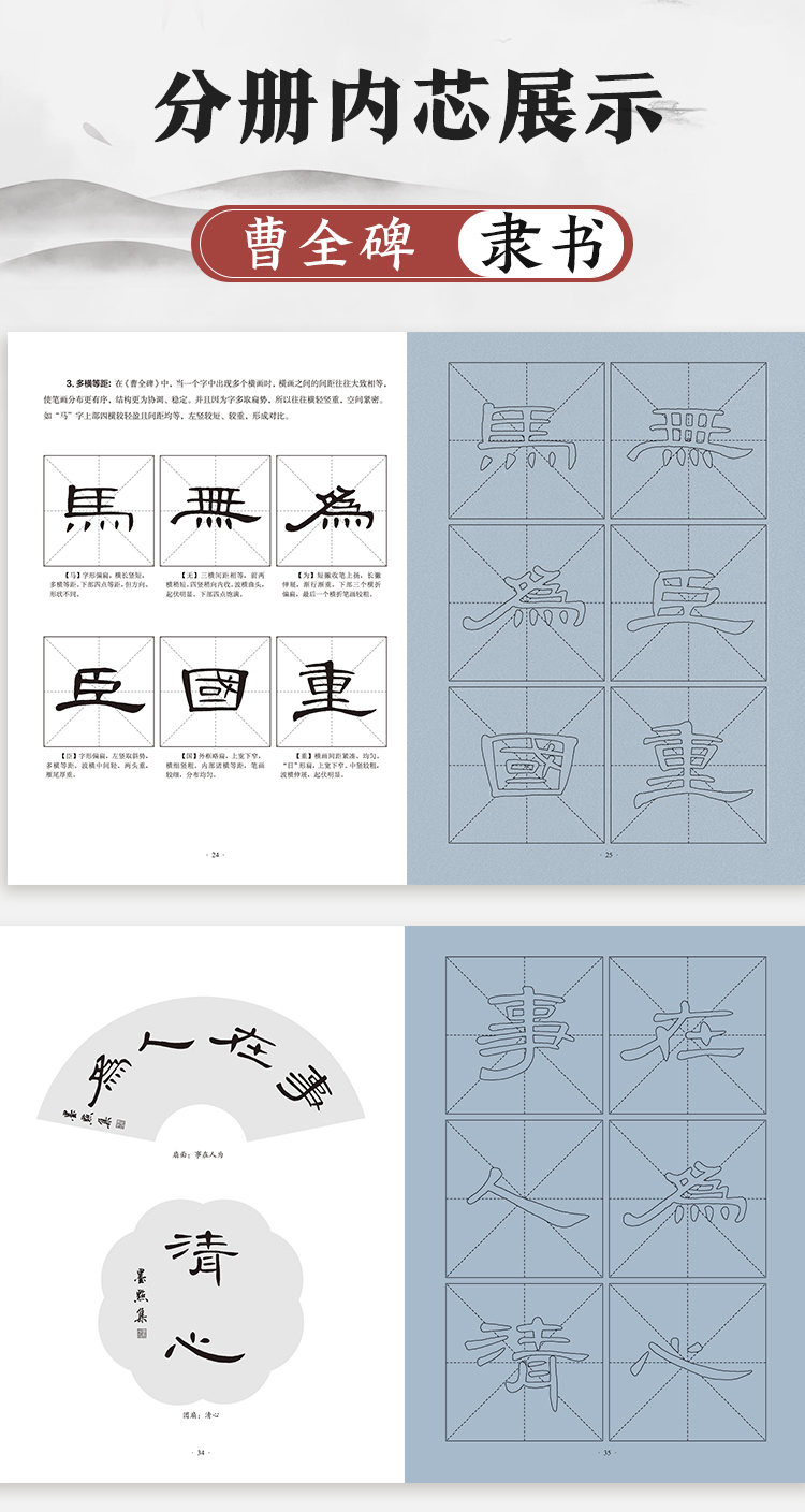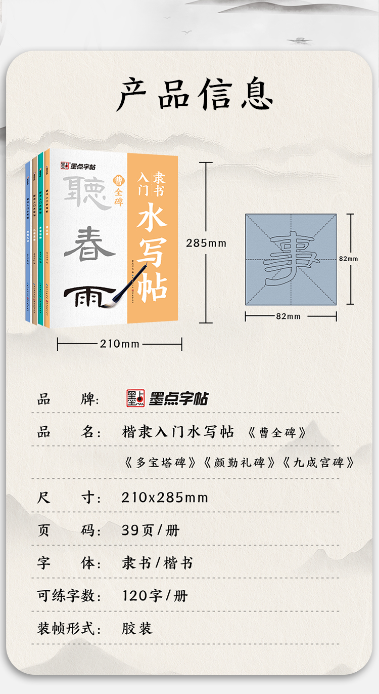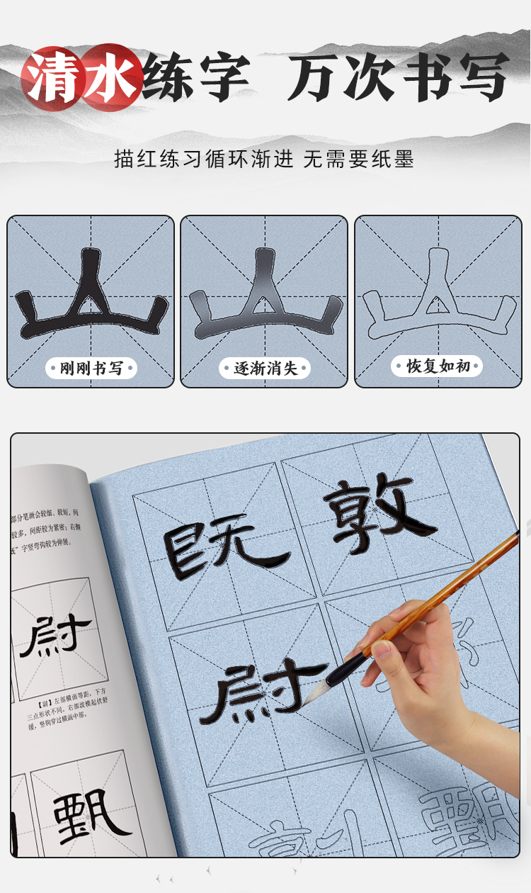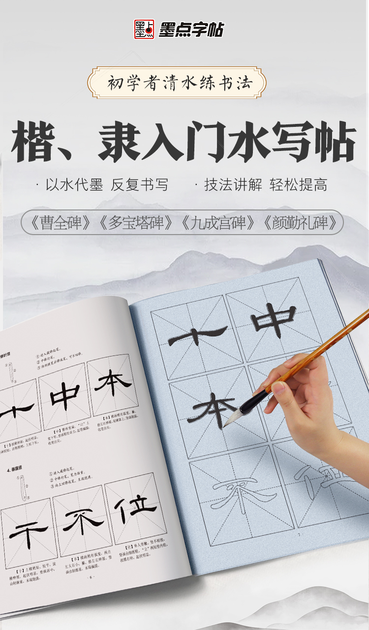 墨点字帖 楷书隶书入门水写帖 颜真卿曹全碑空白水写书法布楷书隶书毛笔练习清水临摹初学者万次水洗布练字专用字帖水写本