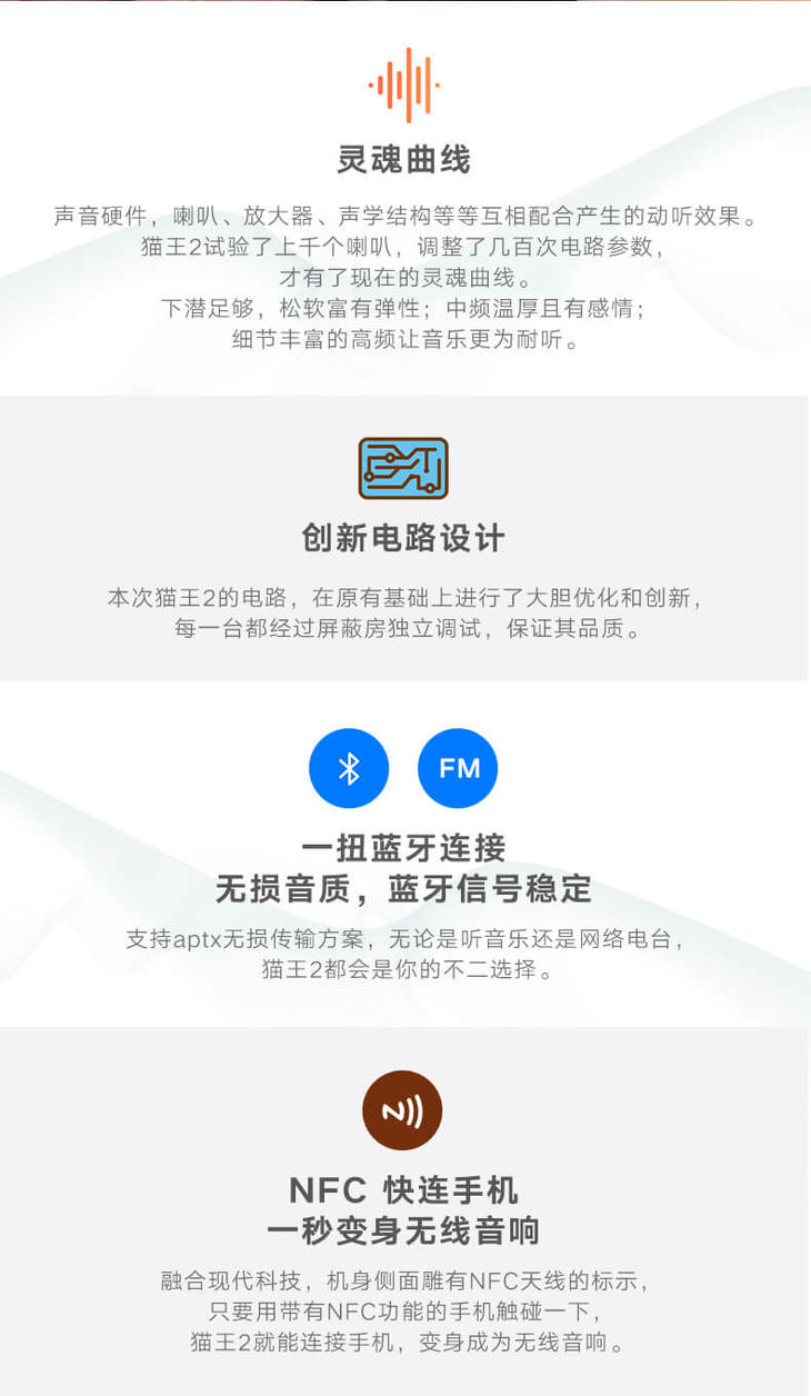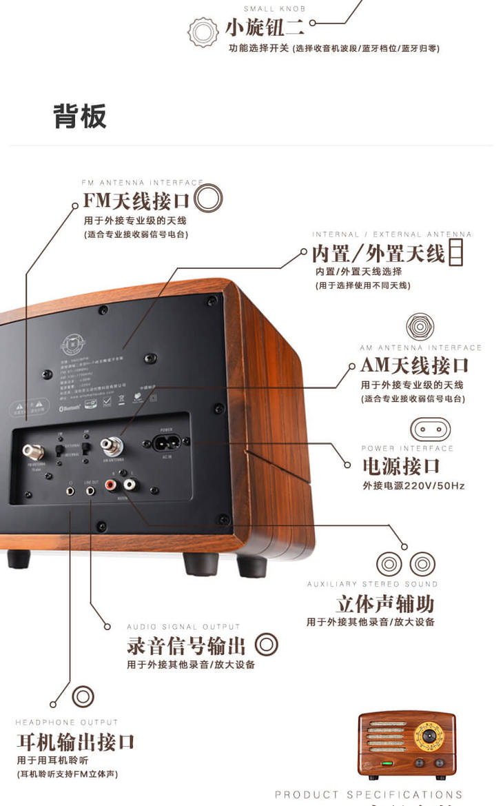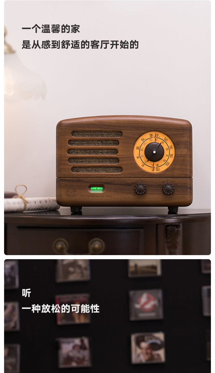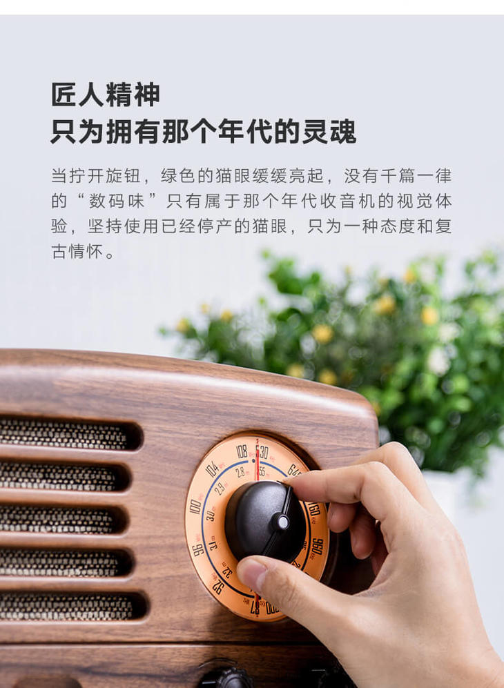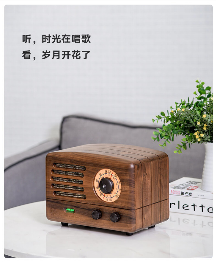 猫王收音机 猫王2(胡桃木)典藏原木质复古收音机蓝牙音箱音响 家用FM调频广播
