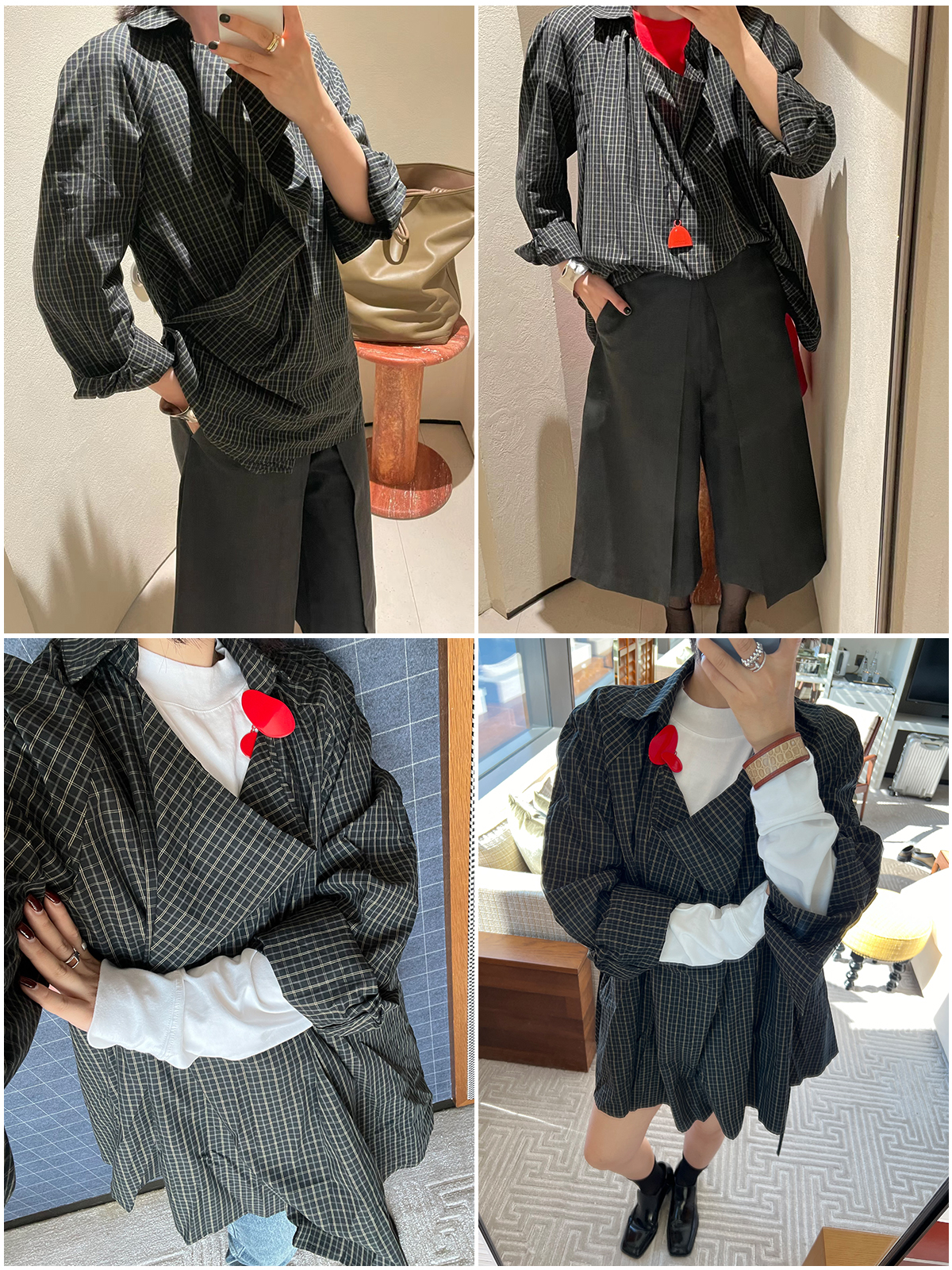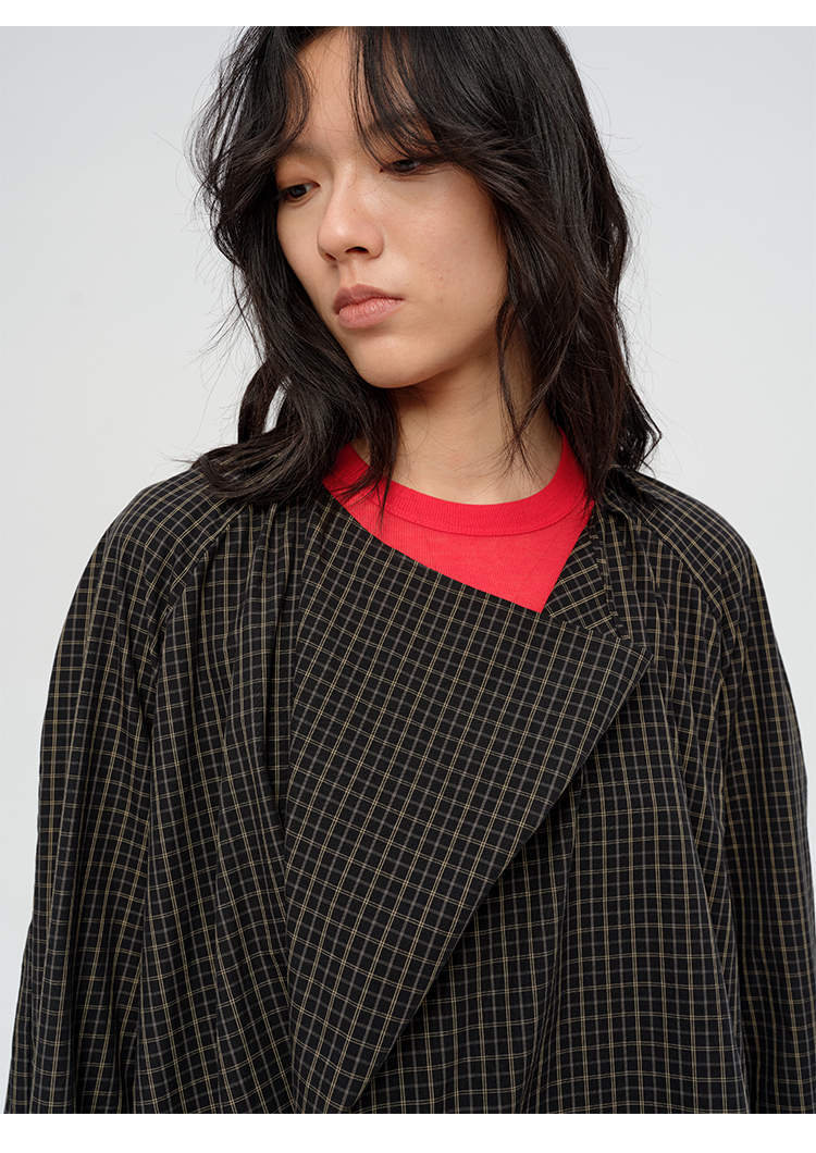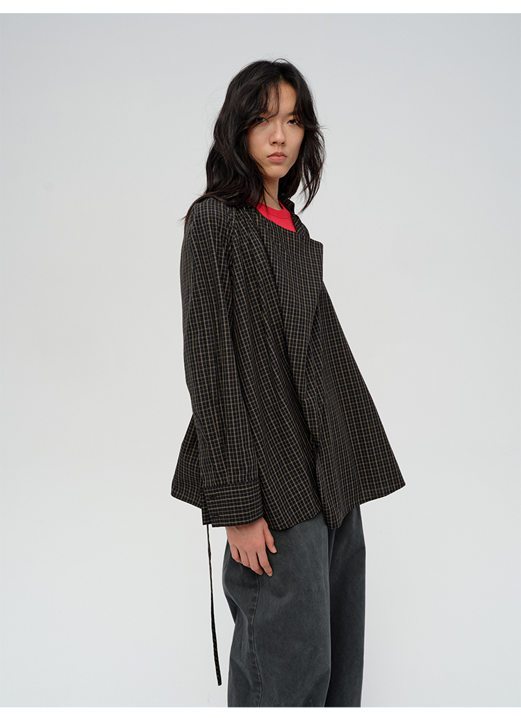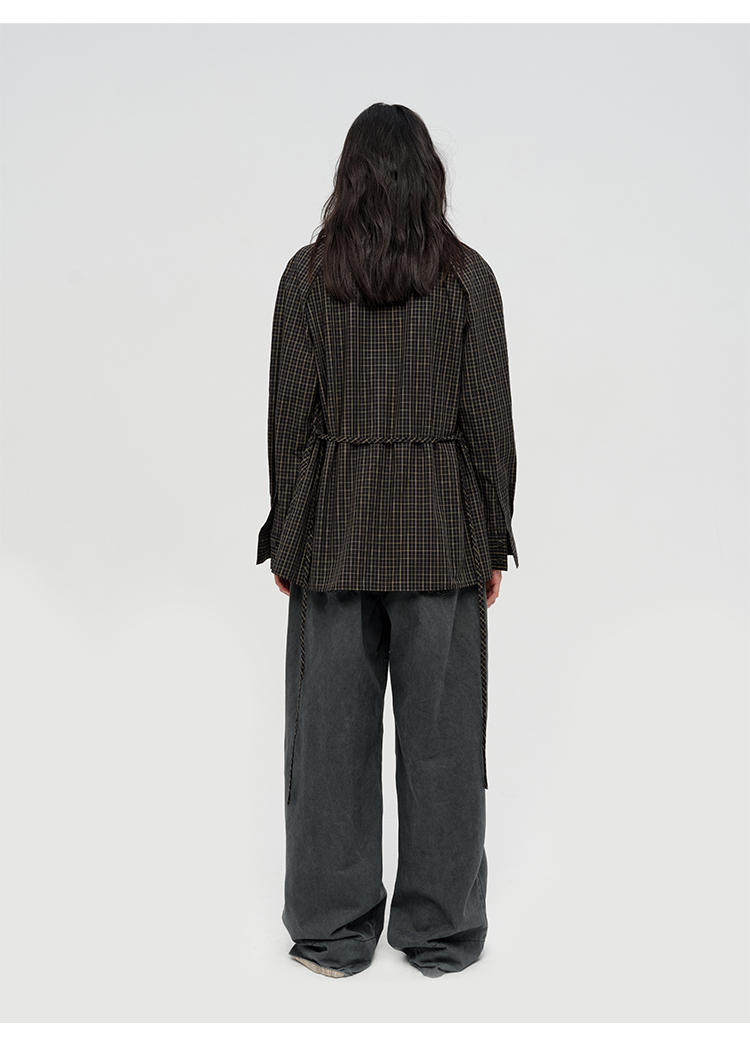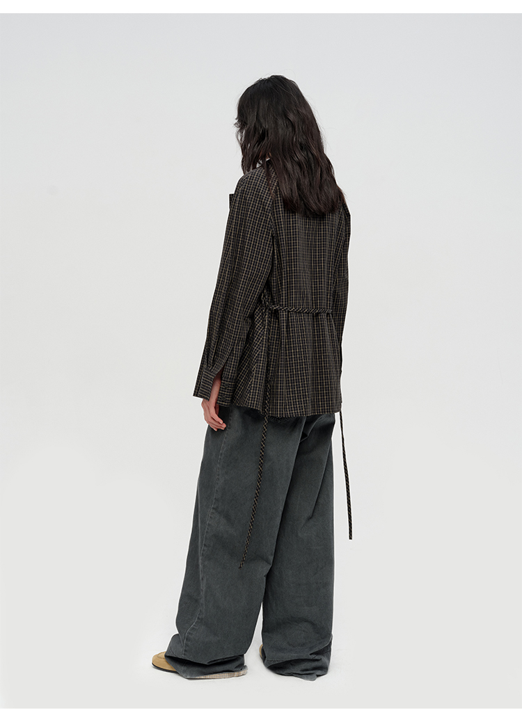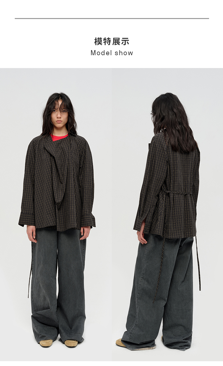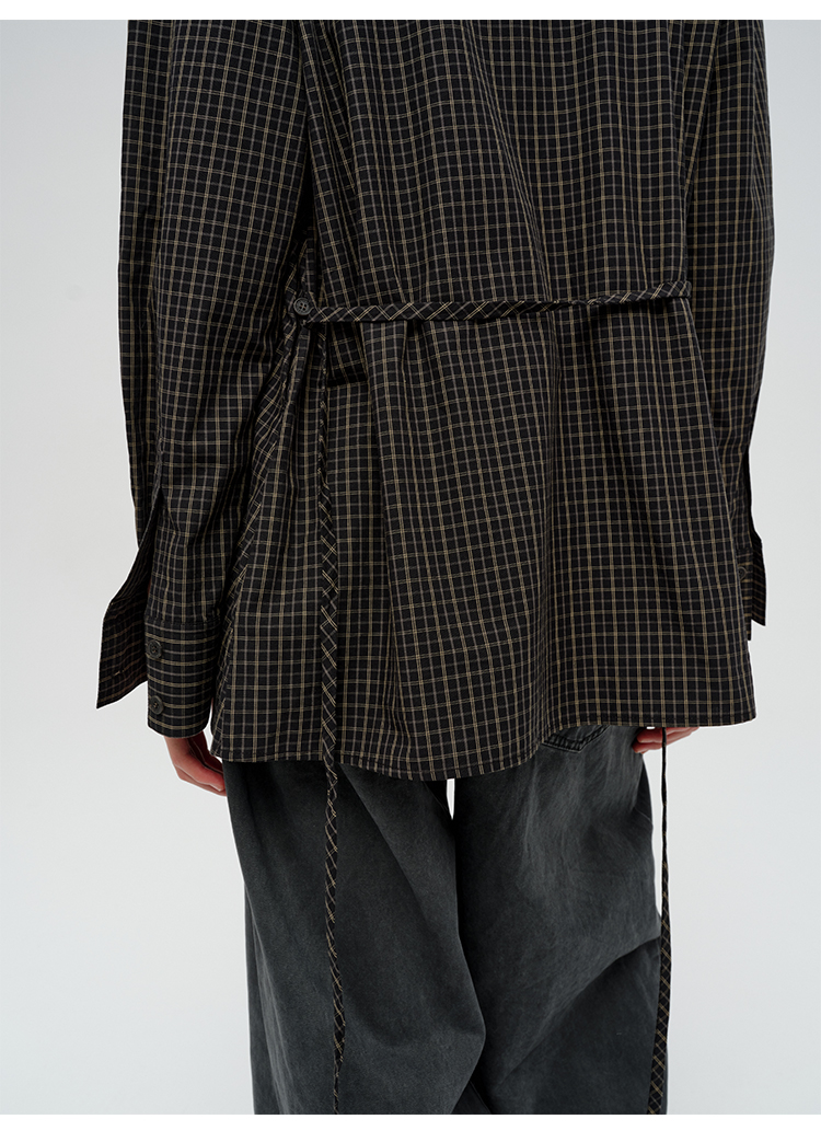 HIDEMI 限定色织格纹极简廓形设计感堆叠感可拆卸腰带式宽松版衬衫