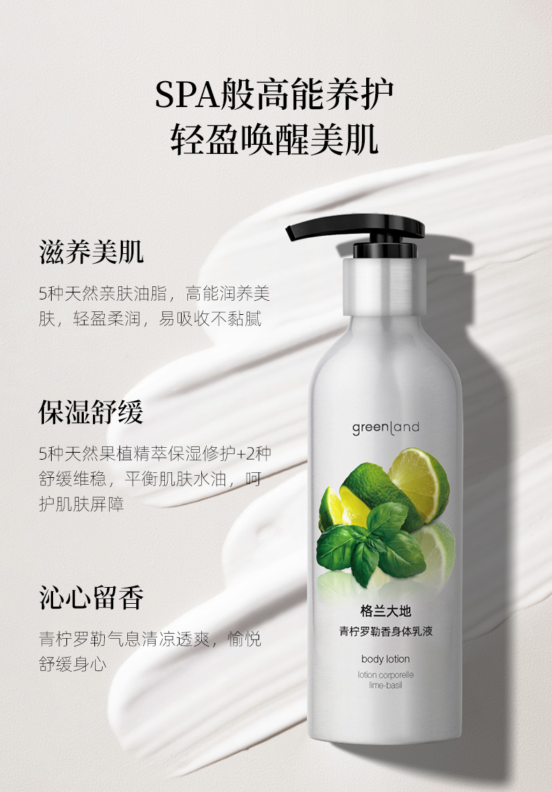 格兰大地青柠罗勒果香身体乳女保湿滋润补水持久留香200ml