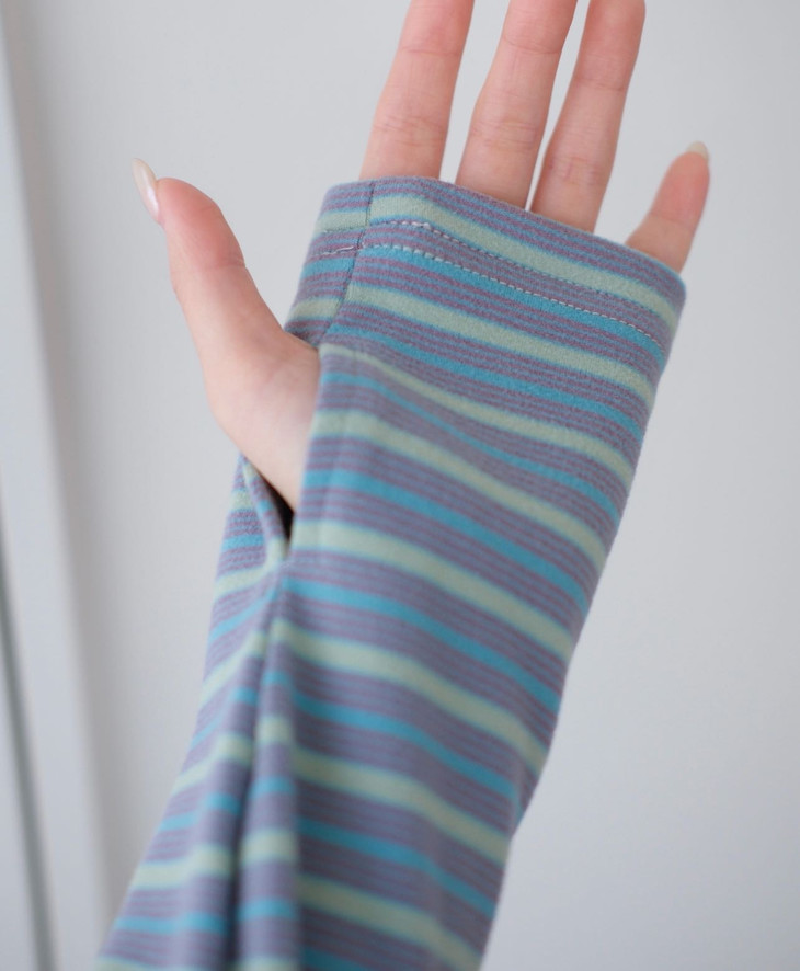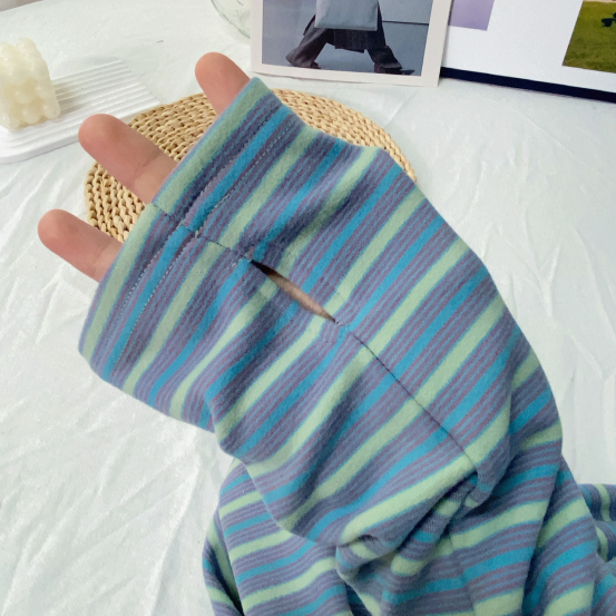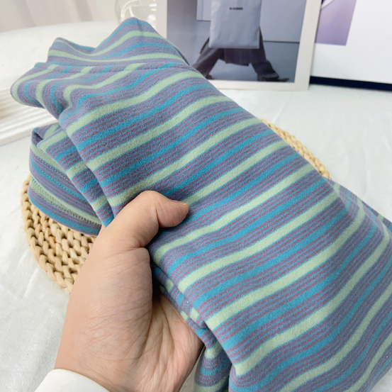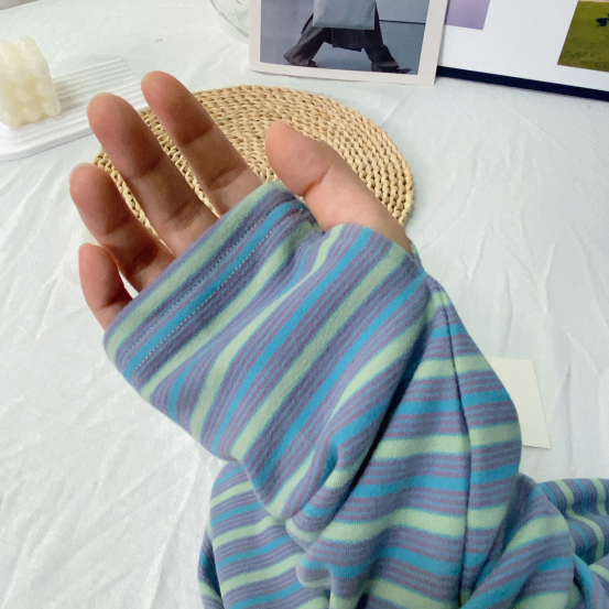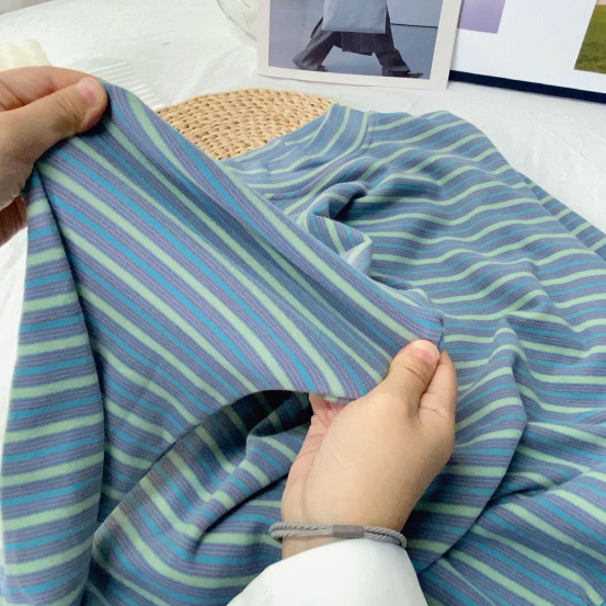 【秋冬主打款】仟梓赫 蓝绿条纹火山岩双面德绒打底衫