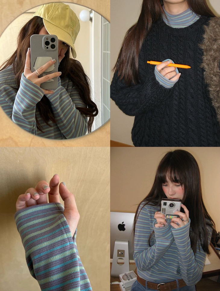 ⚠️团长上身实拍 救命!这件打底真的做到了全天候无死角实穿~ 早八通勤套上外套就走,不用费心搭配也显精致 周末漫步街头,软糯面料贴合身形,自在无束缚 定制冬日专属色,黄黑皮穿也能白到发光✨ 蓝绿撞色细条纹单穿不单调,叠穿是点睛之笔 细条纹不显胖,视觉收缩身形显瘦力max 姐妹们闭眼入,厚度和质感都让人安全感爆棚~