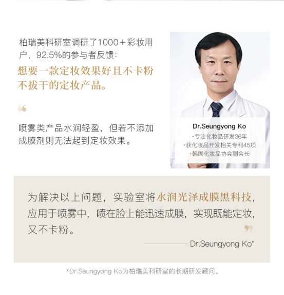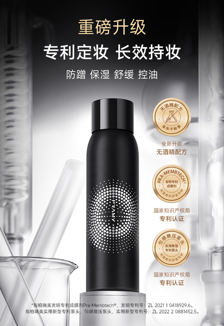 15s快速成膜,轻盈不闷痘 柏瑞美定妆喷雾喷在脸上 15秒快速成膜,遇水也根本不怕 喷上脸后水润不卡粉,妆感超强 定妆时效长达12小时! 上脸清透服帖还保湿不拔干!