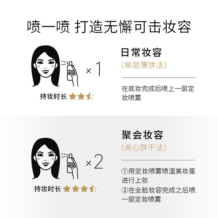 我每次用都在惊叹! 喷上不容易脱妆了,真的很惊喜! 喷完直接把底妆焊在脸上! PS:一定用够量,喷到面部微微湿润,然后等它干透成膜才有持妆效果,喷少了没用哦