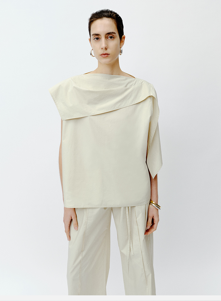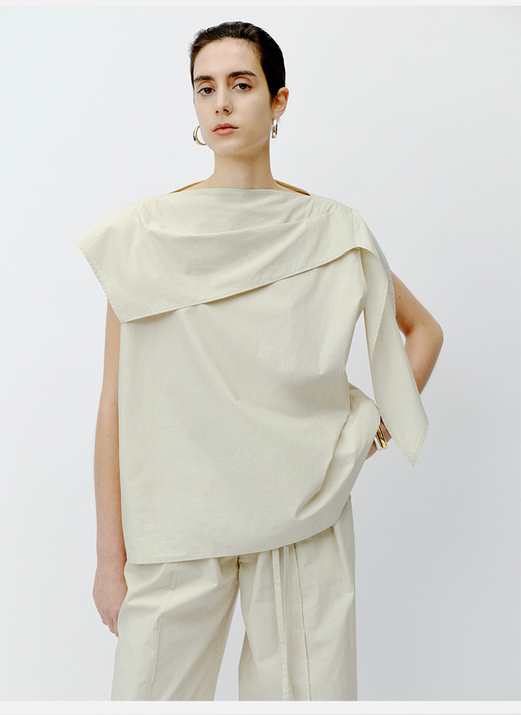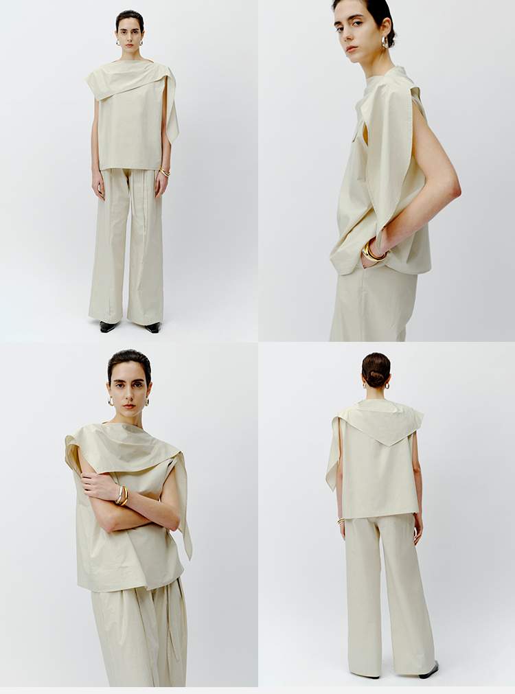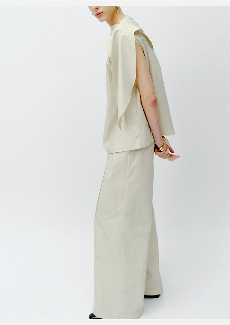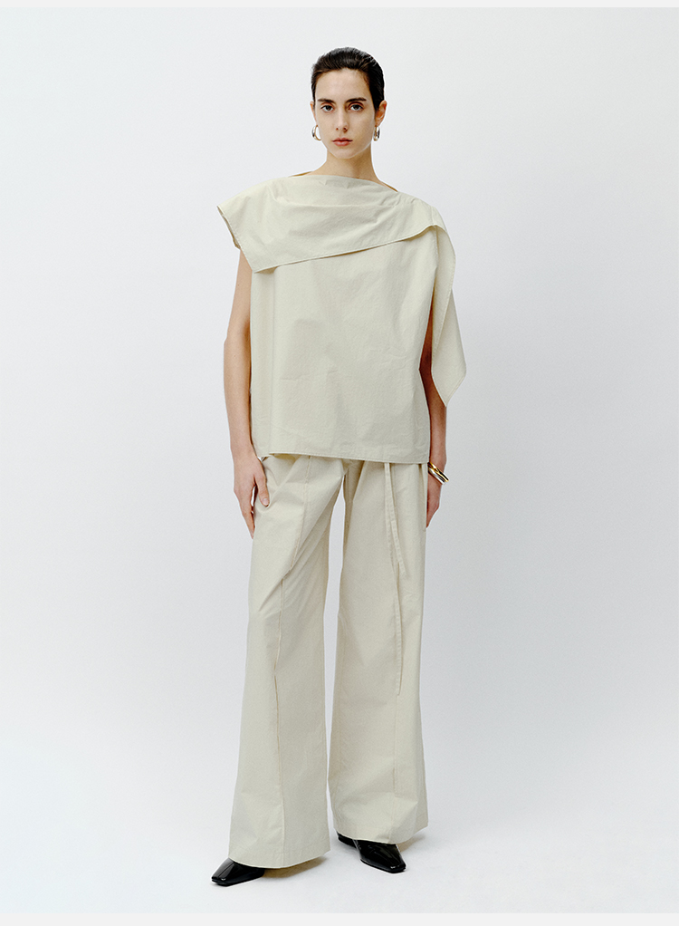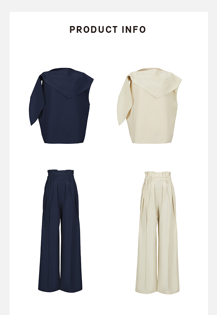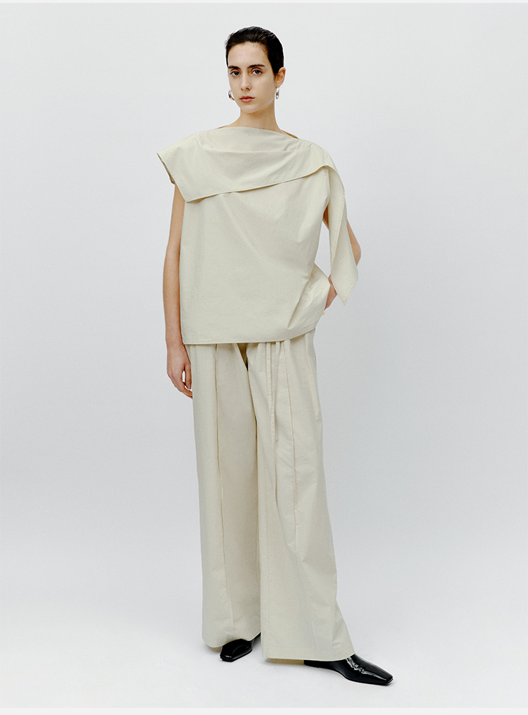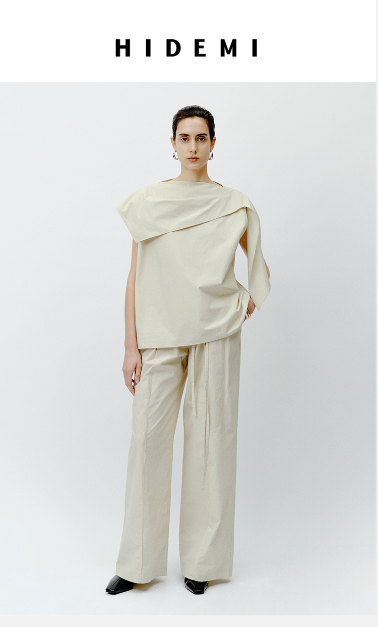HIDEMI 不对称设计感水洗棉极简廓形两件套套装 上衣/阔腿裤