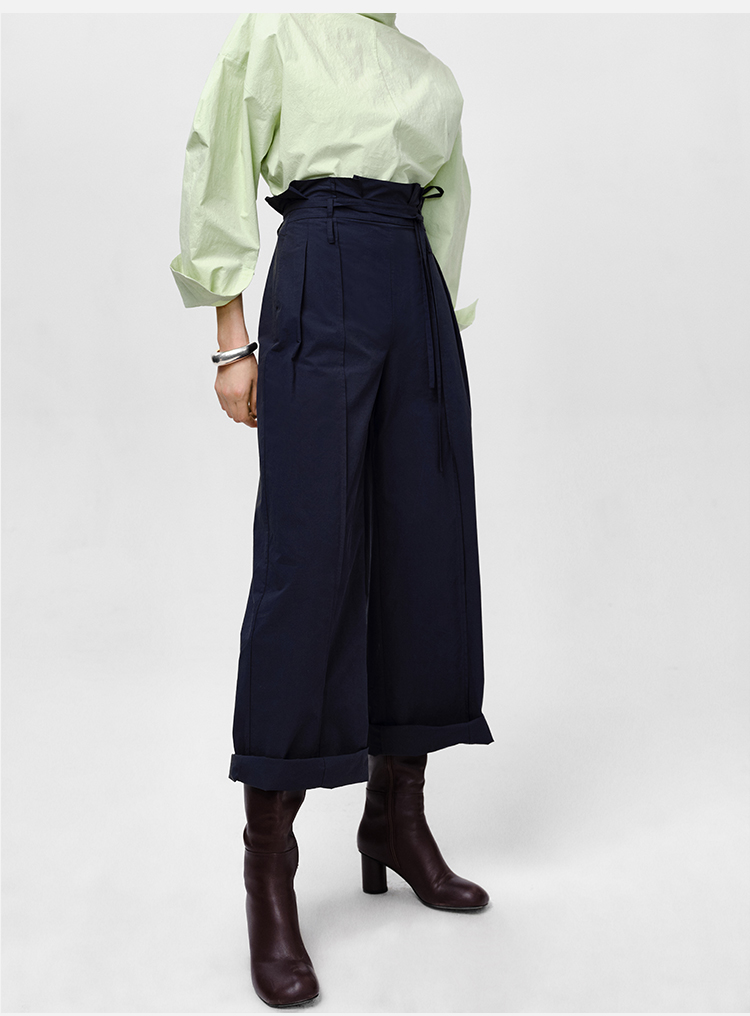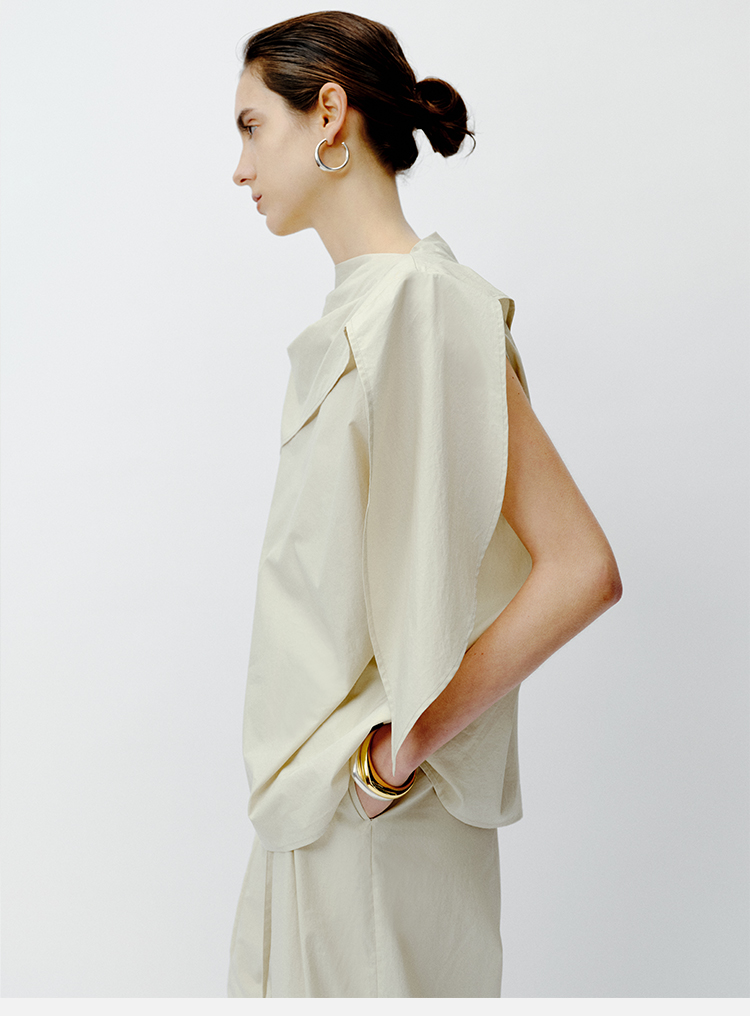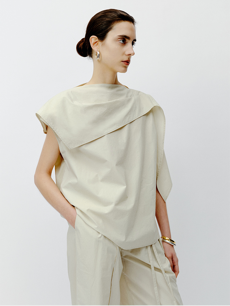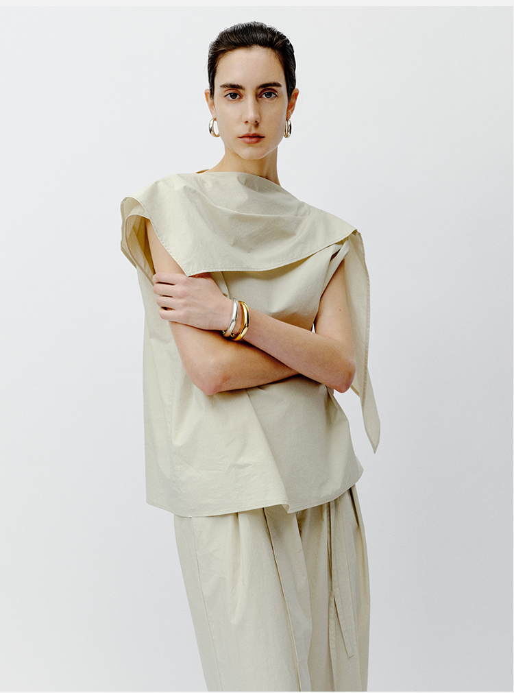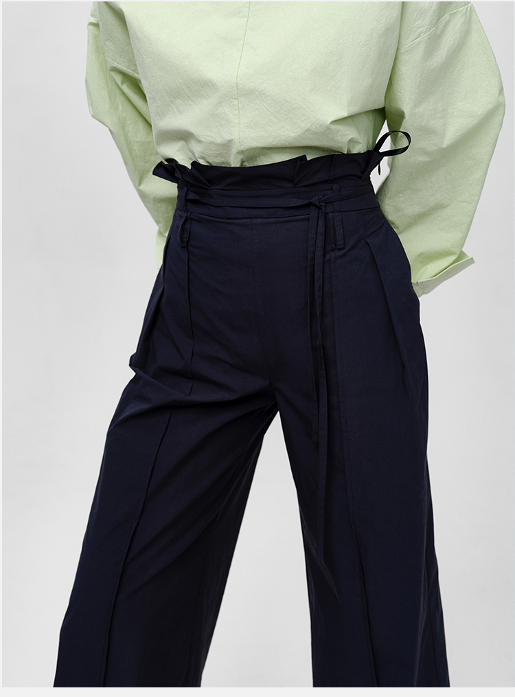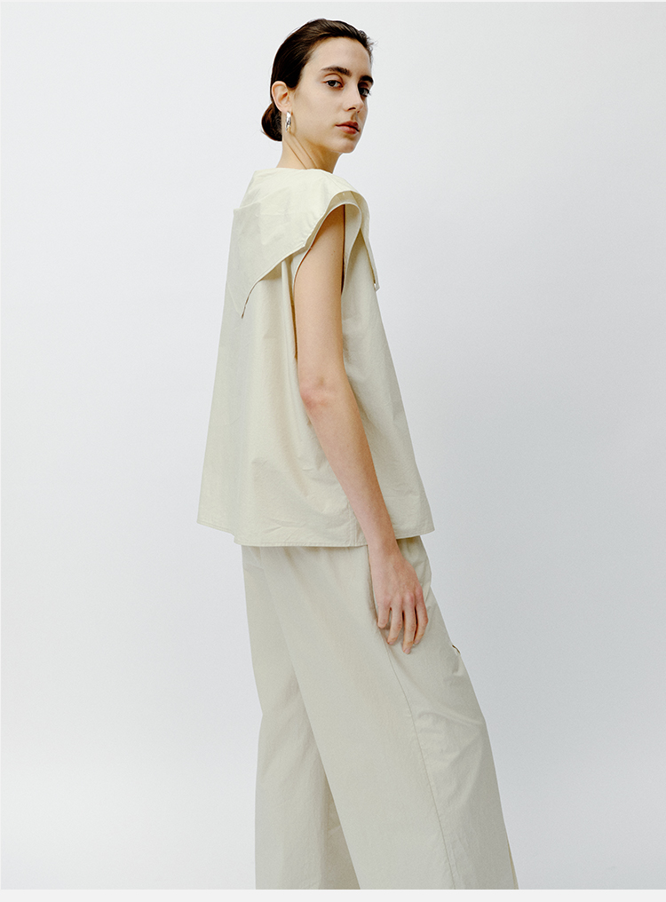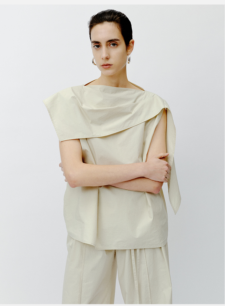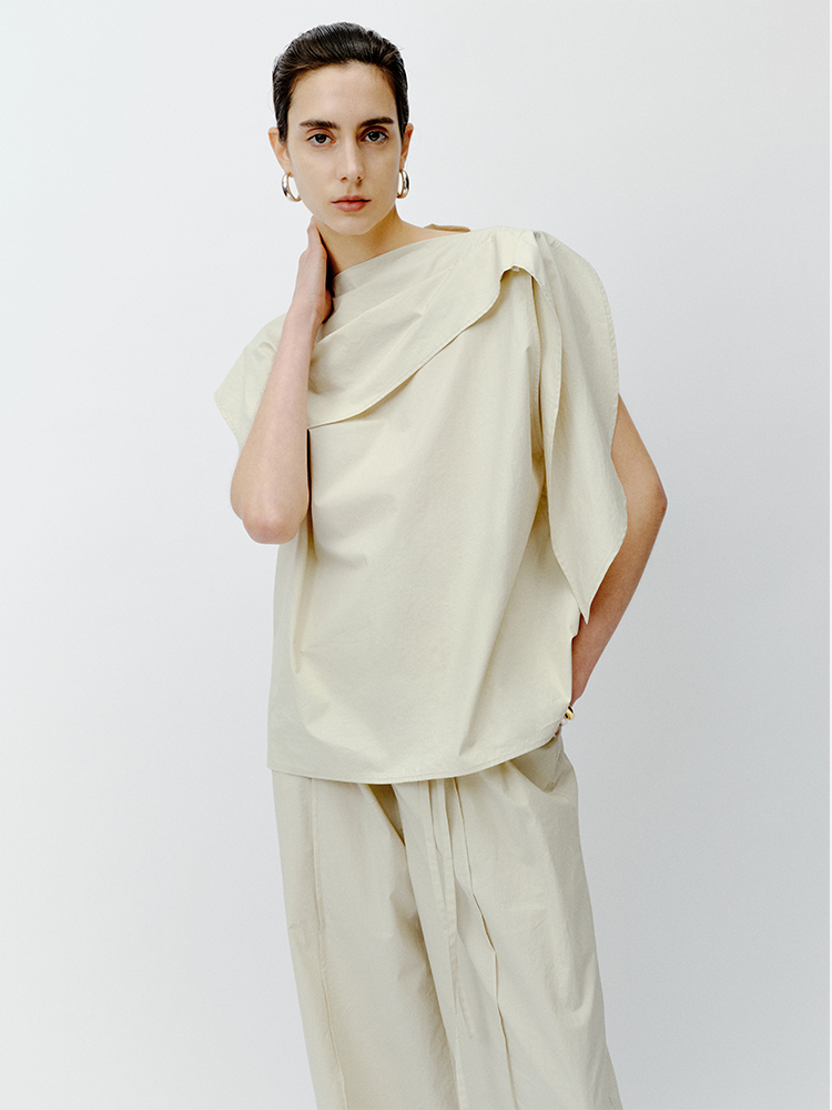 HIDEMI 不对称设计感水洗棉极简廓形两件套套装 上衣/阔腿裤