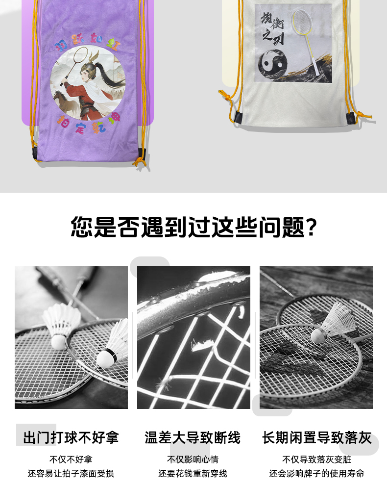 的幸羽毛球拍套羽毛球拍袋加厚单肩羽拍收纳保护套轻便抽绳绒布收纳袋