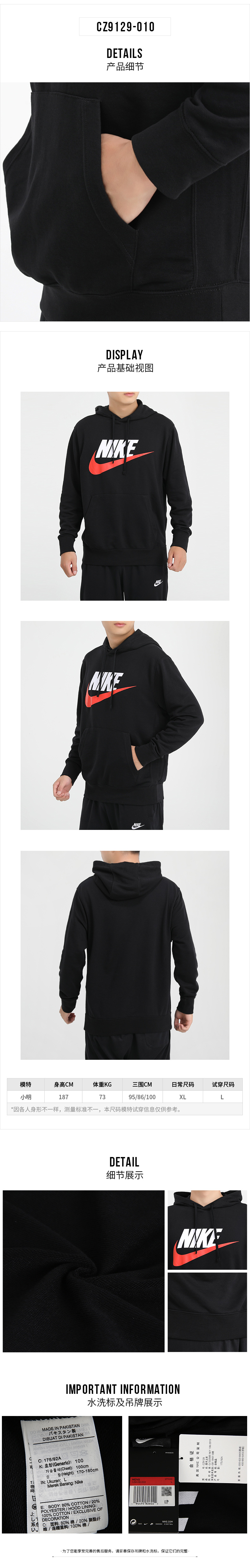 NIKE耐克卫衣男装 2021秋季新款运动服加厚加绒长袖运动宽松保暖套头衫连帽圆领卫衣男 CZ9129-010