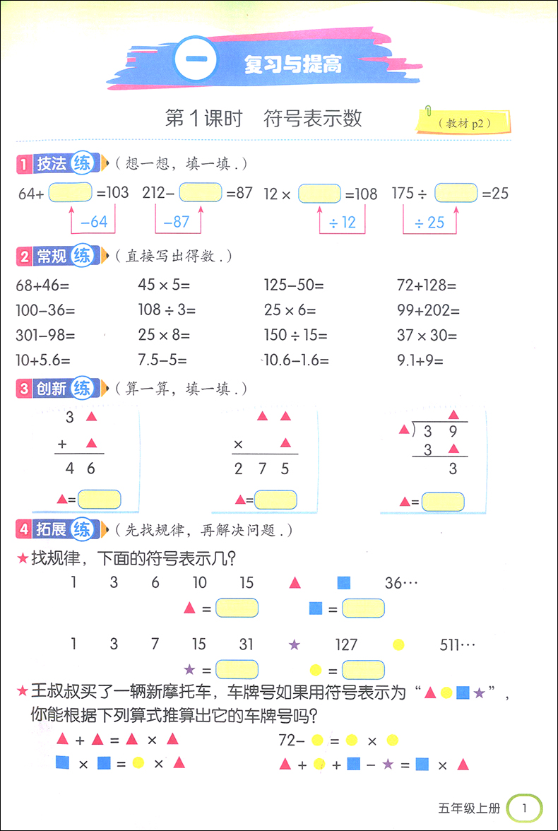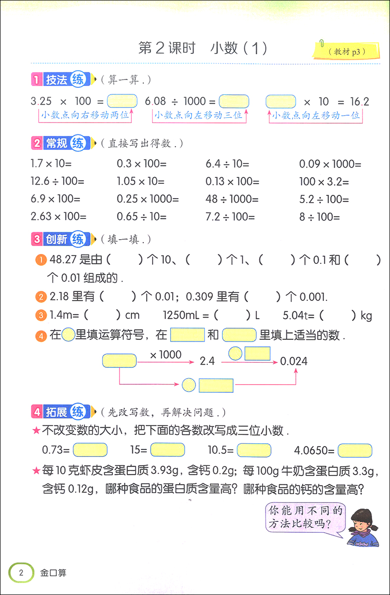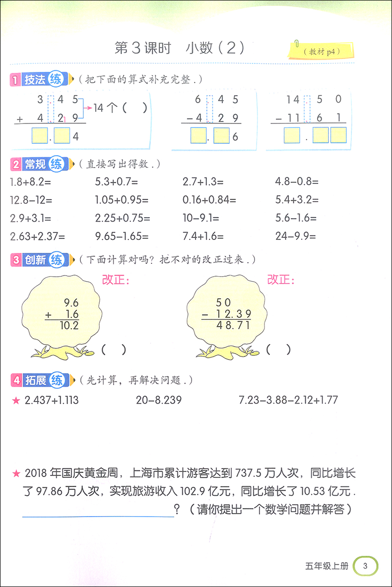 2019金口算阶梯小练习 五年级上册/5年级第一学期 沪教版 含答案 钟书金牌 小学数学口算速算练习册 上海大学出版社