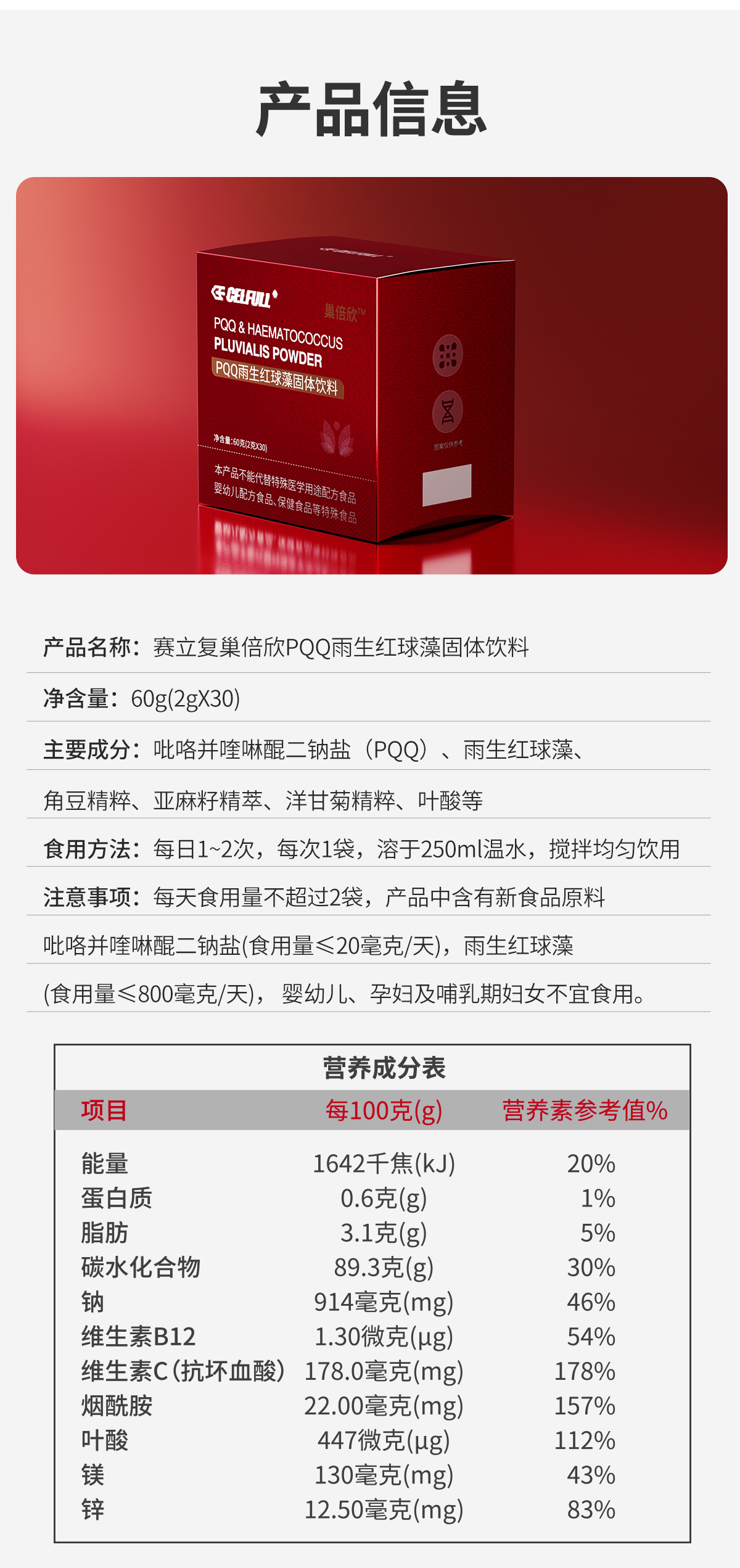 ⁶赛立复【巢倍欣】 红球藻+PQQ+叶酸+亚麻籽+肌醇+洋甘菊 30袋/盒 建议一天1-2包 SS06-QTT-SLF