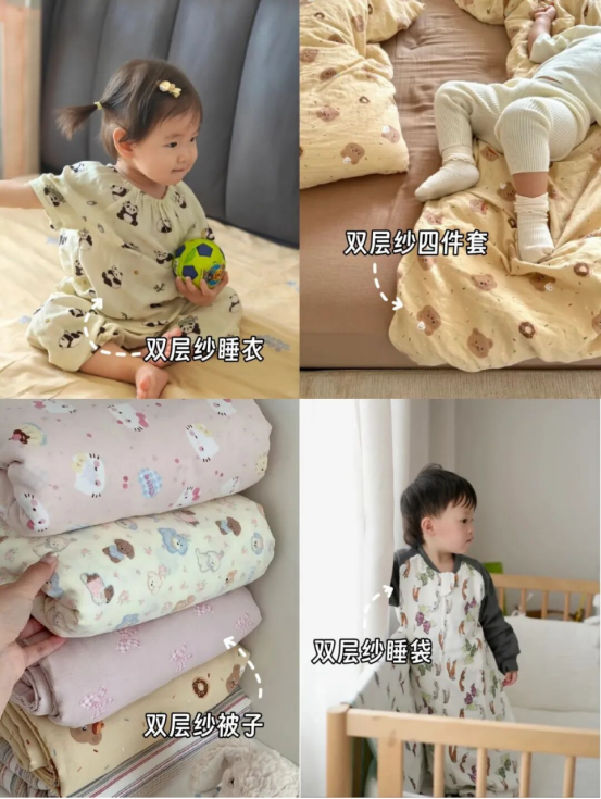 ⭕️做过SPA的纱布,不会消失的柔软越洗越软,收到货两分钟后迅速蓬起 是来自3000+次的气流拍打,多次的高温水洗水洗成本是普通品牌的3倍 才能带来婴儿级的亲肤体验 贴肤如浸入云朵,带我入梦 双层纱又名宝宝纱。 手感软软乎乎的,穿上像轻盈的云朵裹身,而且越洗还会愈发柔软。 干燥敏感的秋季,穿上它,就像让自己做回一个小宝宝,每一寸肌肤都被精心温柔呵护起来,太舒服啦~