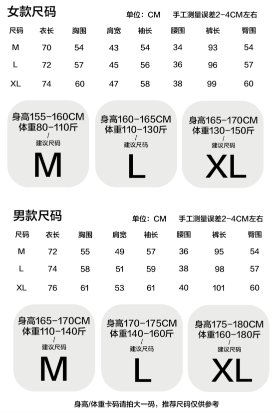⭕️5色可选,情侣可搭 女生90斤穿到160斤 男生120斤穿到190斤