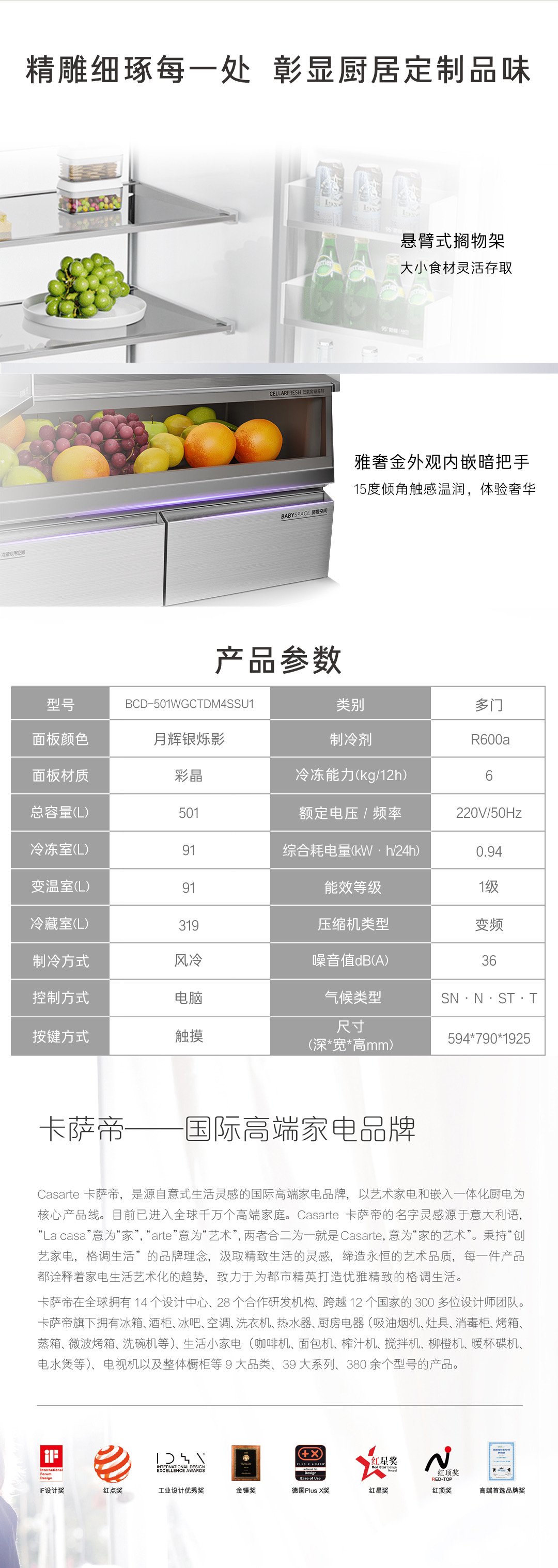 卡萨帝(Casarte)冰箱 BCD-501WGCTDM4SSU1