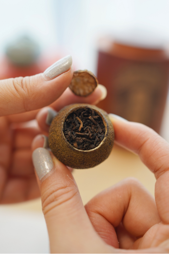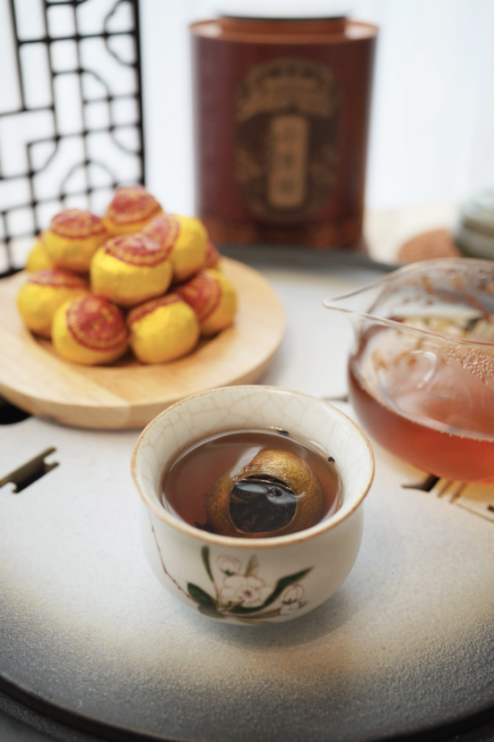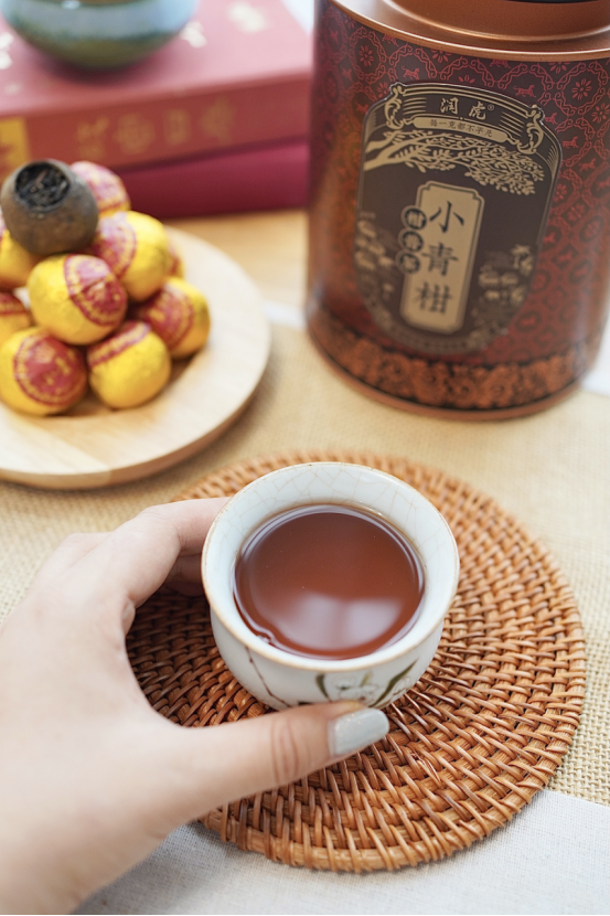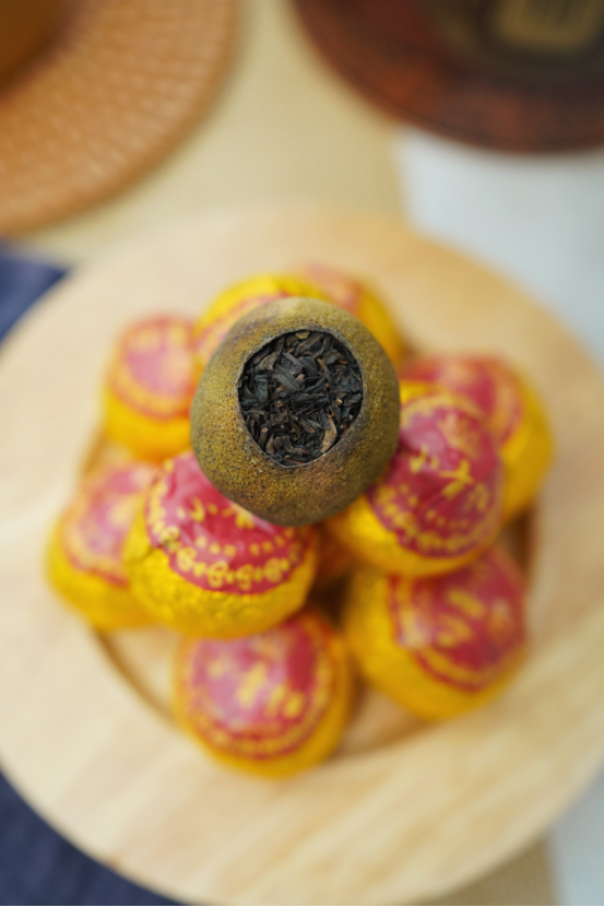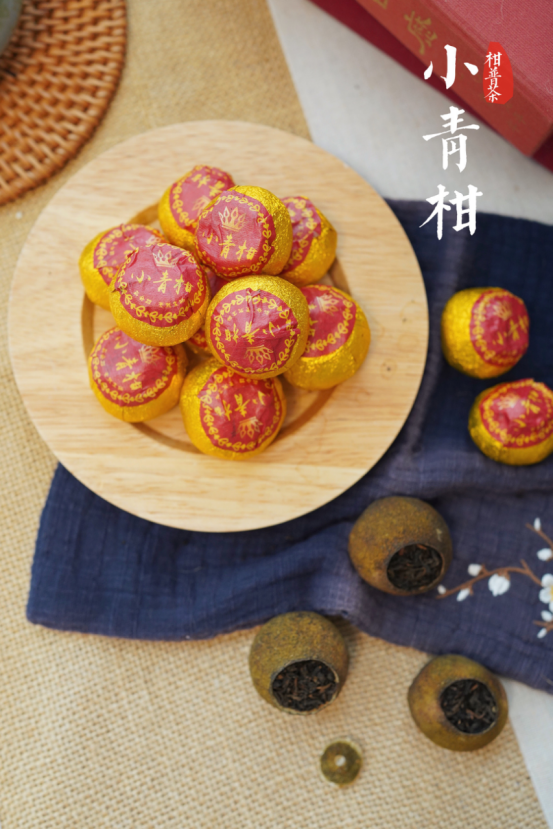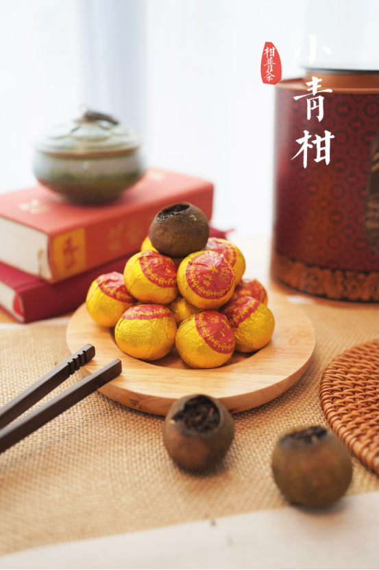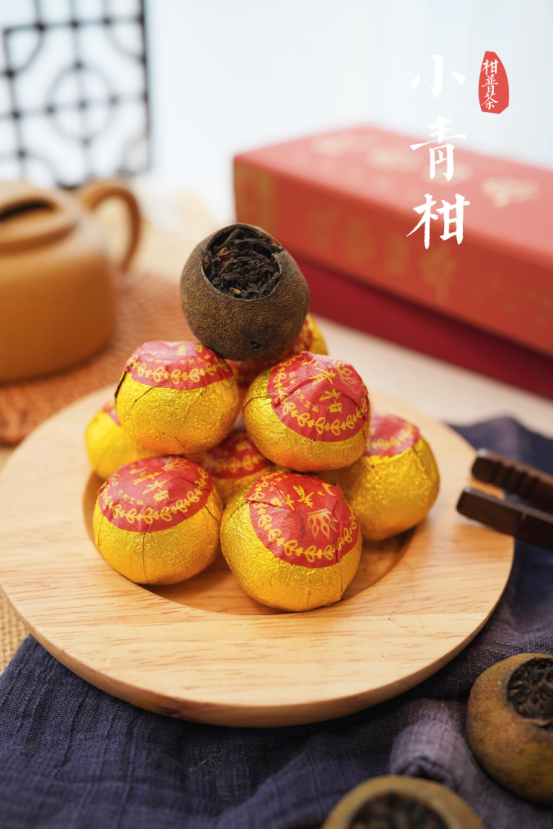 3、融合了江西柑清醇的果香和云南普洱茶醇厚甘香之味让柑皮与茶叶相互吸收精华,形成了风味独特、口感醇厚的小青柑。