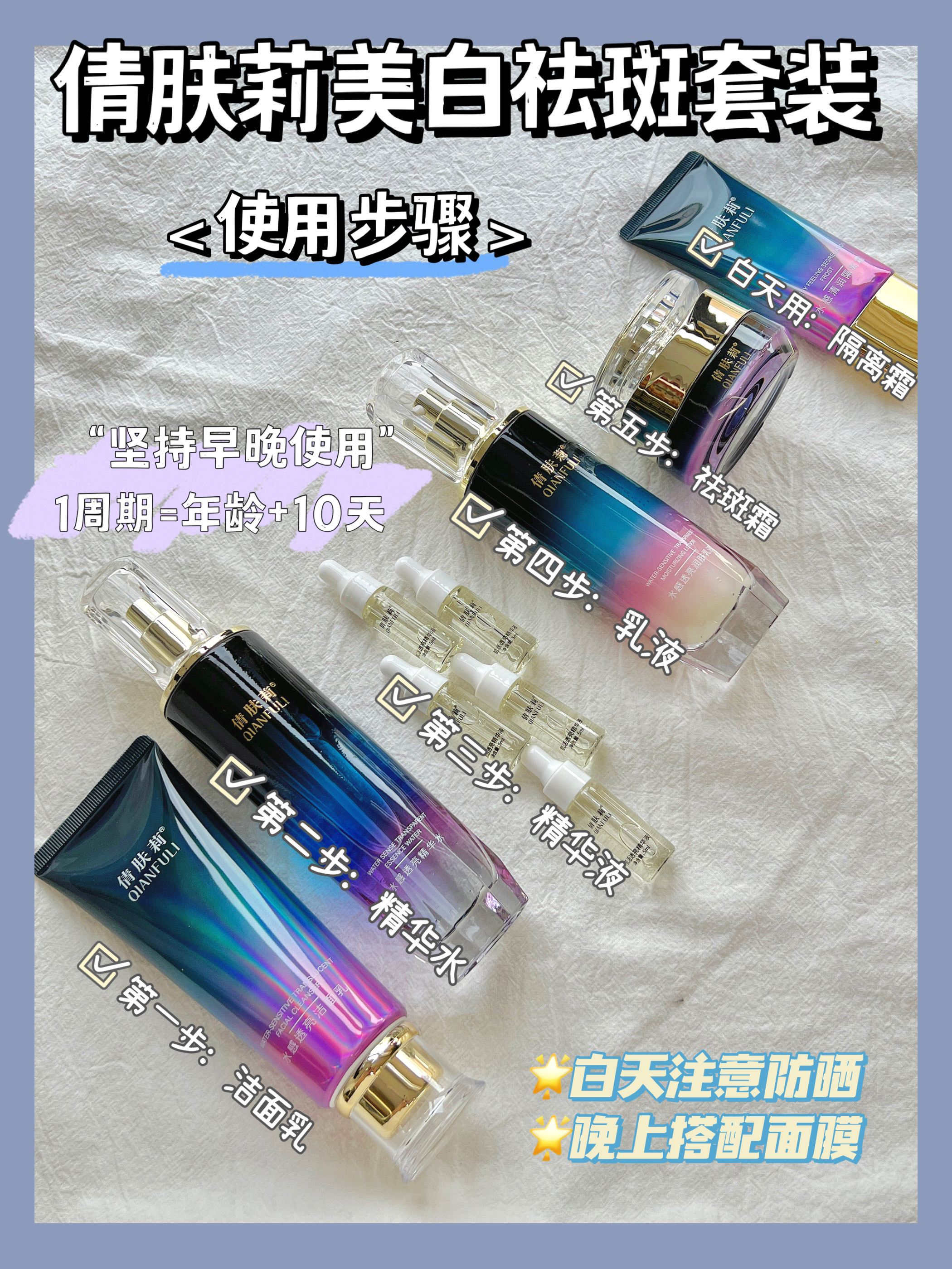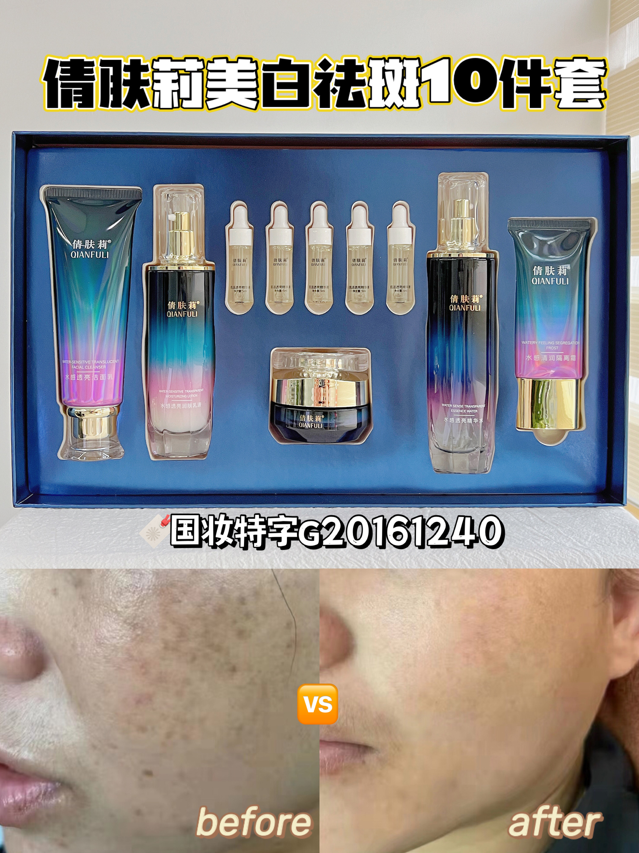 【倩肤莉】水感清润美白祛斑套装 10件套
