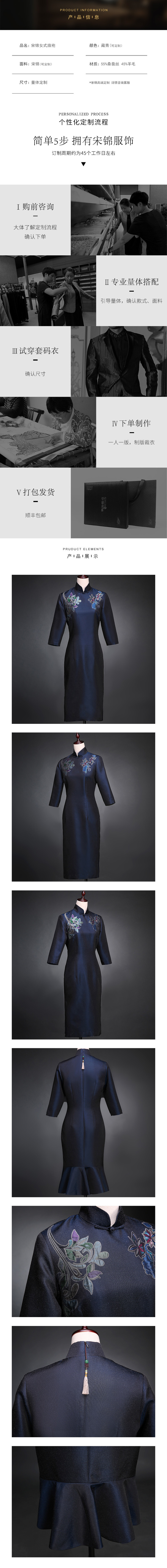 SAINTJOY/上久楷 宋锦女式旗袍 藏青 SWS5350(勿拍 仅订制)