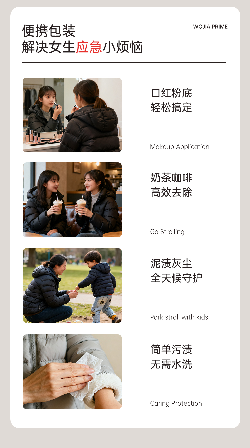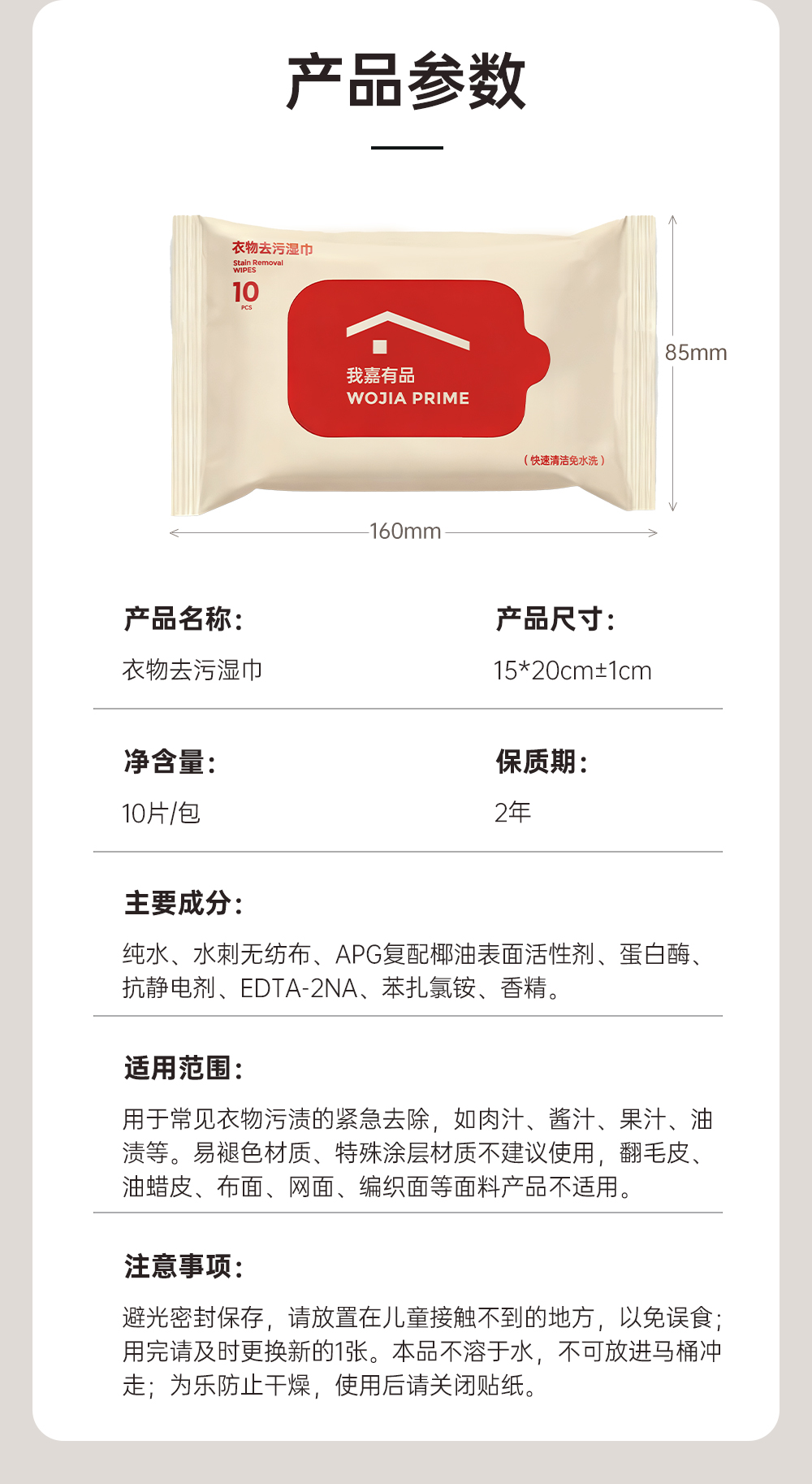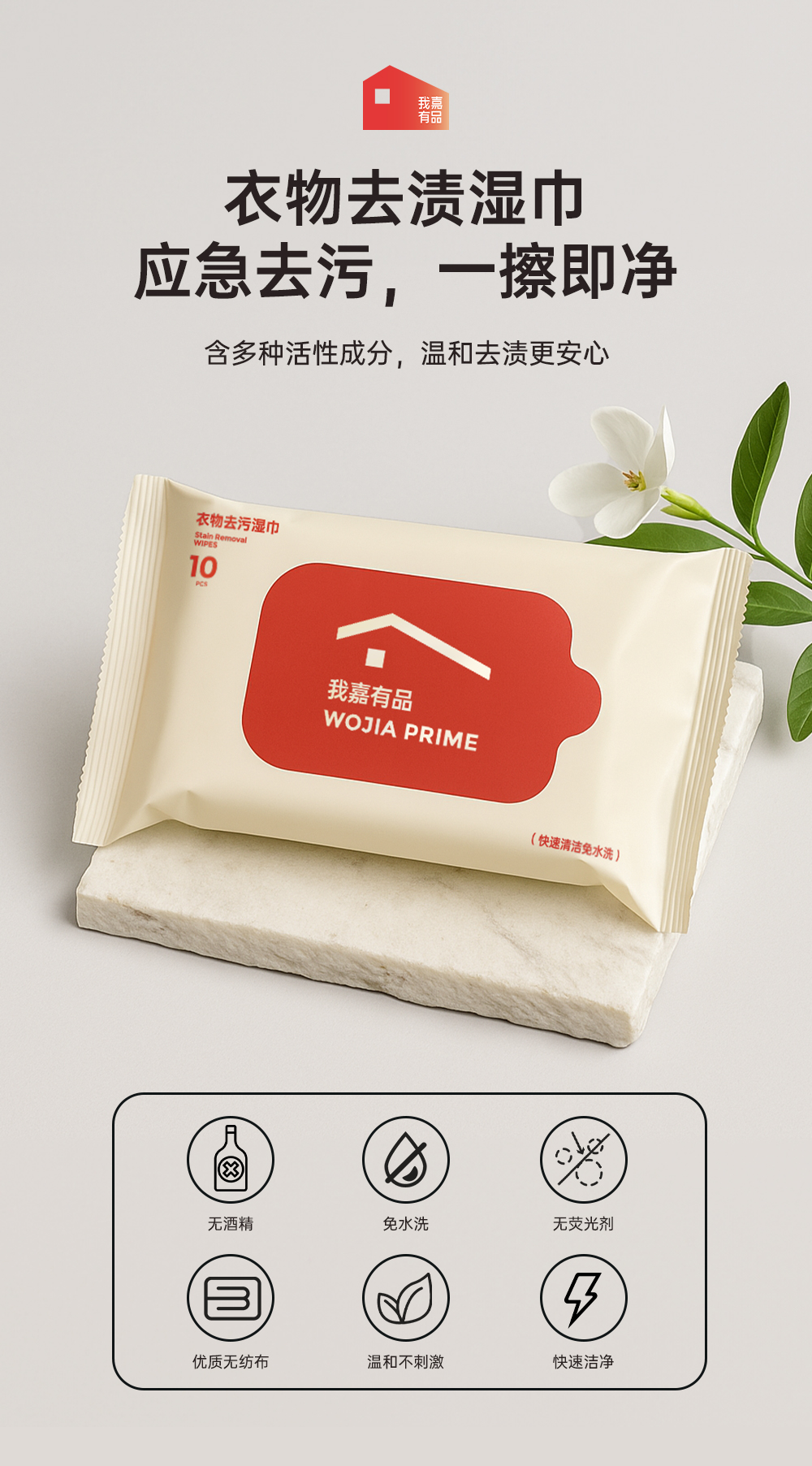 我嘉有品衣物去渍湿巾自带清洁液应急去污清新不刺激便携式小包