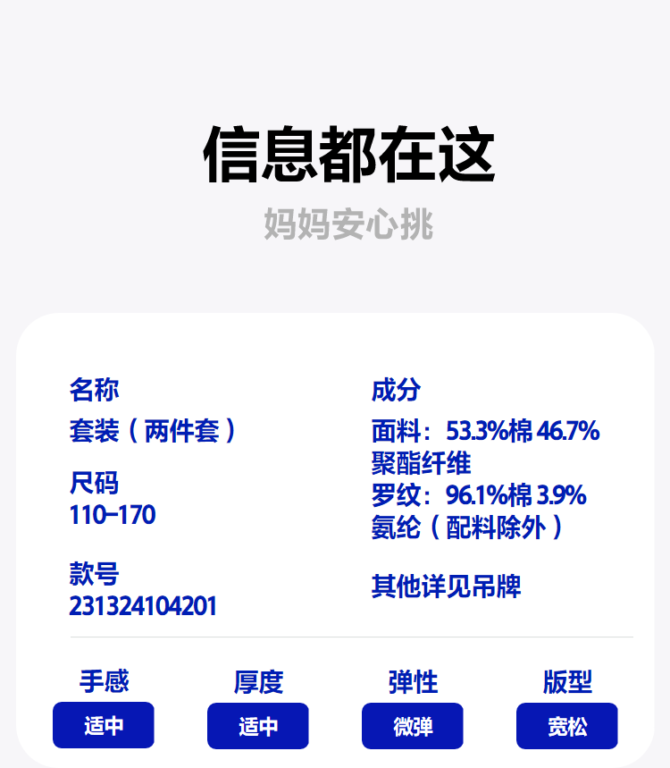 【舒弹 迷你小魔纤®】迷你巴拉长袖套装男女童亲子两件套宽松