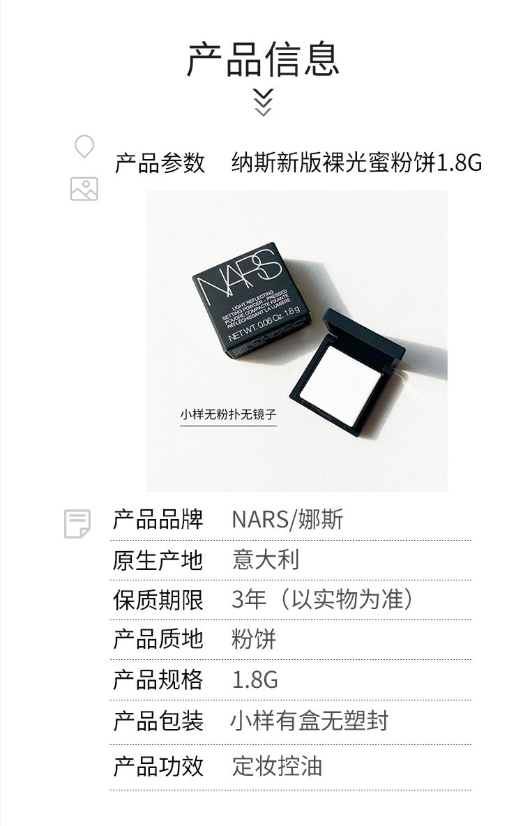 【预售 急单慎拍】NARS纳斯新款流光美肌清透蜜粉饼持久控油定妆小样大白饼不脱妆