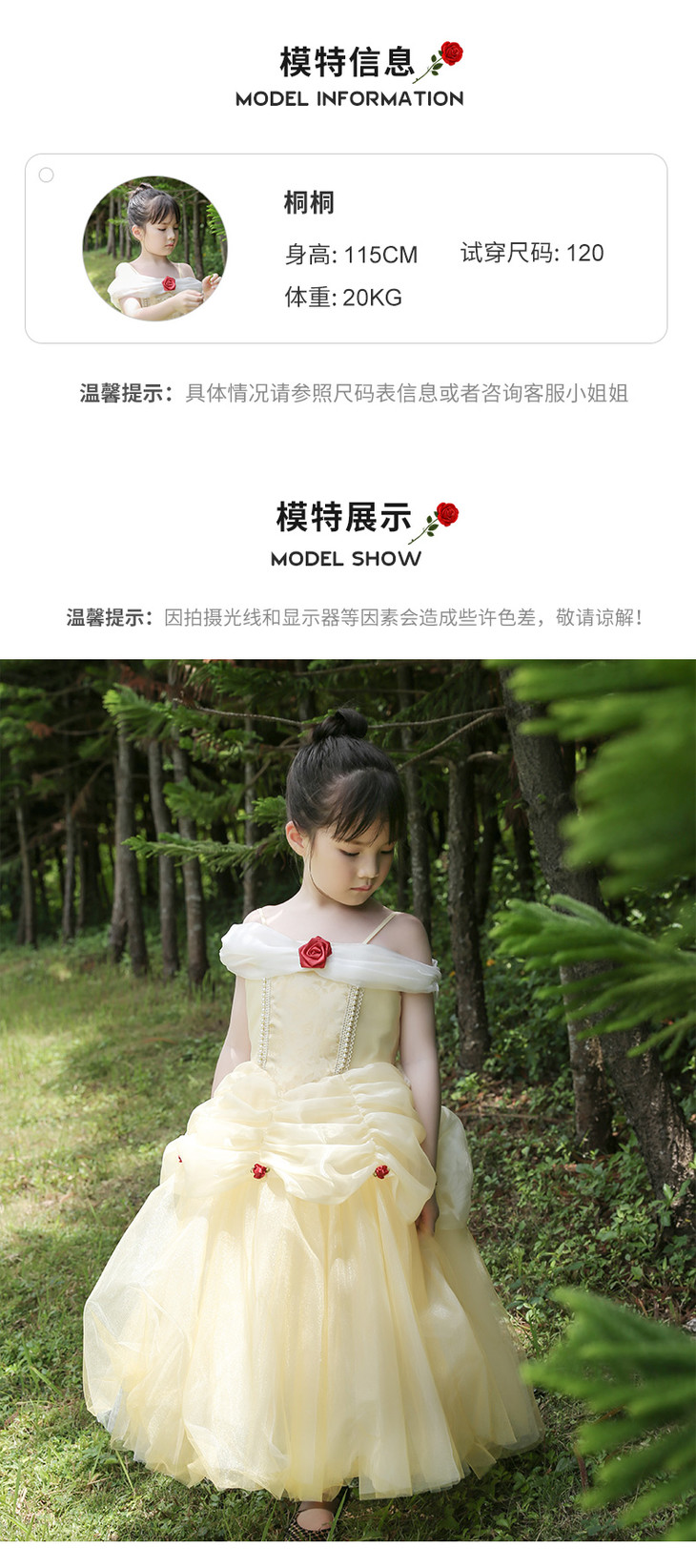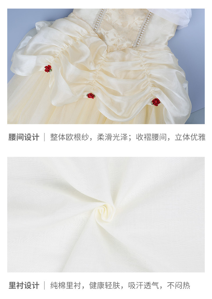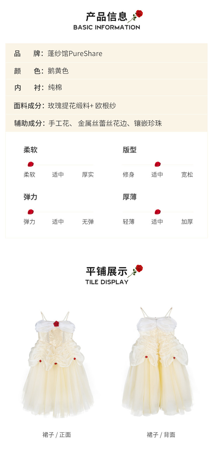 pureshare 女童连衣裙夏款贝尔公主裙礼服蓬蓬纱裙-金色玫瑰公主裙