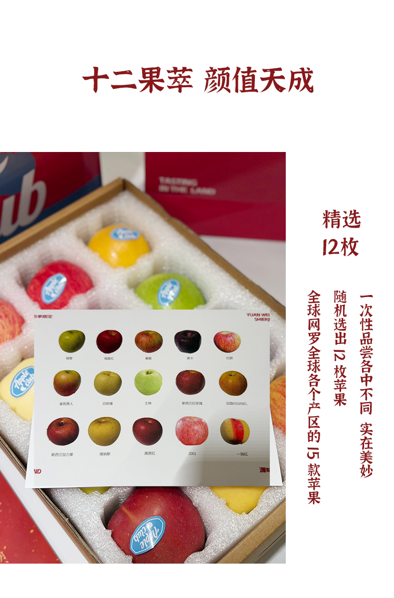 随机12枚苹果礼盒装(15款里随机发12枚,净重4.8-5斤)