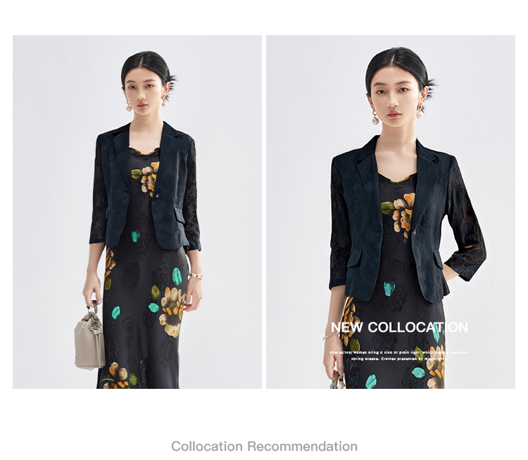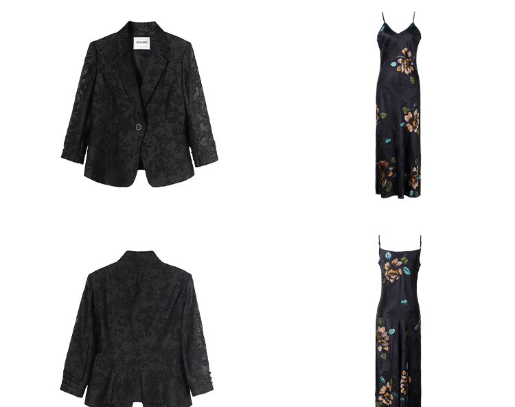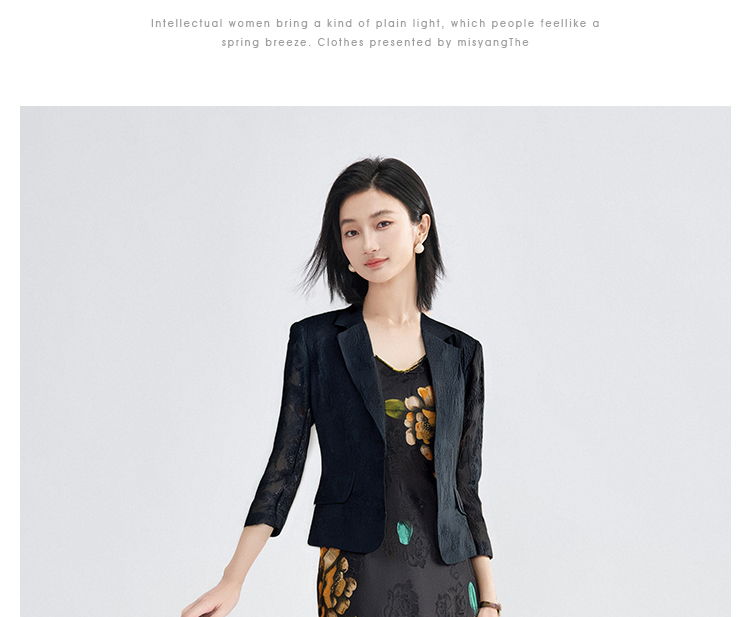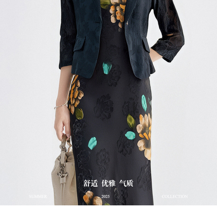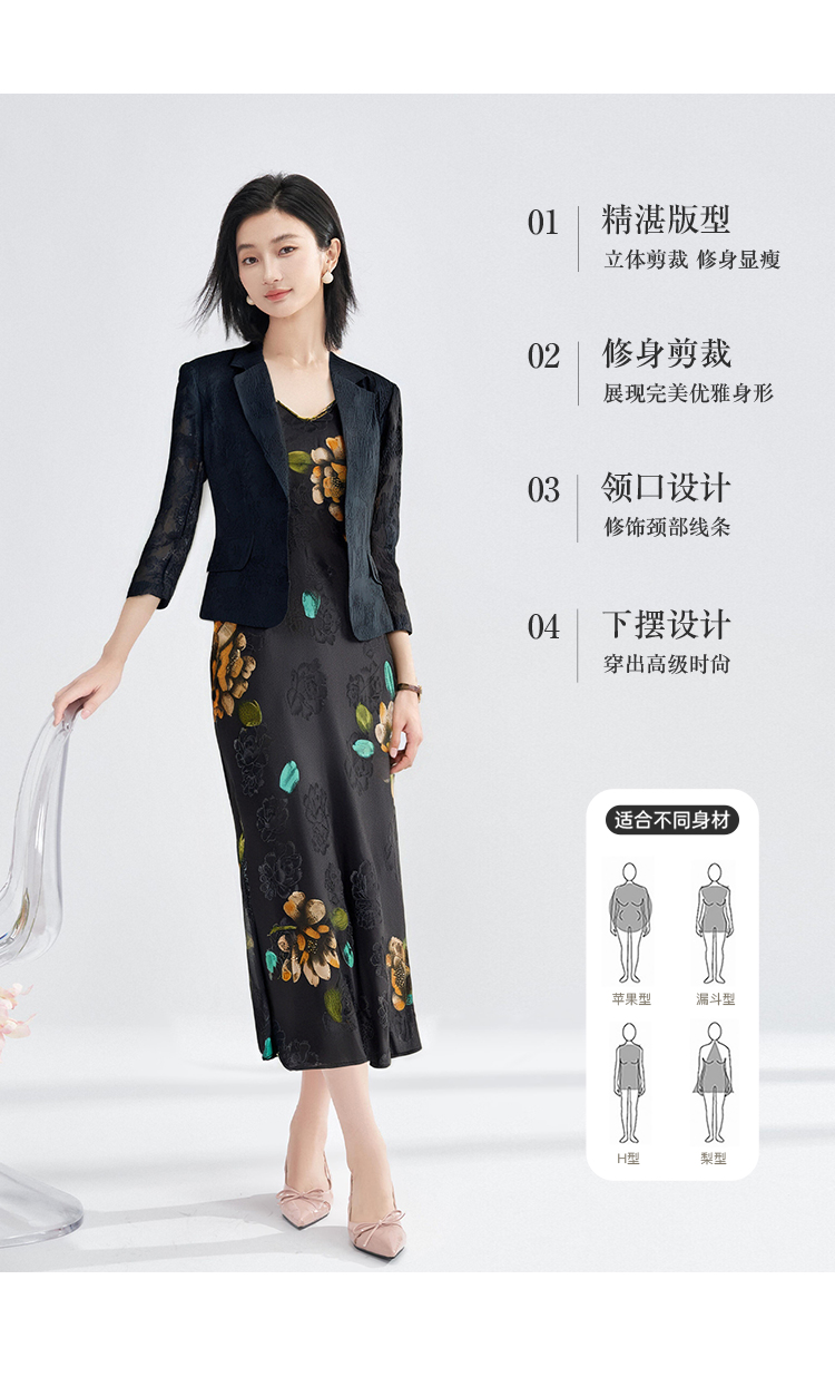 剩S/M/XL/XXL 米思阳 提花外套印花吊带裙套装 秋季肌理感外套配级感光泽吊带连衣裙4665