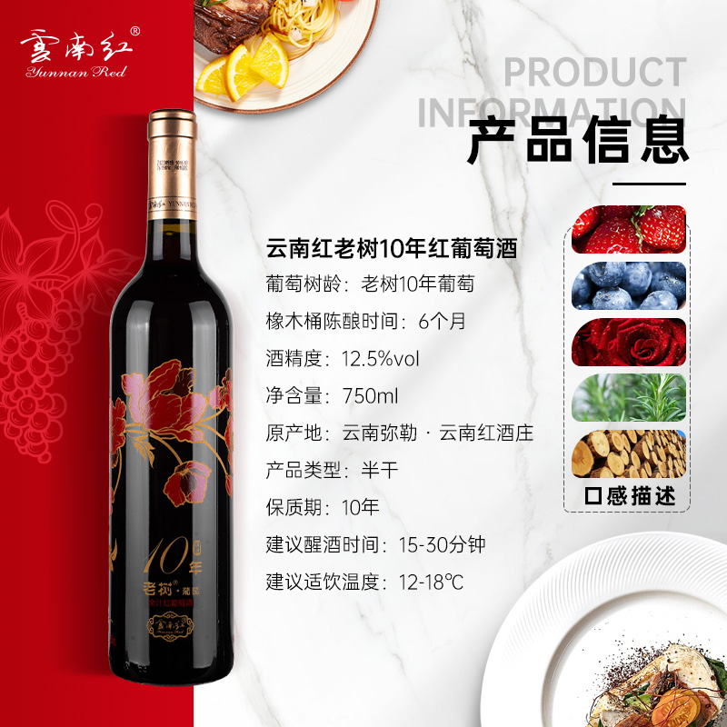 云南红精选老树10年半干红12.5度750ml弥勒酒庄