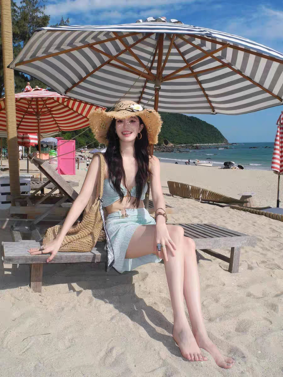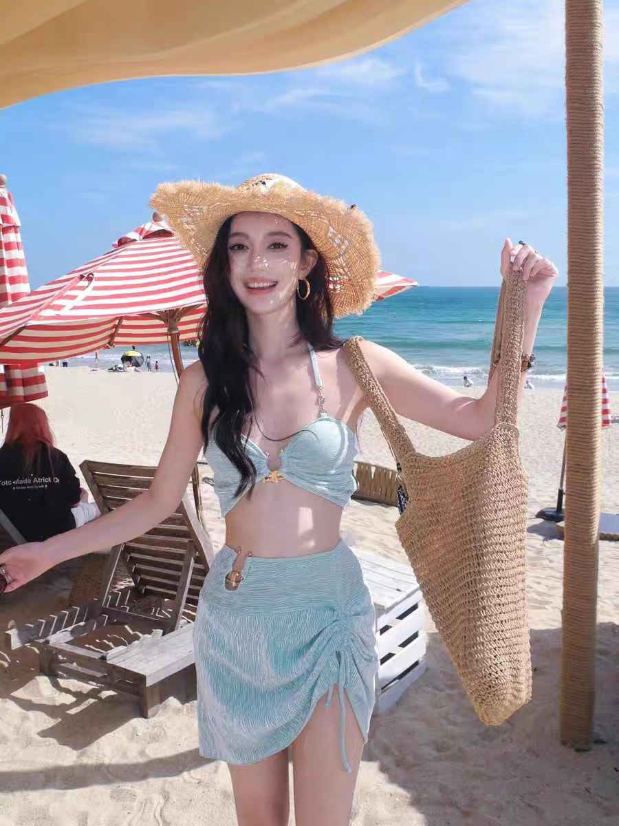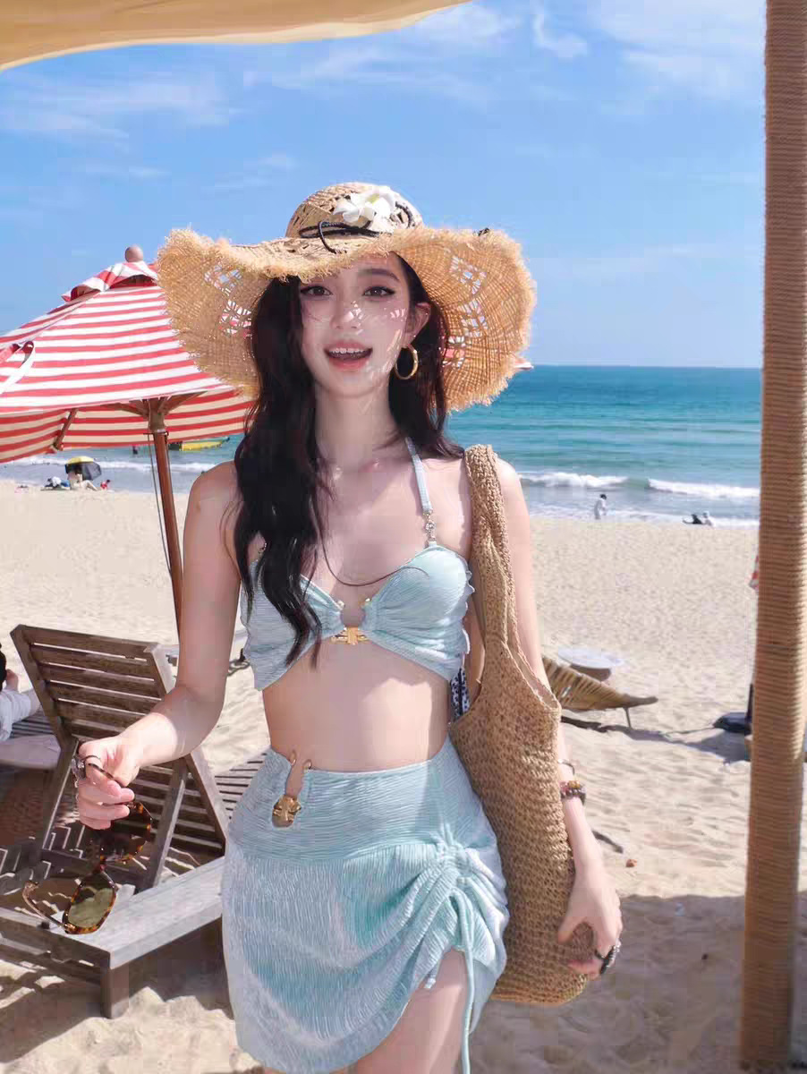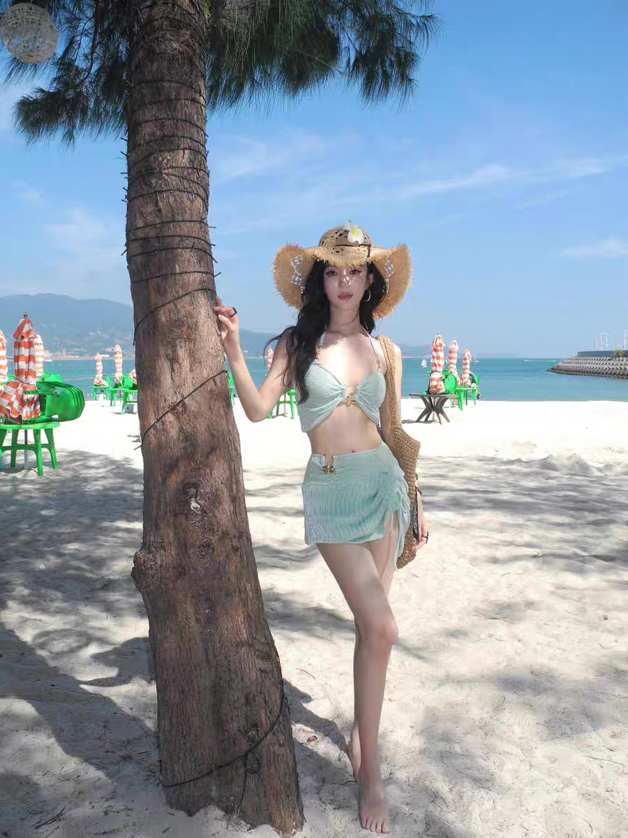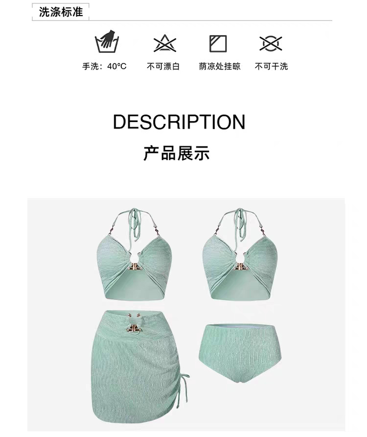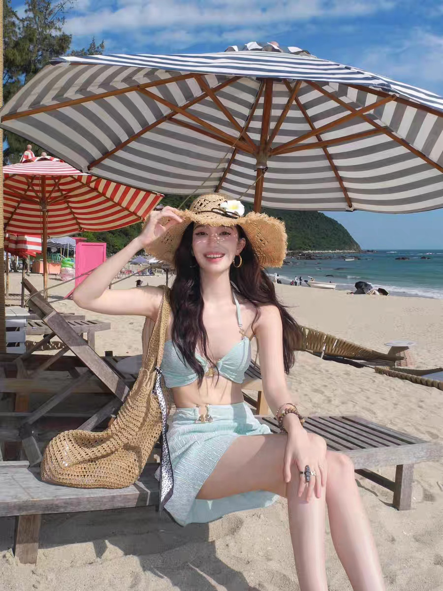 【YW】无忧购薄荷绿泳衣分体比基尼度假风海边三件套2532(截单后3-5天发货)