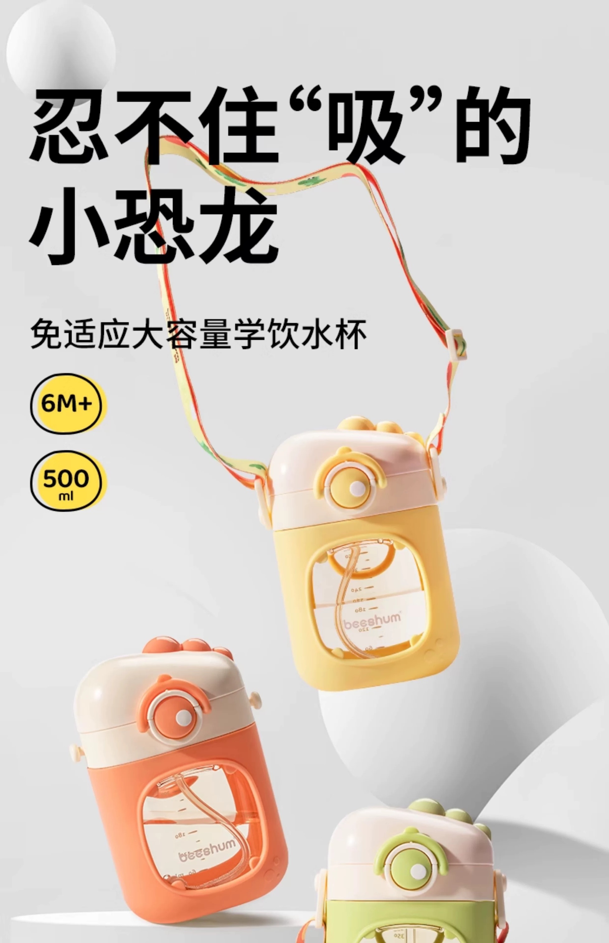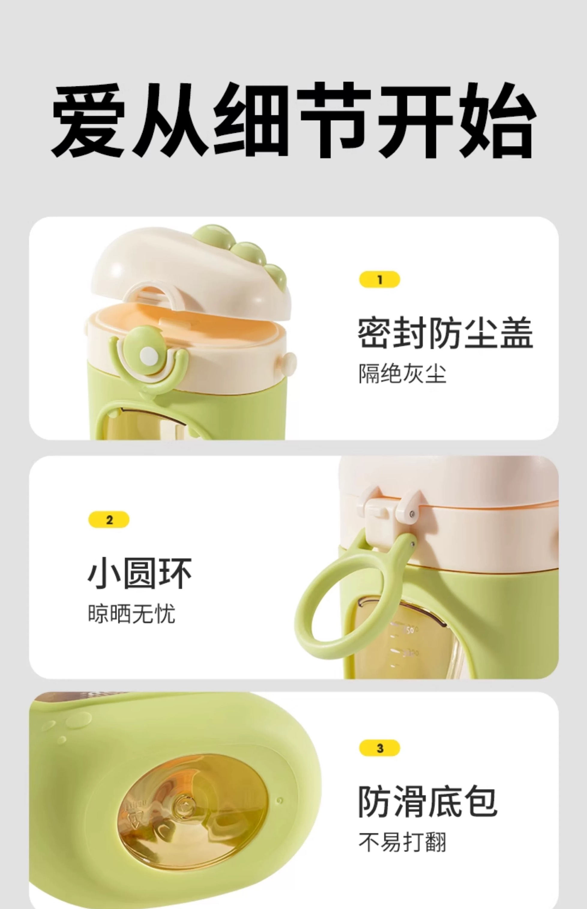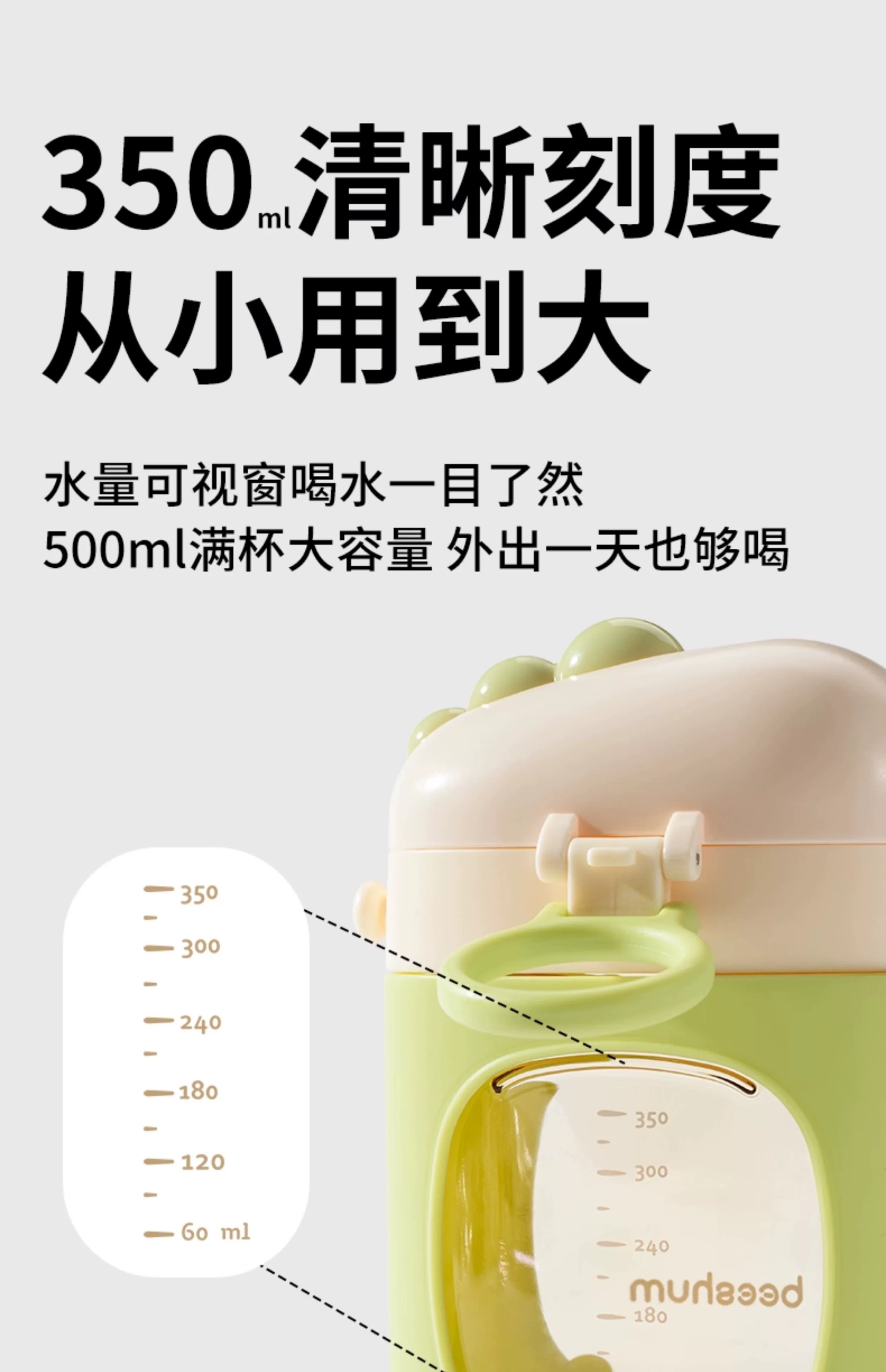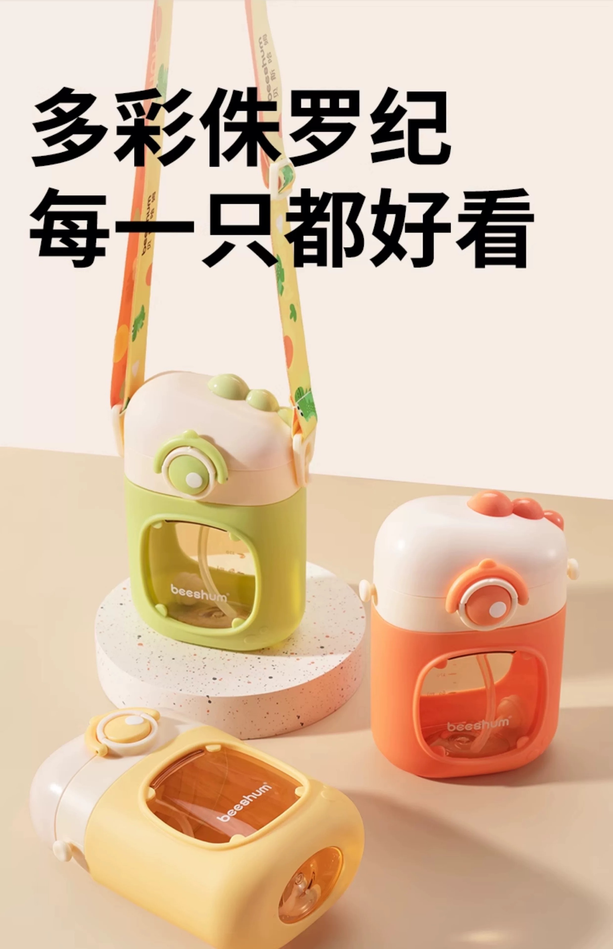 beeshum探险龙儿童水杯幼儿园外出防摔吸管学饮杯宝宝直饮喝水杯